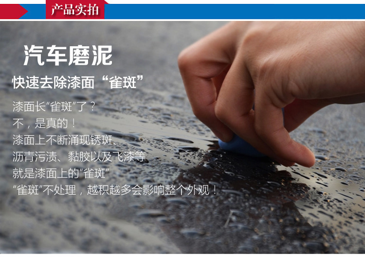 使用:配合汽车弱碱洗车液或自来水皆可磨泥.