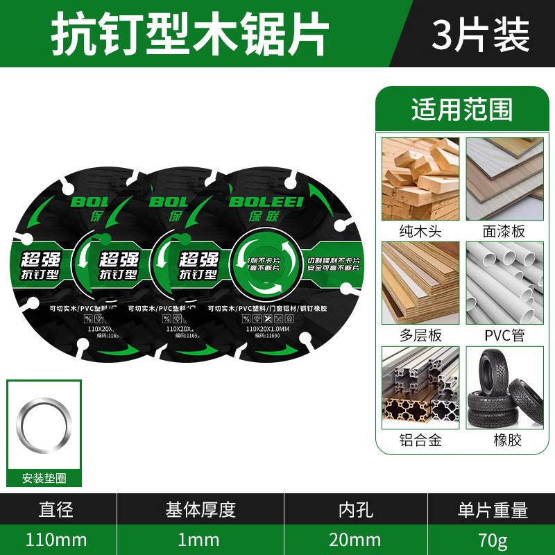 • 강화 목재 톱날 [3 장] + 설치 와셔 보내기