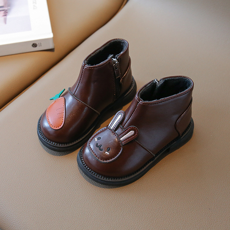 아기의 귀여운 토끼 가죽 부츠 2023 가을과 겨울 한국 스타일 소녀의 당근 사이드 지퍼 부츠 어린이 트렌디스토어 가기