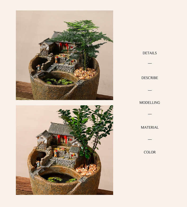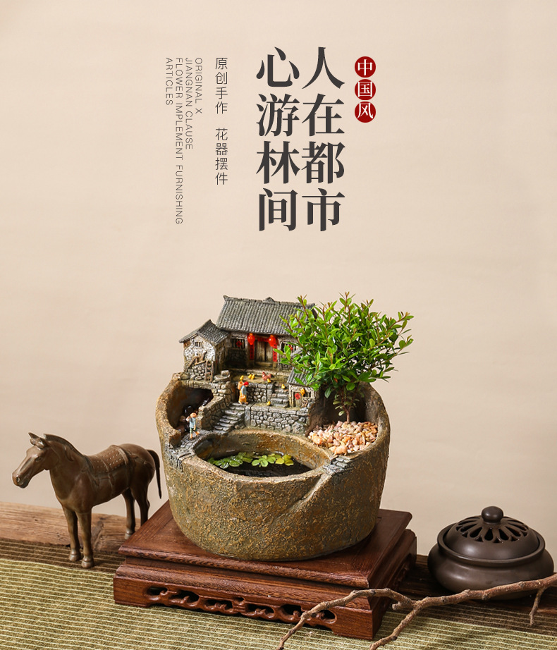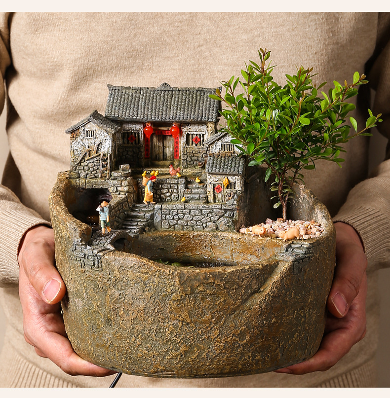 창조적 인 흐르는 물 장식품 순환 물 베란다 영원히 움직이는 거실 조경 어항 젠 조경 데스크탑 장식 빈티지