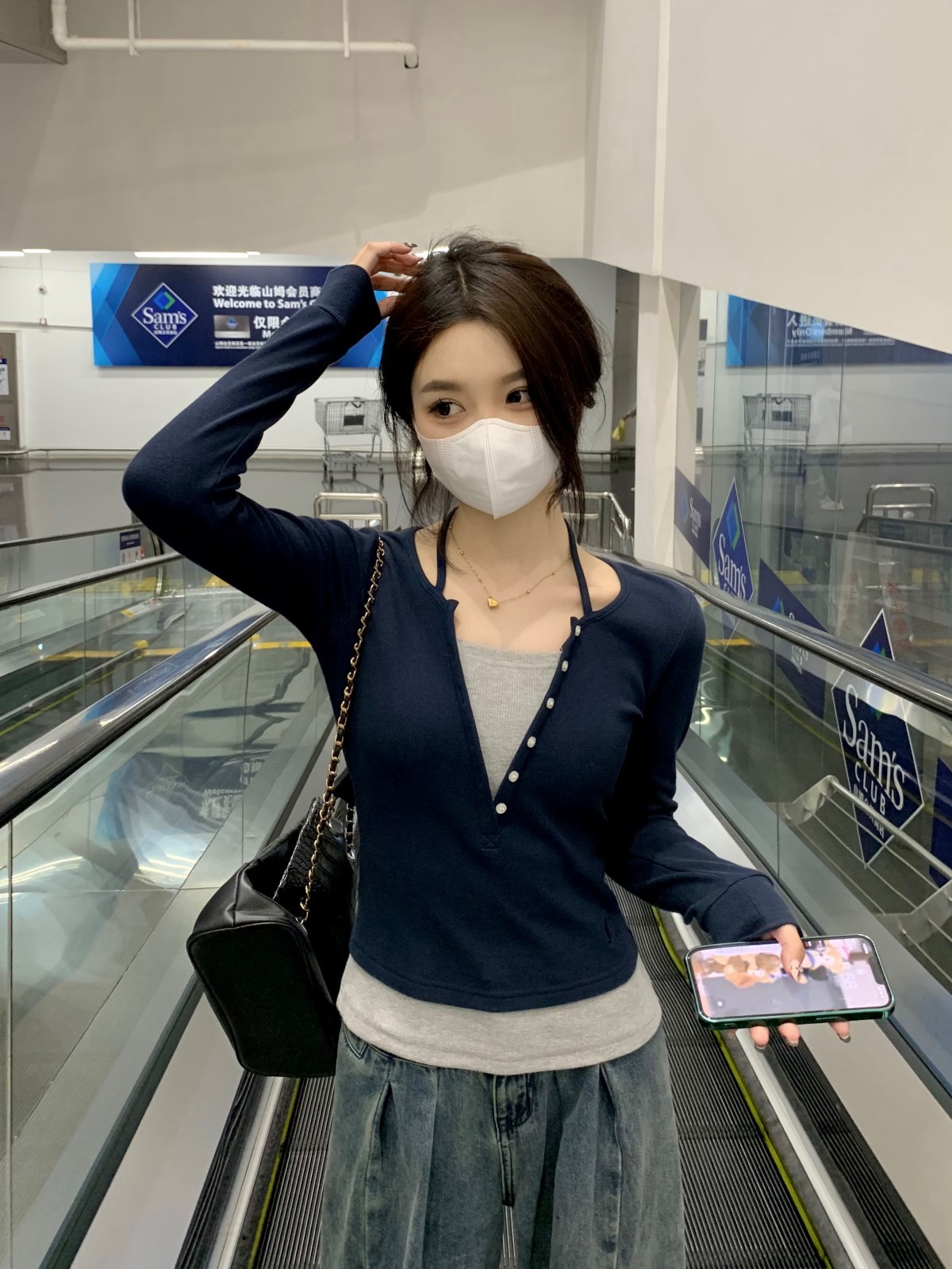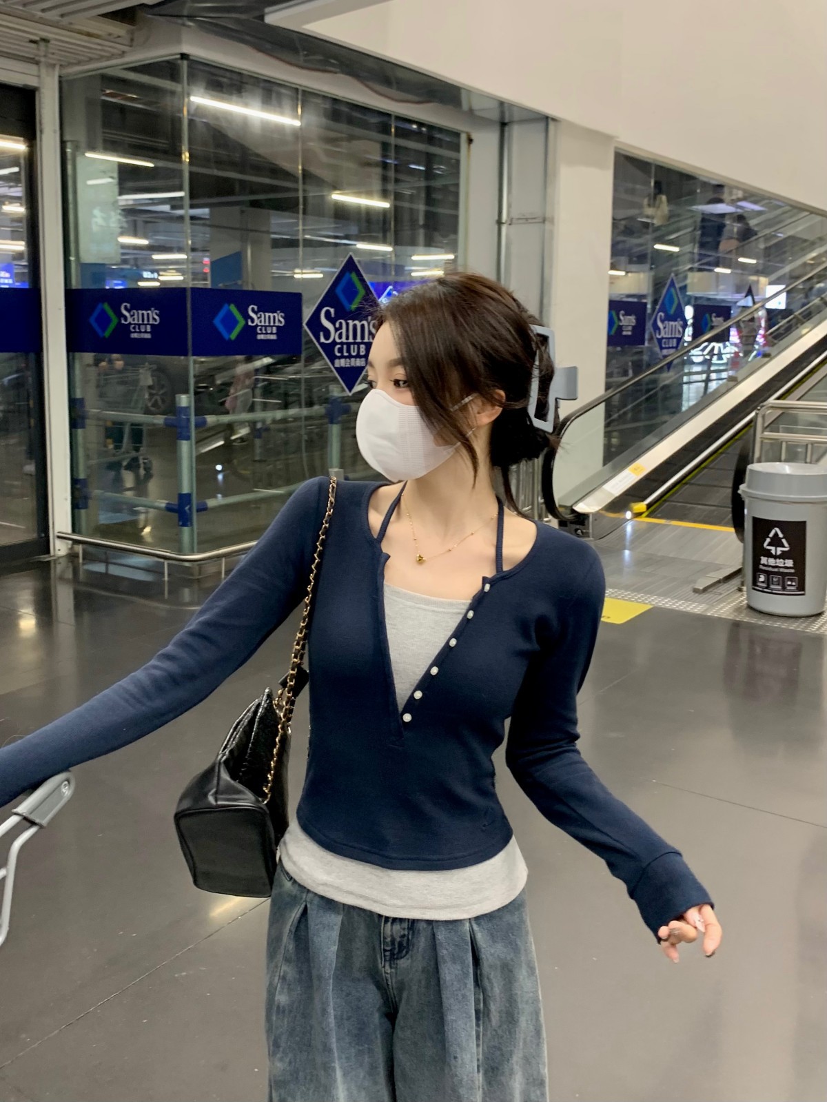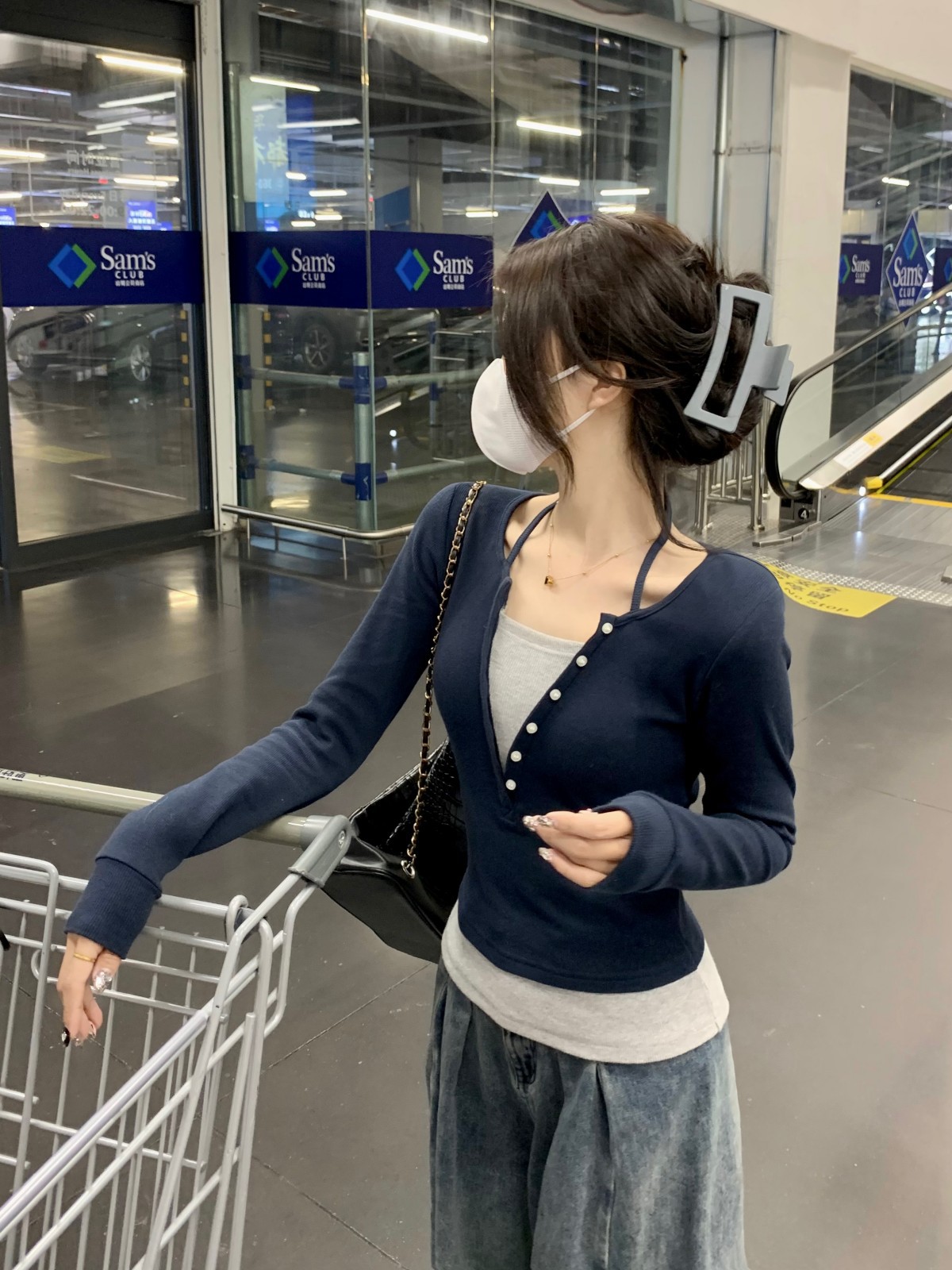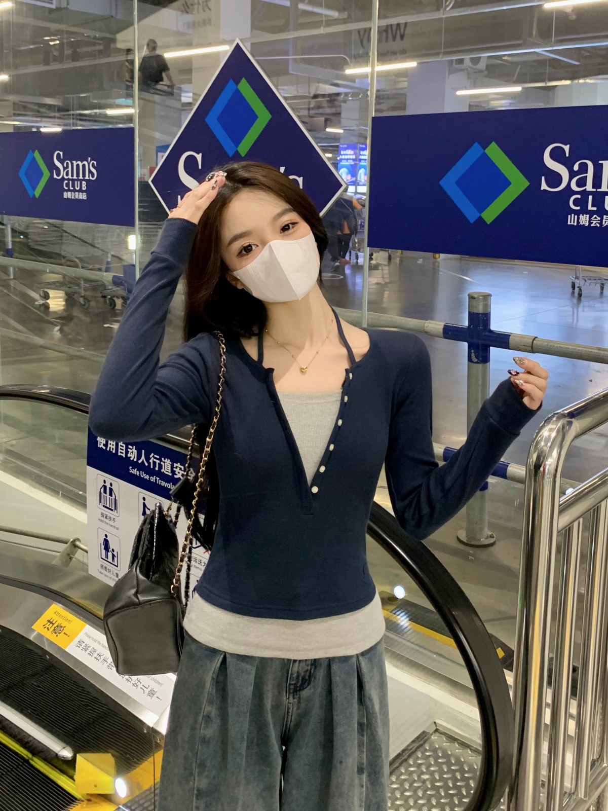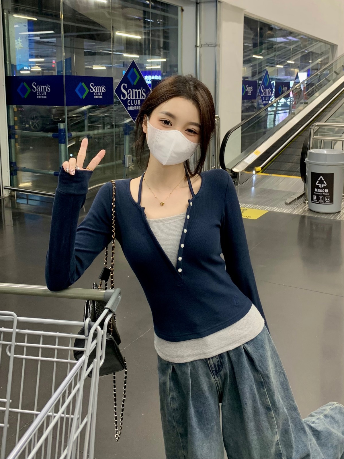 가을 스티치의 세대 새로운 짧은 슬림 슬림 가짜 2 면 V 넥 긴 소매 티셔츠 여성베이스 셔츠스토어 가기