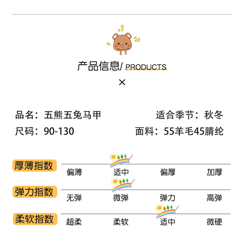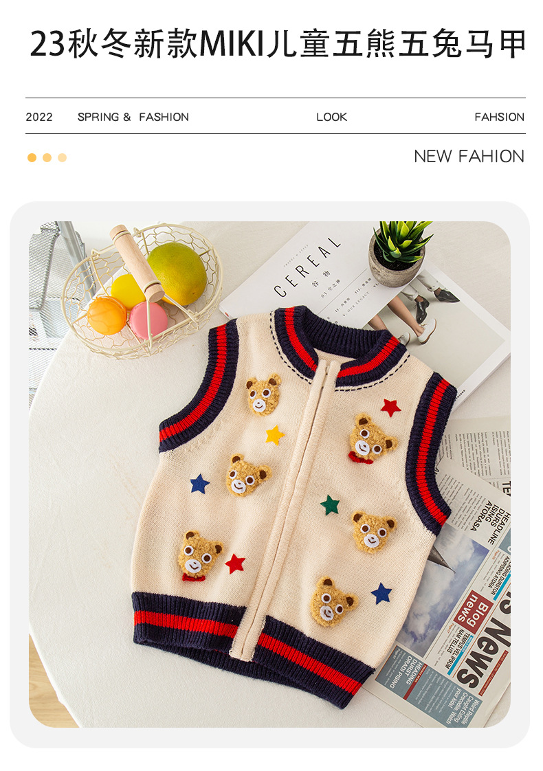 고급 미키24 클래식 가을 겨울 어린이용 오곰오토끼 양모 조끼 아동복 라이브 방송 도매 소형 어린이용