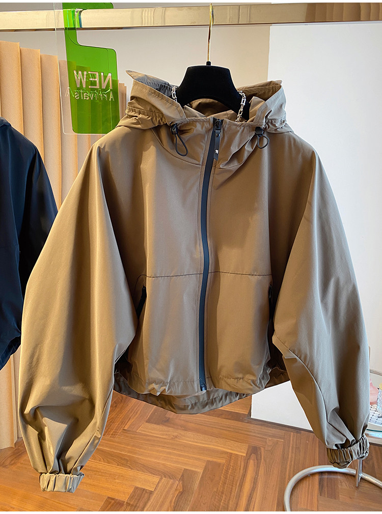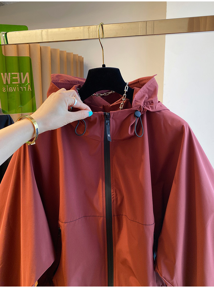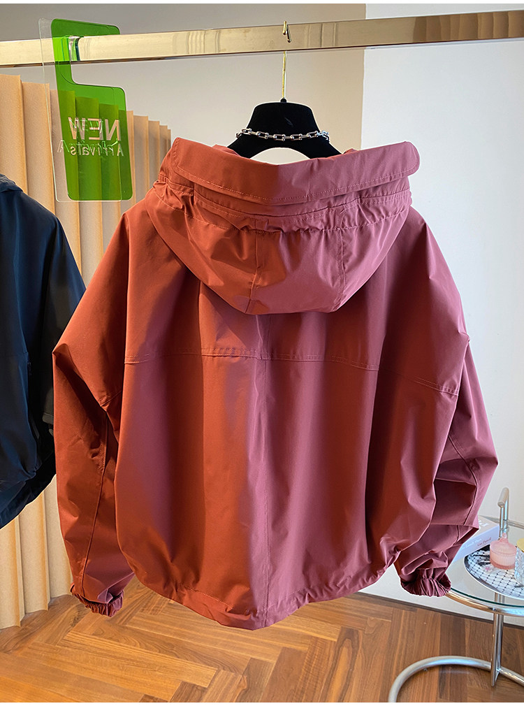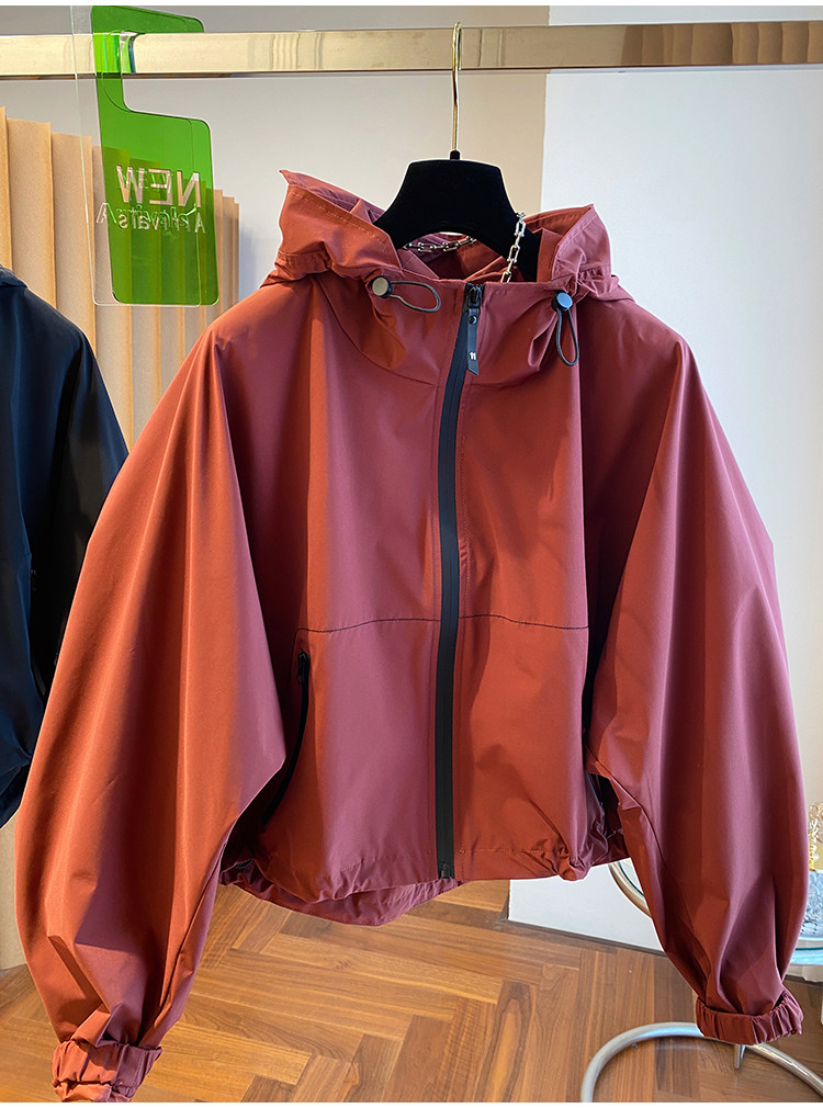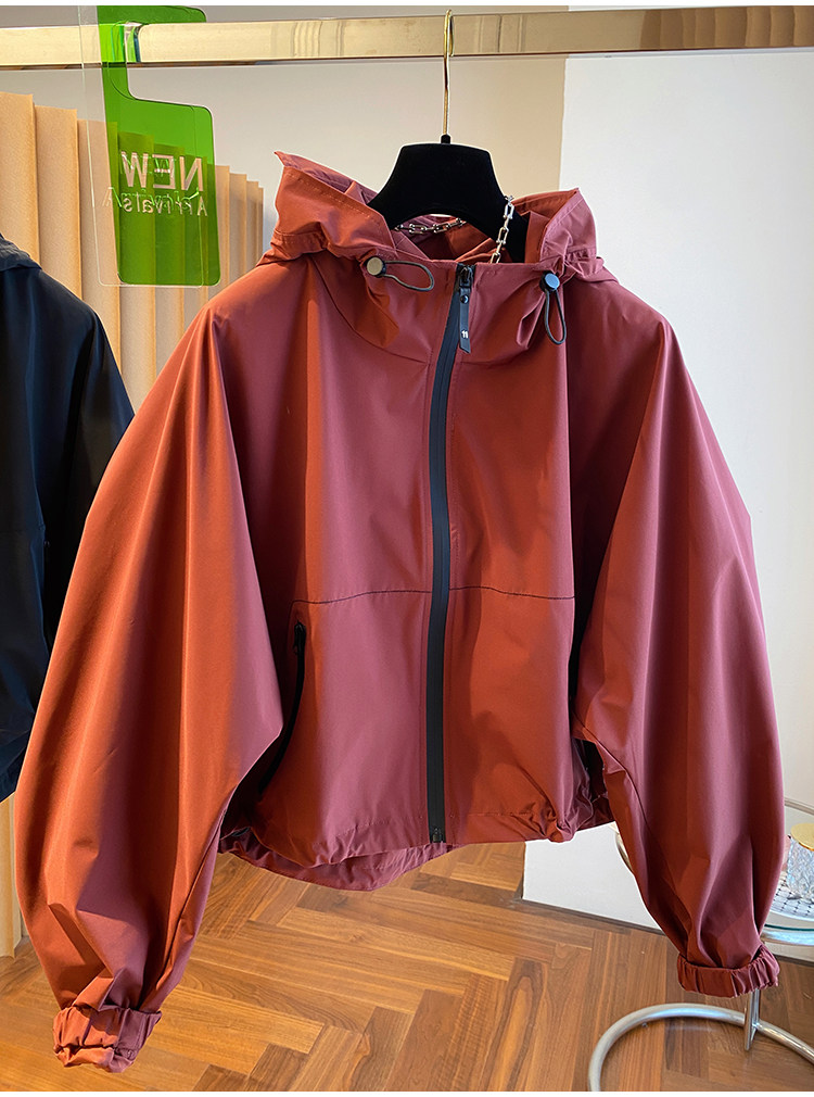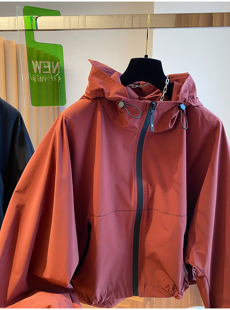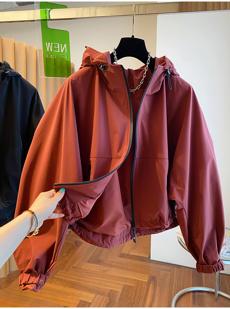 유럽과 서양 스타일의 디자인 틈새 느슨한 캐주얼 모든 매치 레드 후드 카고 코트 여성용 봄과 가을 짧은 재킷