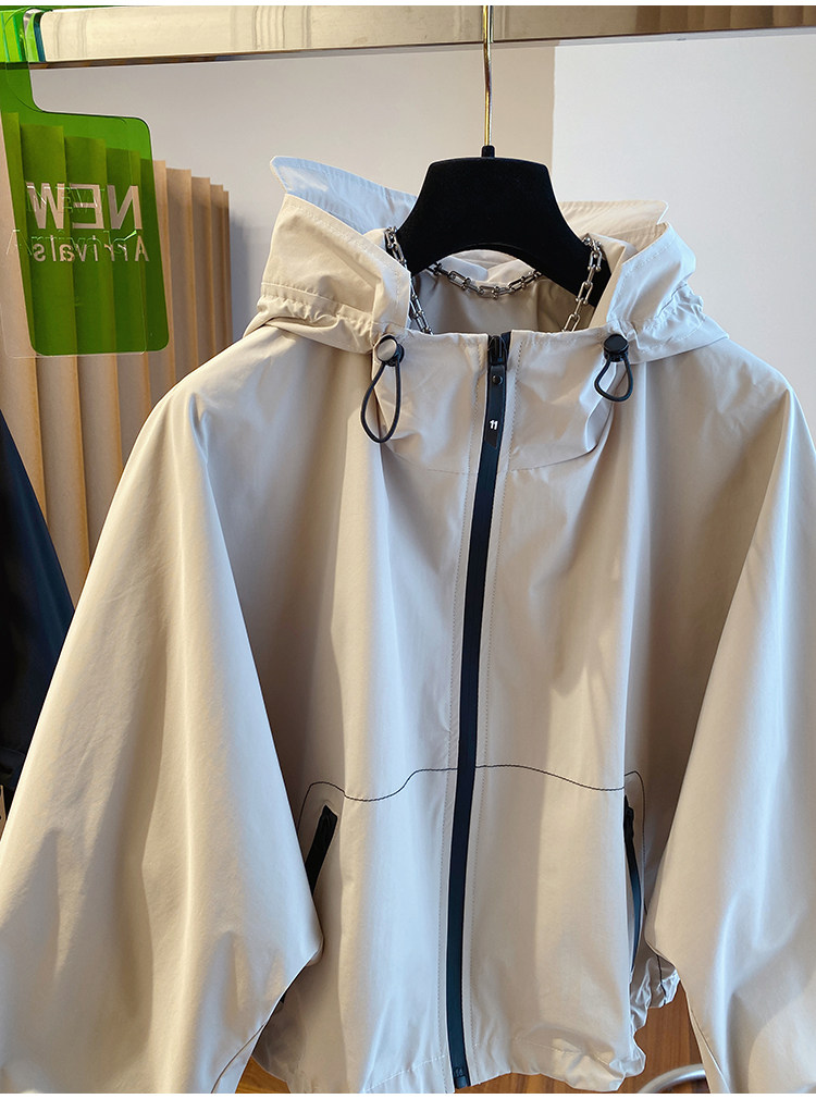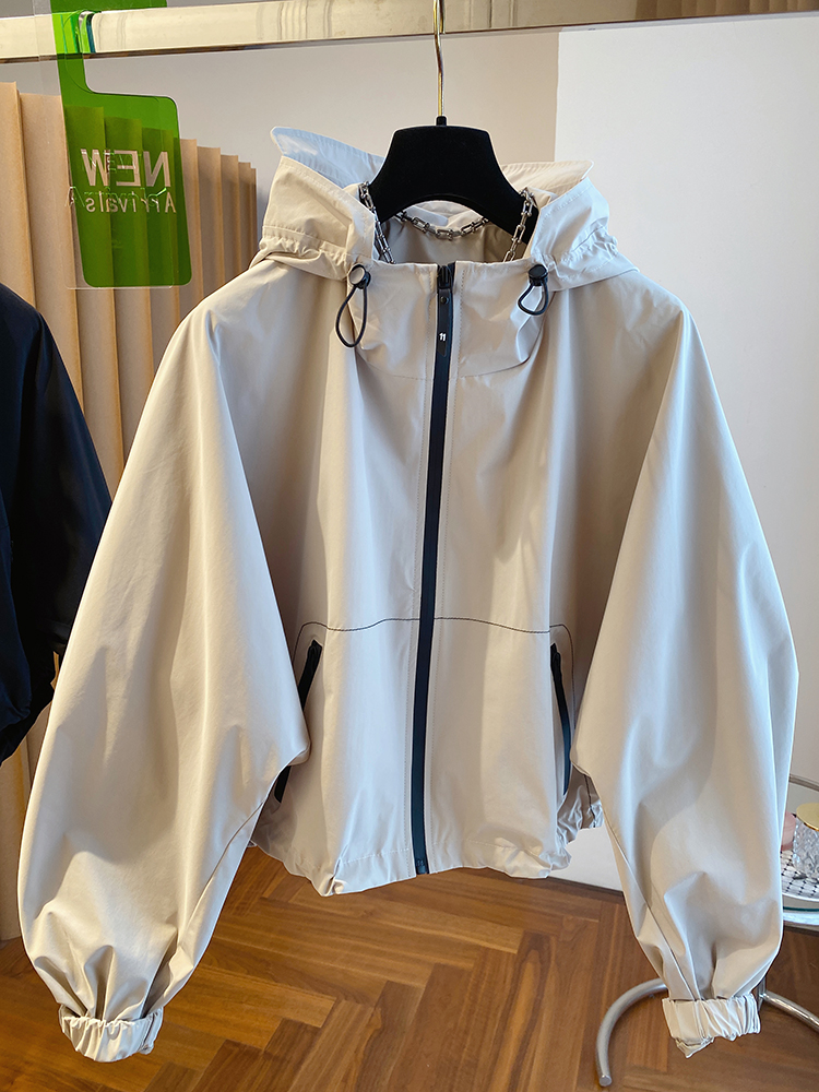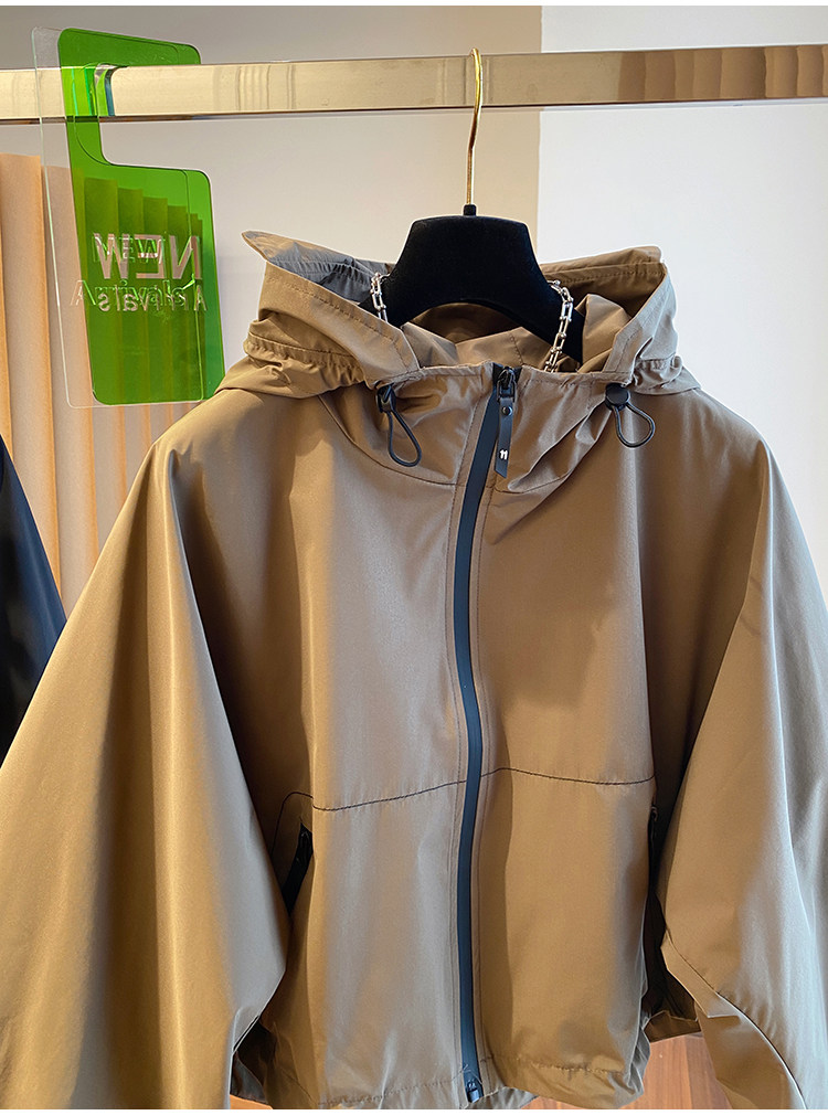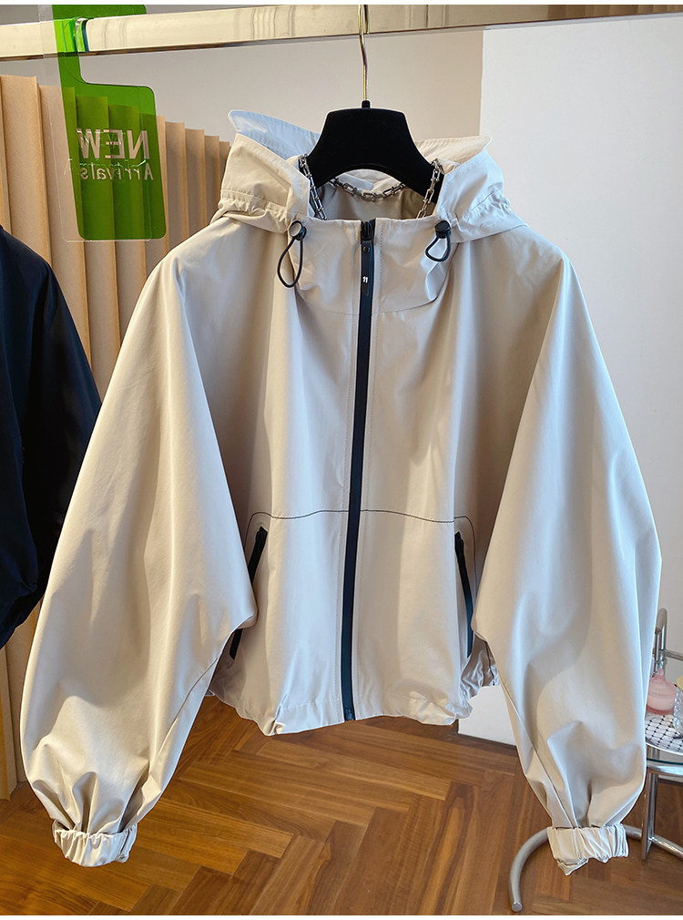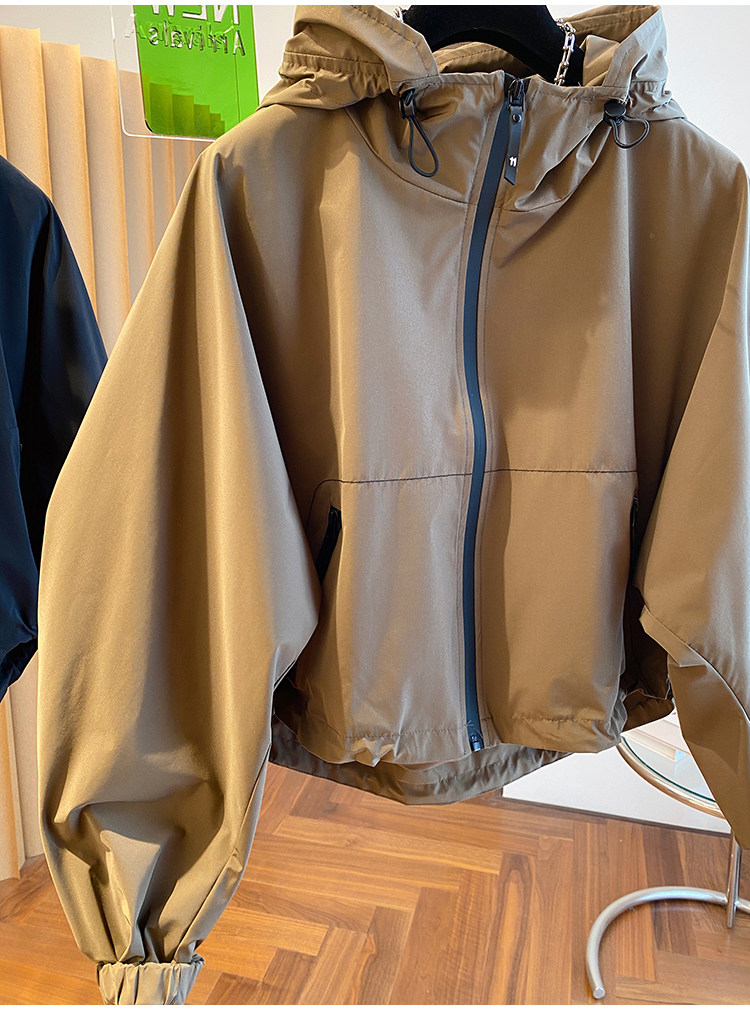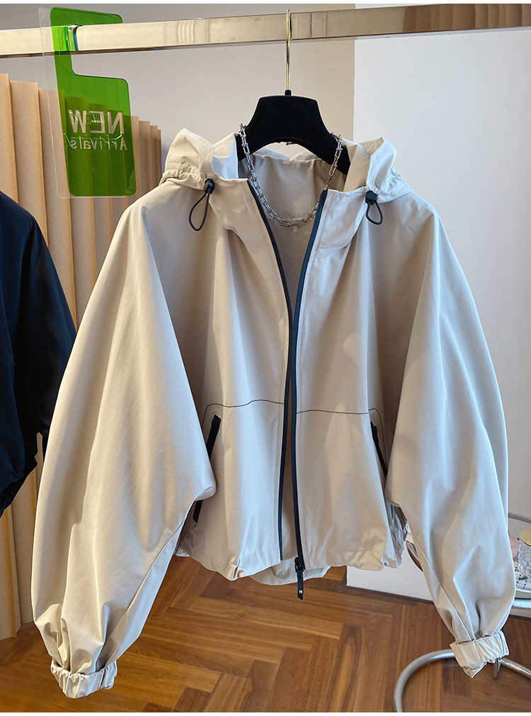 유럽과 서양 스타일의 디자인 틈새 느슨한 캐주얼 모든 매치 레드 후드 카고 코트 여성용 봄과 가을 짧은 재킷