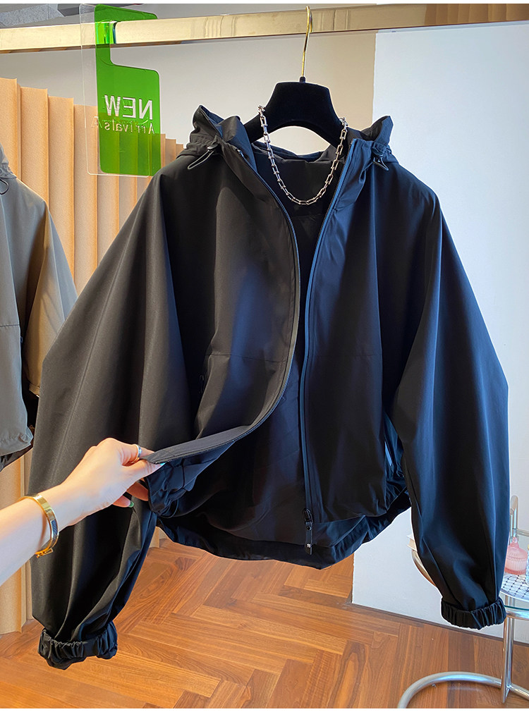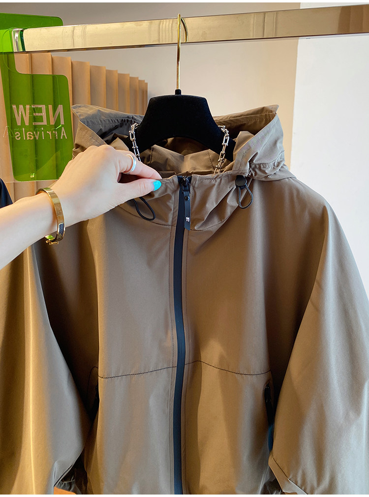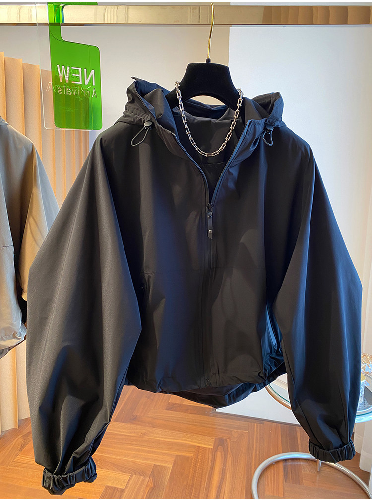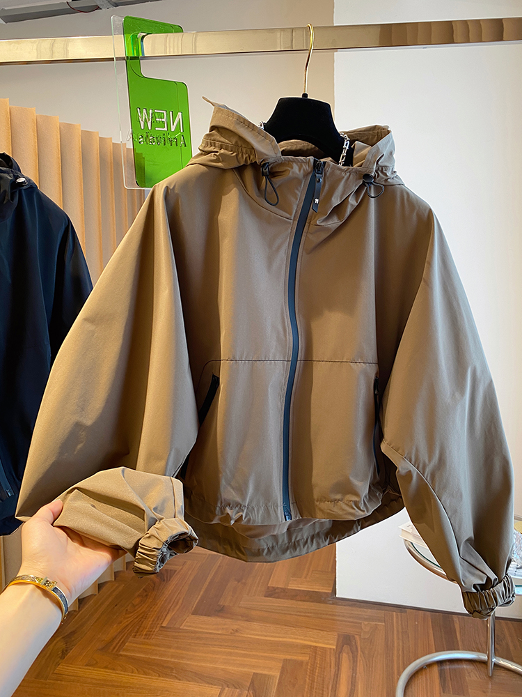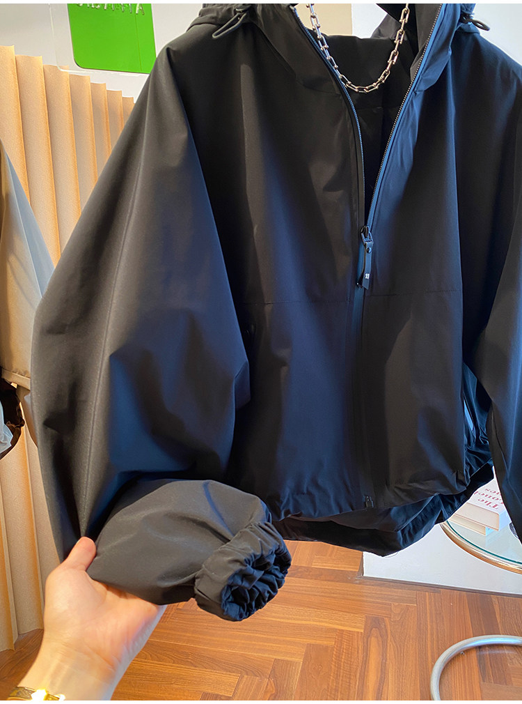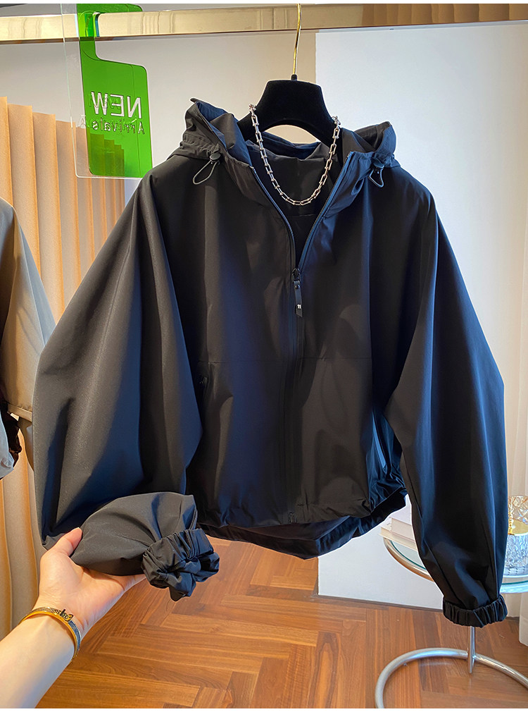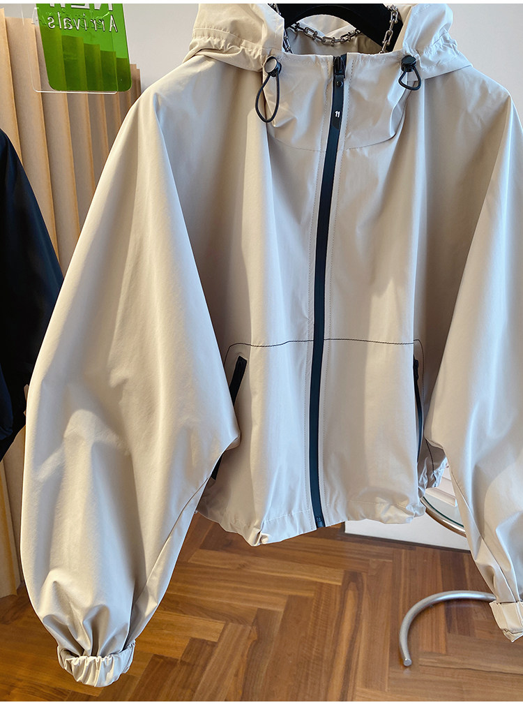 유럽과 서양 스타일의 디자인 틈새 느슨한 캐주얼 모든 매치 레드 후드 카고 코트 여성용 봄과 가을 짧은 재킷