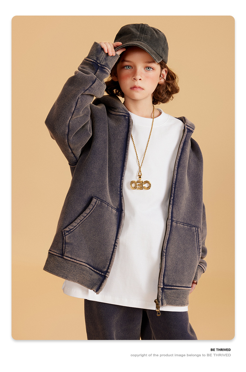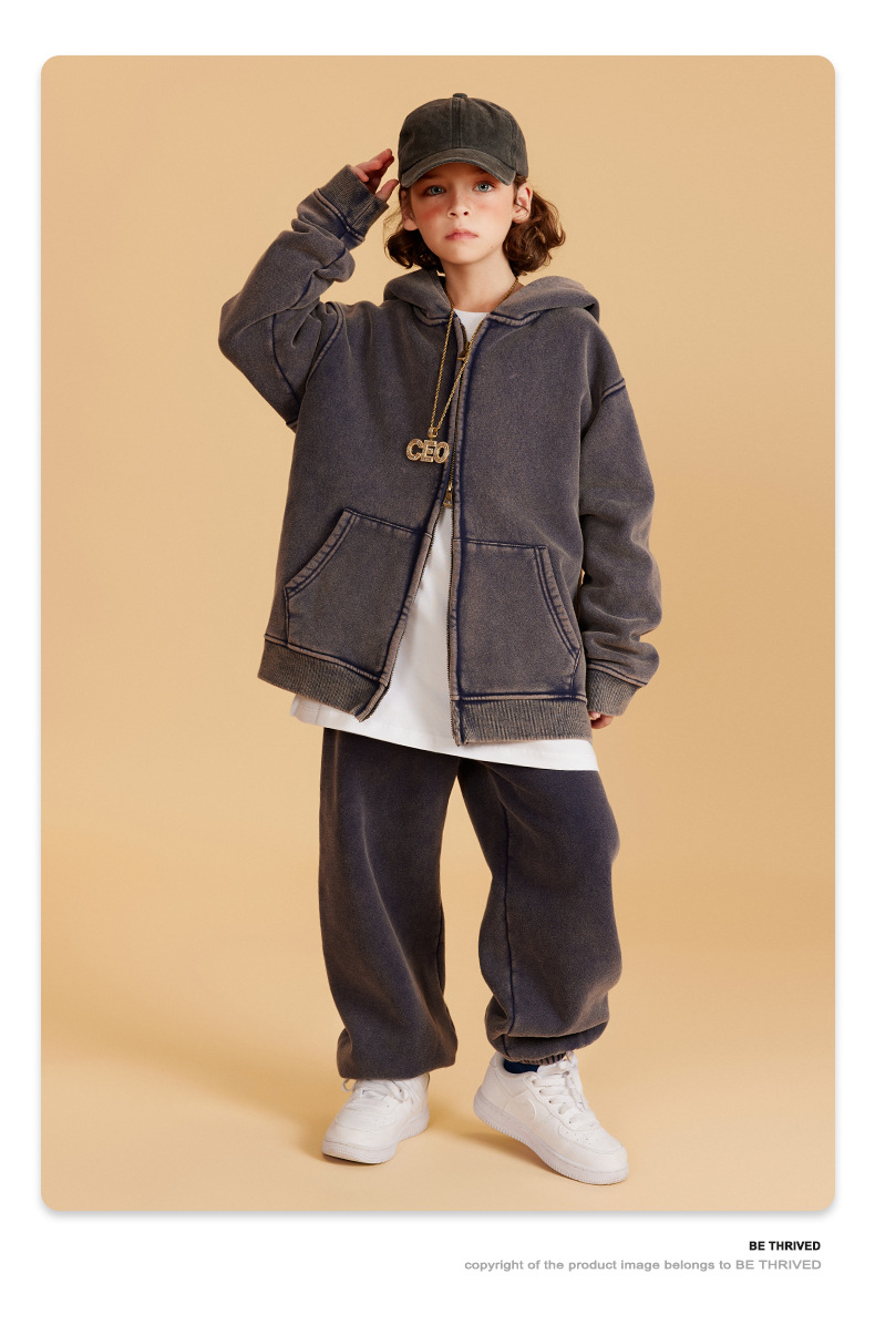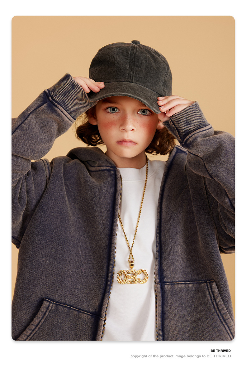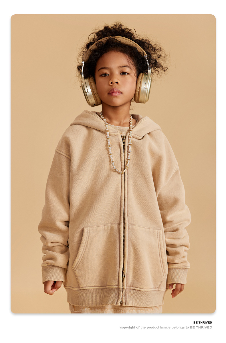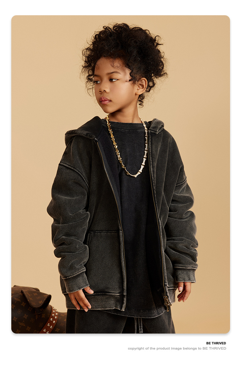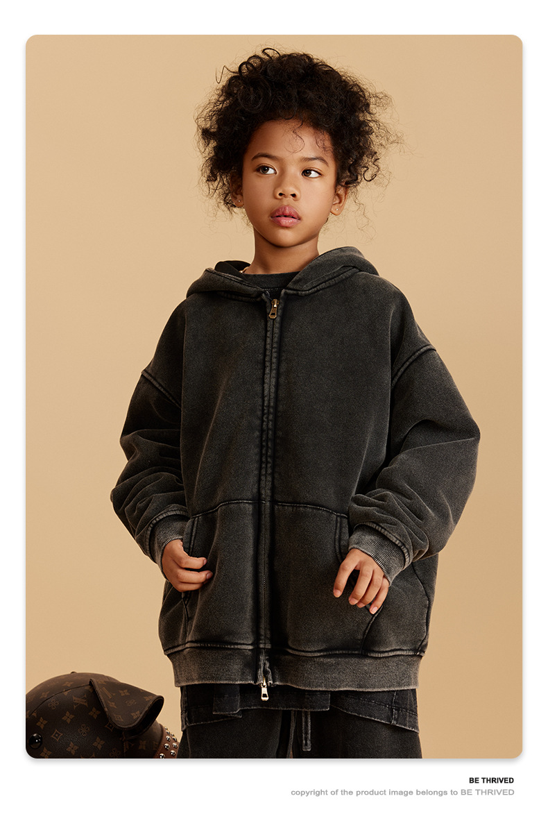BE 아동복 | 2025 가을 겨울 크로스보더 특별 벨벳 가디건 아동복 워싱 후드 재킷 트렌디 브랜드 스웨트 재킷스토어 가기