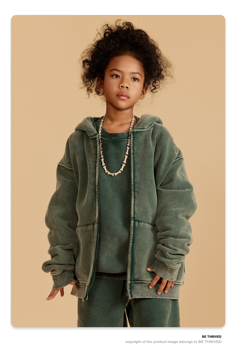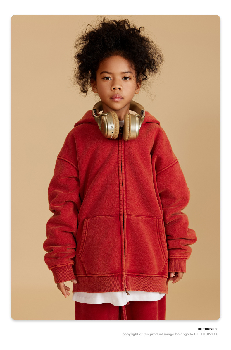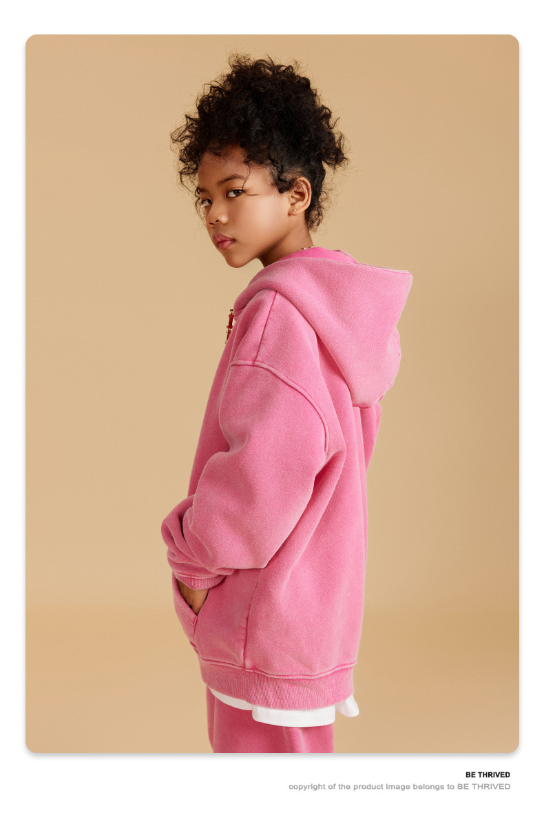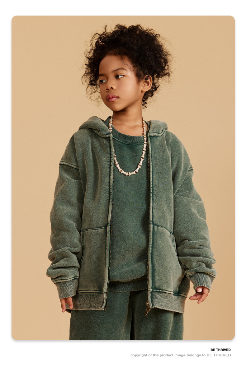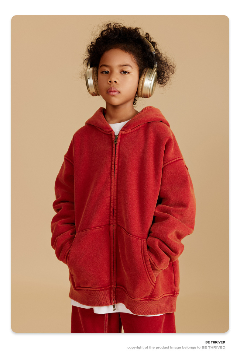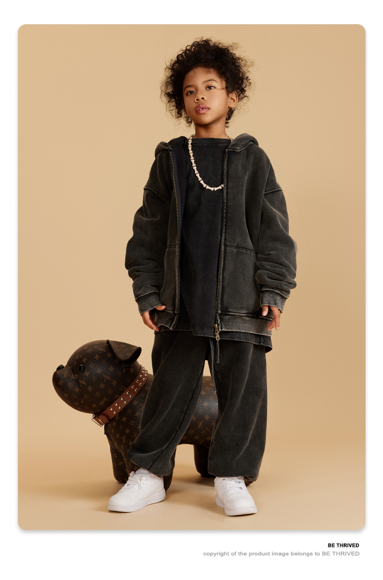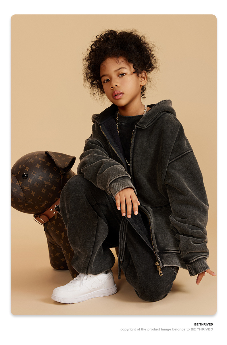 BE 아동복 | 2025 가을 겨울 크로스보더 특별 벨벳 가디건 아동복 워싱 후드 재킷 트렌디 브랜드 스웨트 재킷스토어 가기