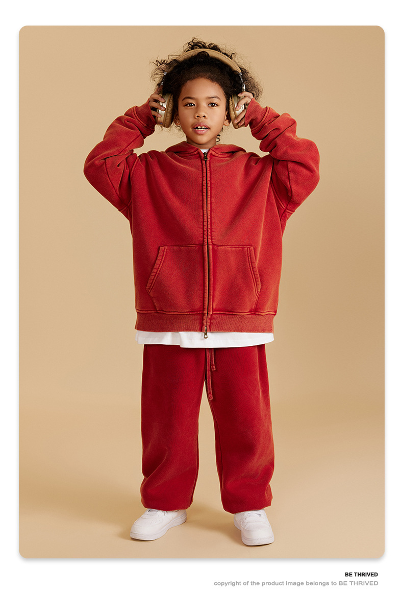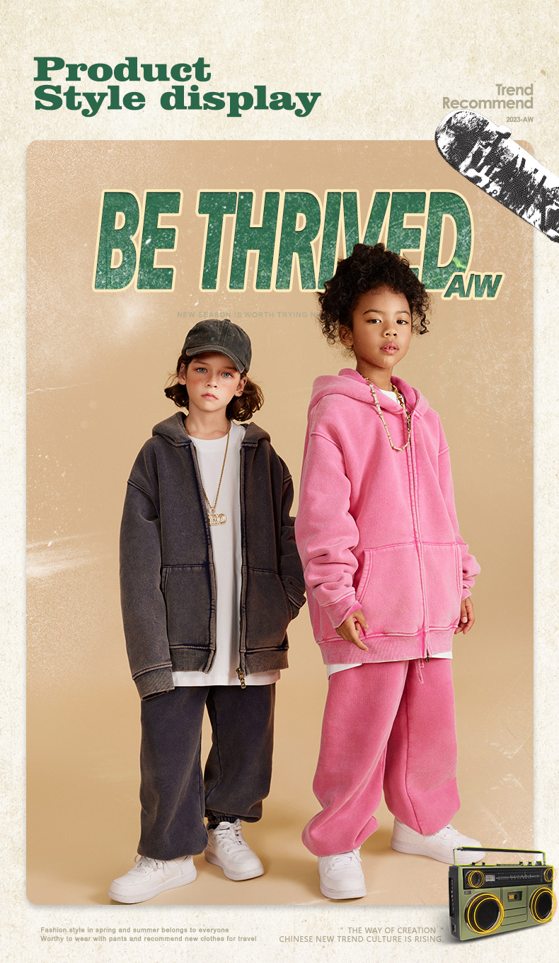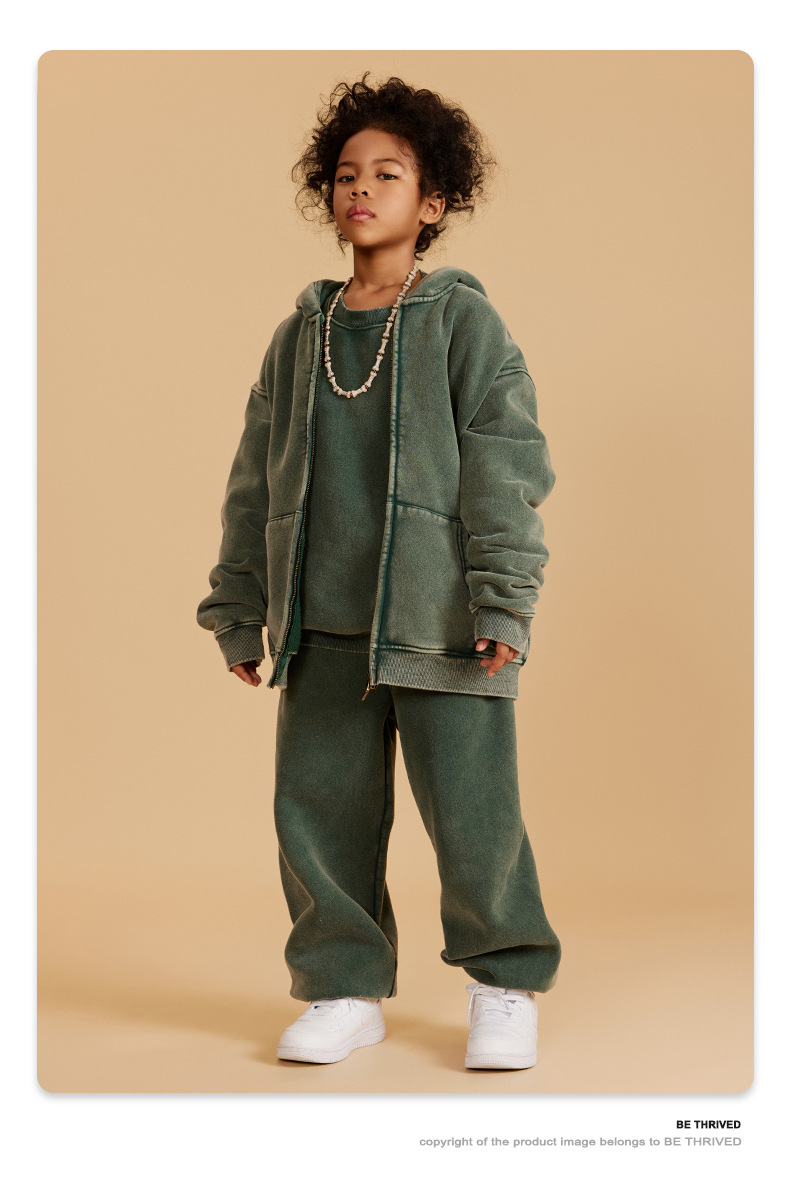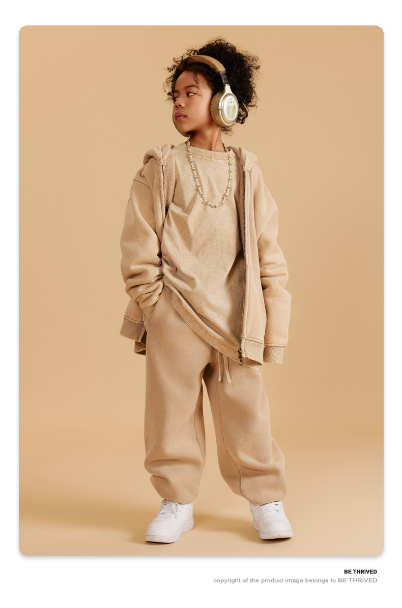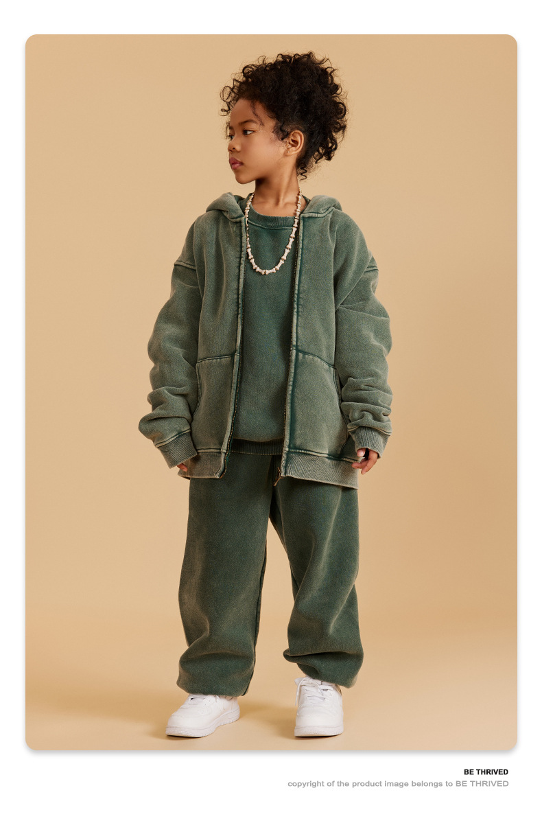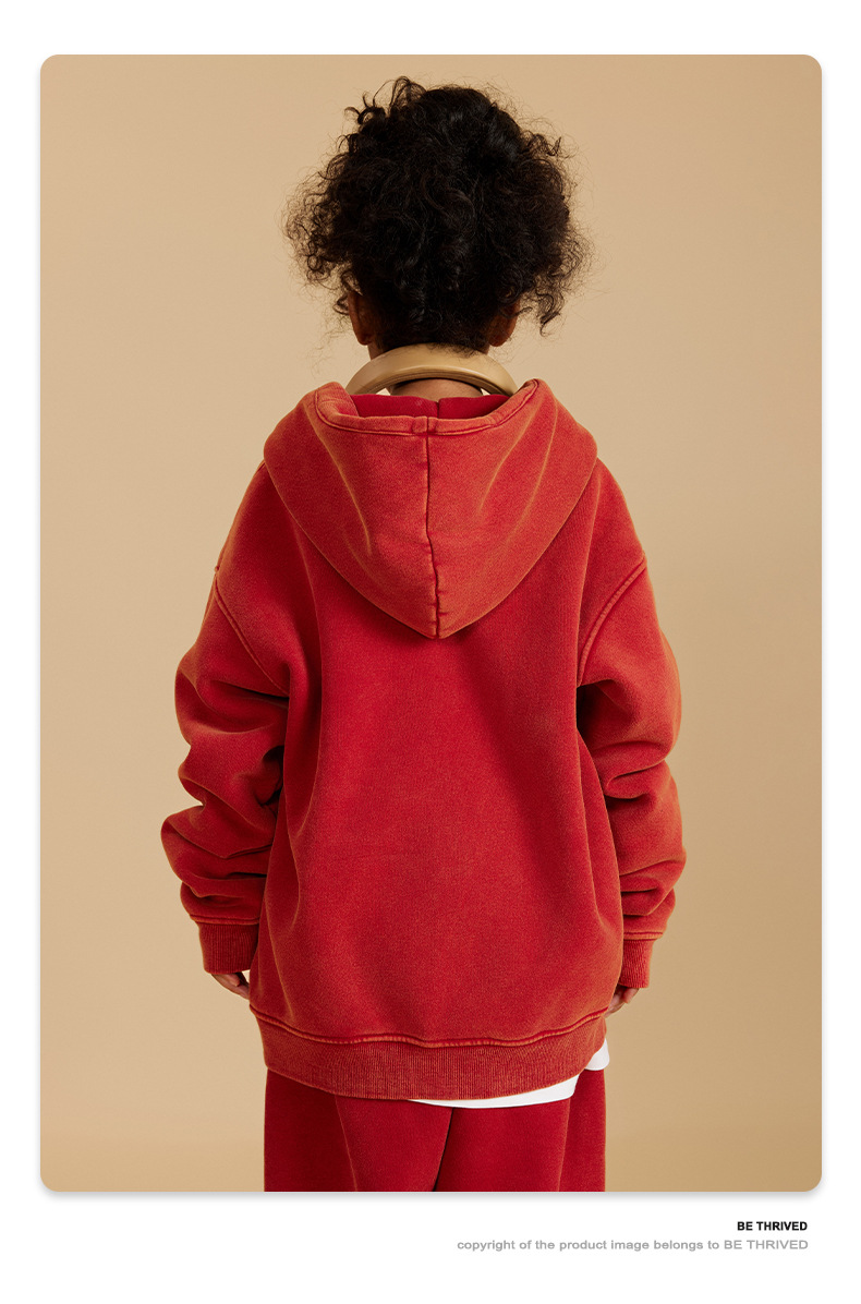 BE 아동복 | 2025 가을 겨울 크로스보더 특별 벨벳 가디건 아동복 워싱 후드 재킷 트렌디 브랜드 스웨트 재킷스토어 가기