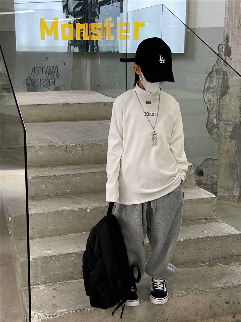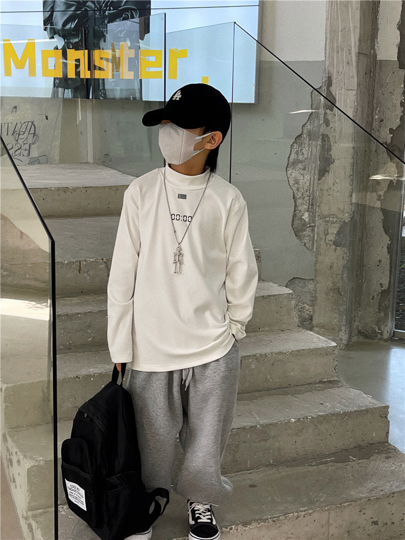 Baoduo 아동복 남아 베이스 셔츠 2023 가을 겨울 스타일리스트 긴팔 티셔츠 한국 스타일 어린이 하이 칼라 탑 트렌디 브랜드스토어 가기
