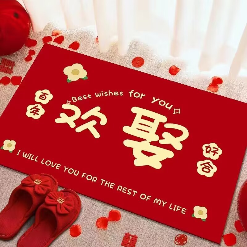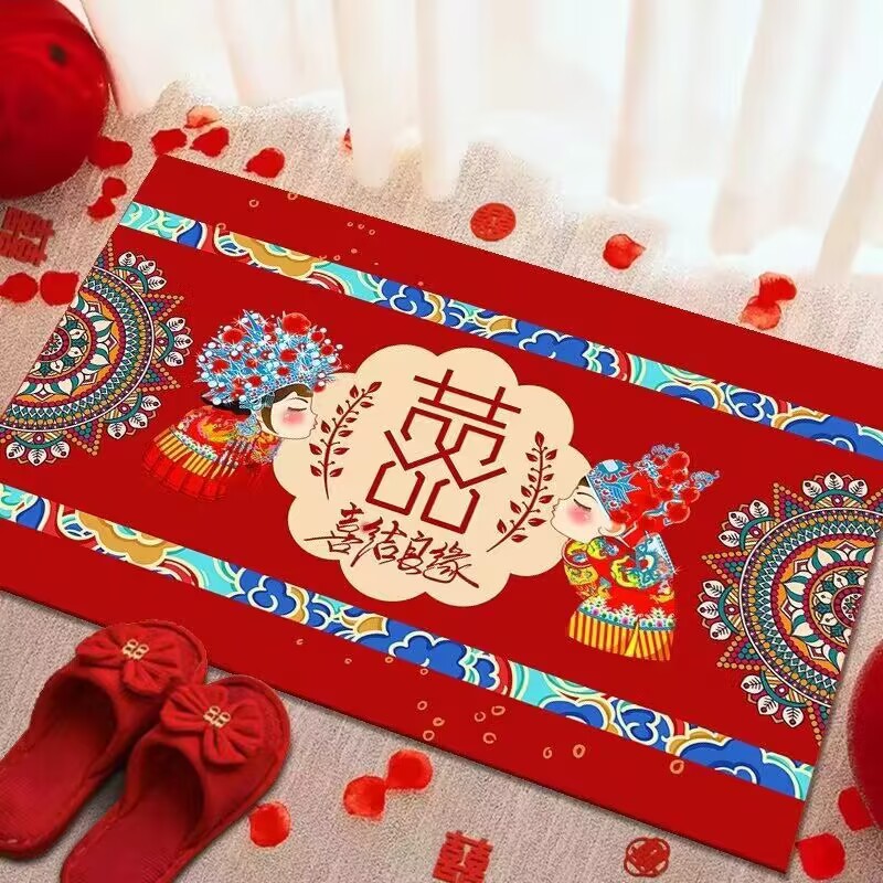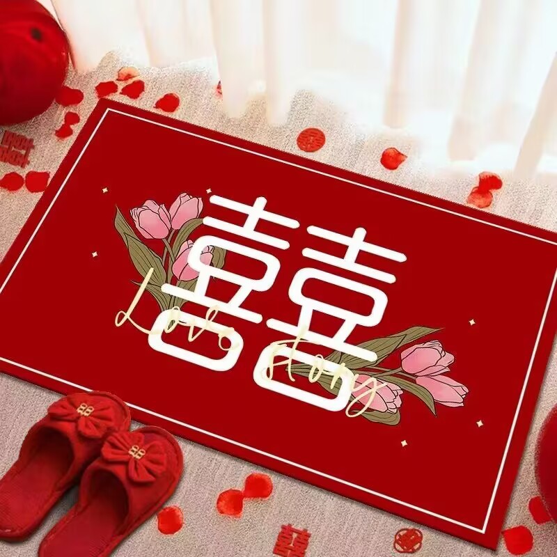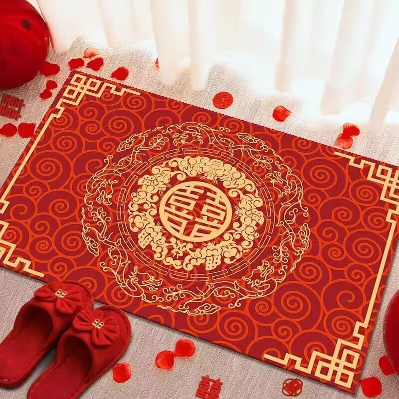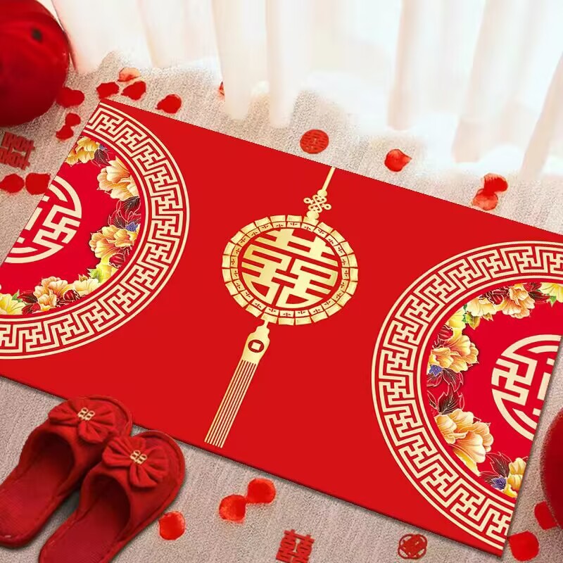 레드 축제 웨딩 바닥 매트 방음 흡수성 미끄럼 방지 입구 바닥 매트 더러움 방지 및 좋은 관리 크리스탈 벨벳 홈 바닥 매트스토어 가기