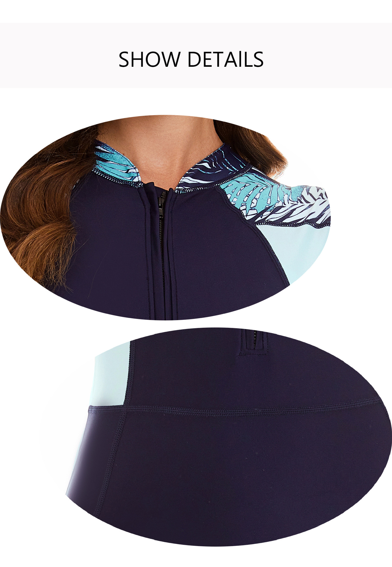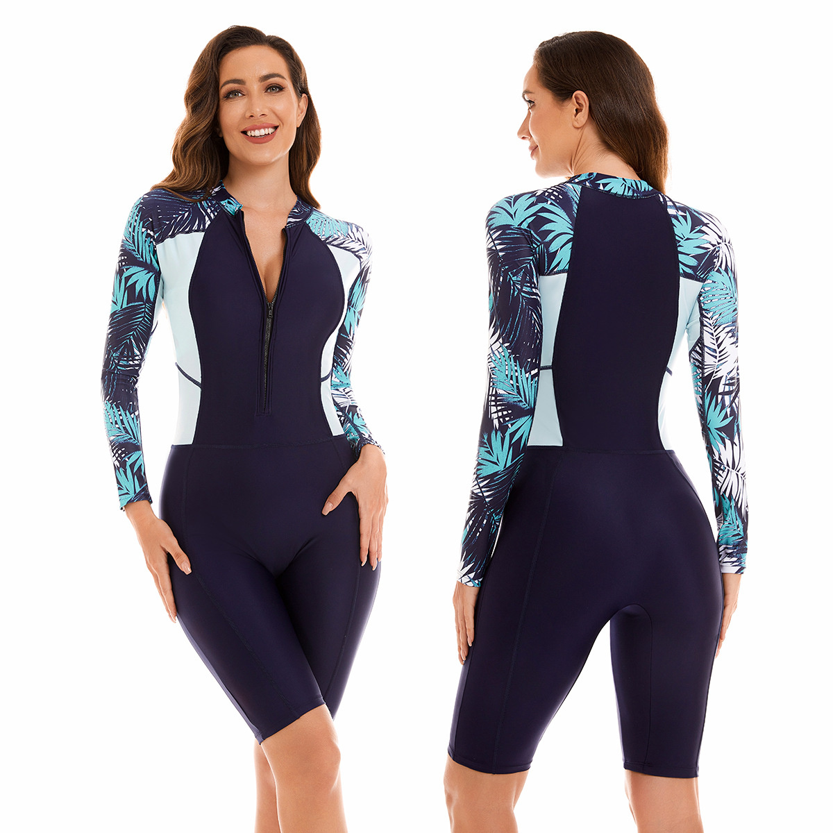 유럽과 미국 스포츠 대외 무역 원피스 세트 긴팔 서핑수트 여성용 수영복 플랫 앵글 다이빙 세트 수영복 Oni Flower 28010