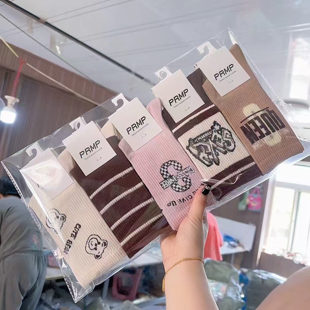 새로운 유행 편지 스포츠 긴 탄성 파일 면화 양말 땀 흡수성 편안한 패션 구속력이없는 발 도매 전체 무료 배송