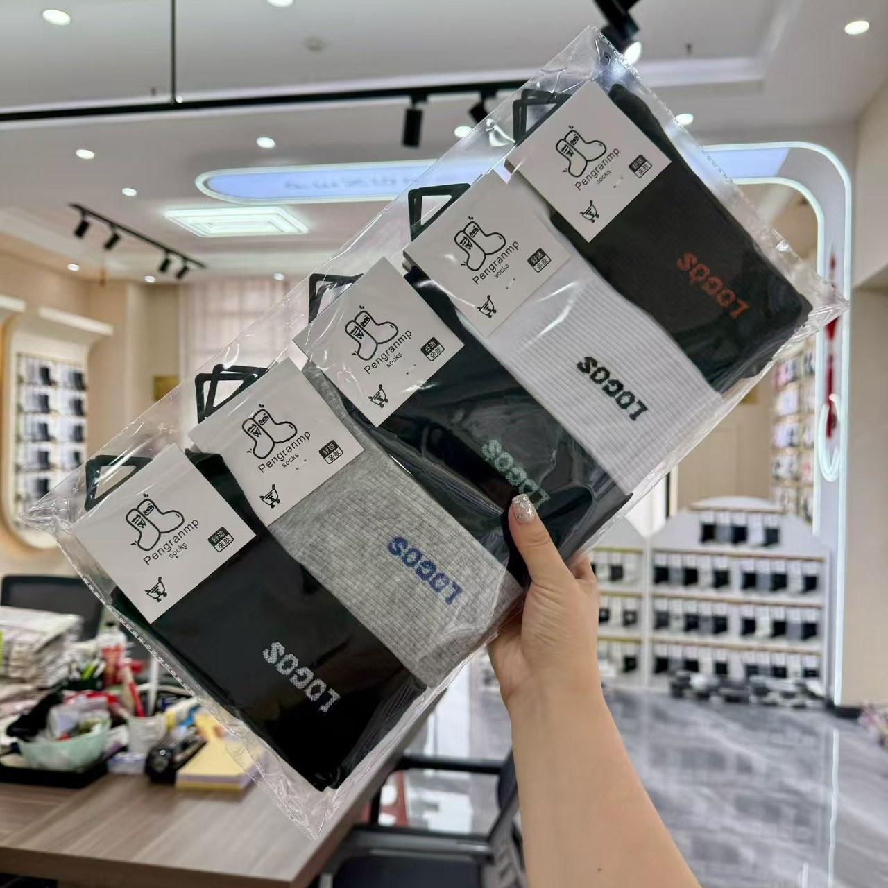 새로운 유행 편지 스포츠 긴 탄성 파일 면화 양말 땀 흡수성 편안한 패션 구속력이없는 발 도매 전체 무료 배송스토어 가기
