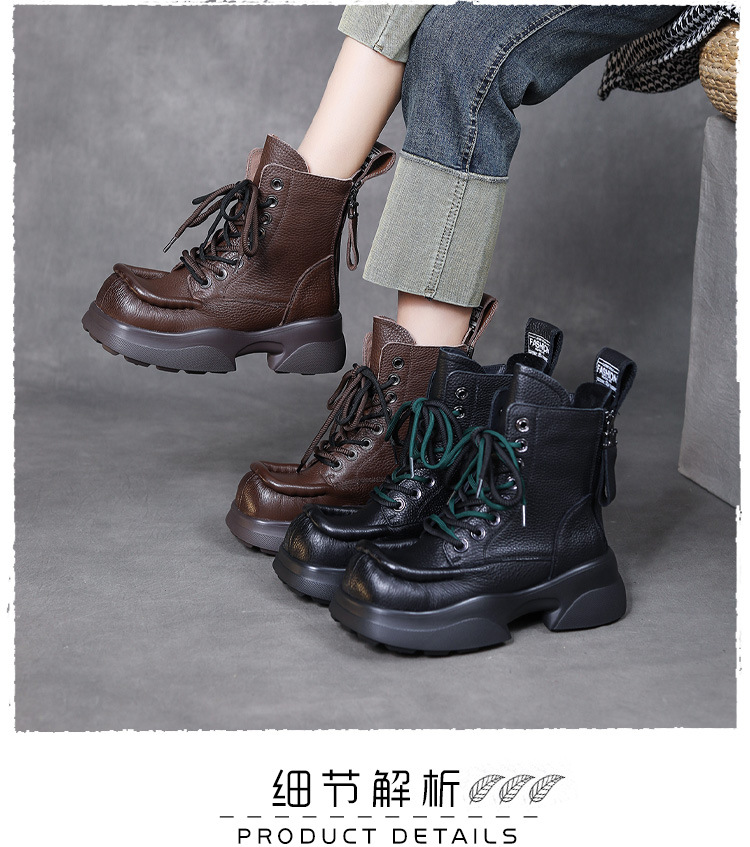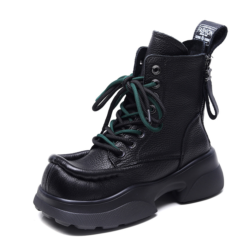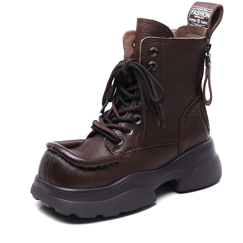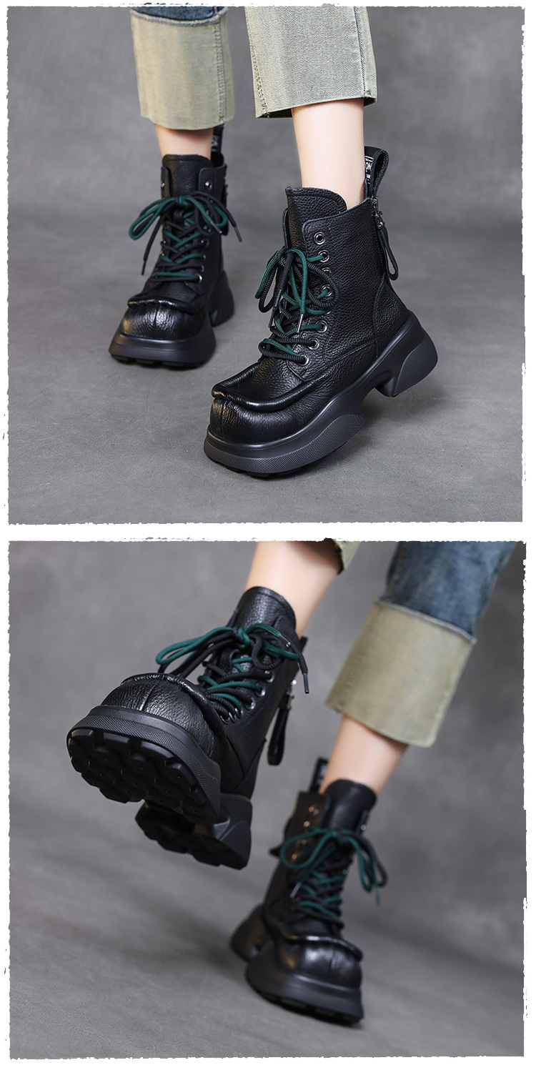 탑 레이어 소가죽 빈티지 스퀘어 헤드 마틴 부츠 여성용 나이트 부츠 두꺼운 밑창 증가 싱글 레이어 부츠 캐주얼 청키 힐 여성용 가죽 부츠