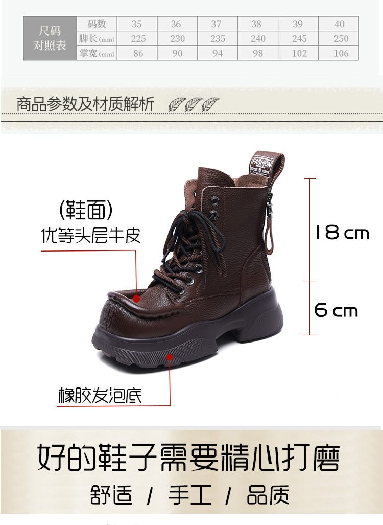 탑 레이어 소가죽 빈티지 스퀘어 헤드 마틴 부츠 여성용 나이트 부츠 두꺼운 밑창 증가 싱글 레이어 부츠 캐주얼 청키 힐 여성용 가죽 부츠스토어 가기
