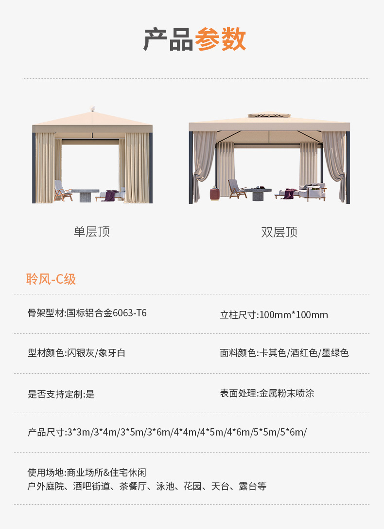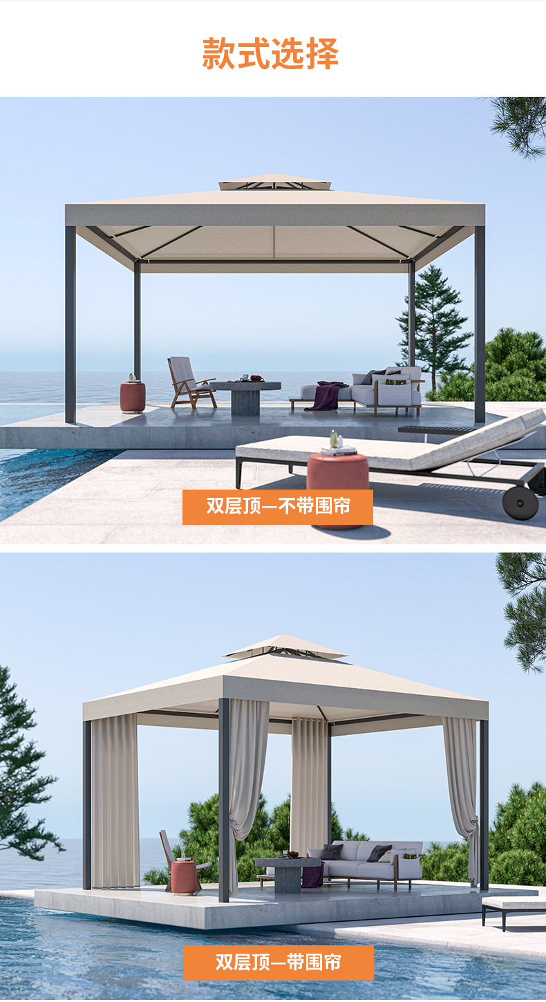 공장 직접 실외 음영 안뜰 파빌리온 정원 캐노피 레저 천 파빌리온 취사 유럽식 알루미늄 합금 파빌리온