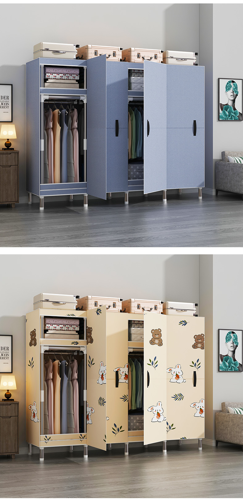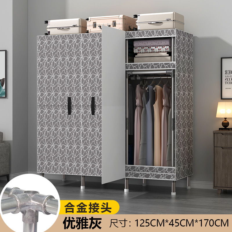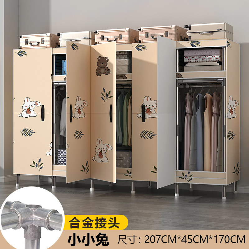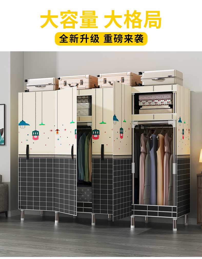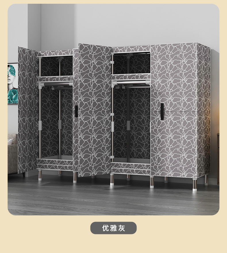 마그네틱 오픈 도어 간단한 옷장 두꺼운 강화 두꺼운 전체 강철 프레임 강력하고 튼튼한 침실 조립 보관 옷장
