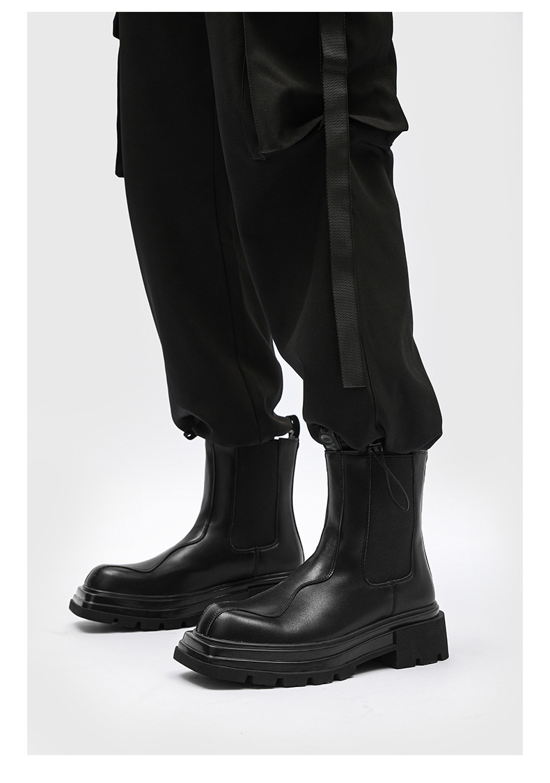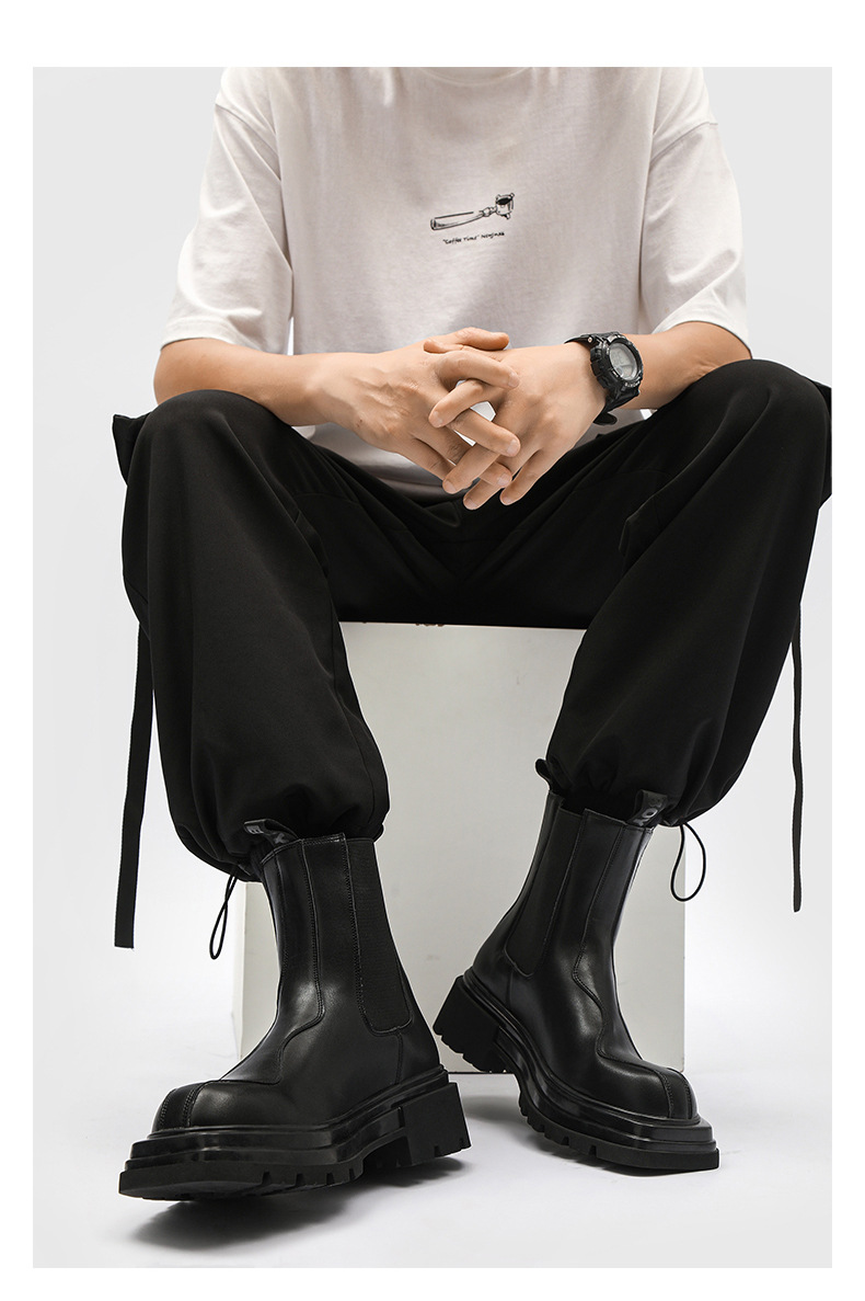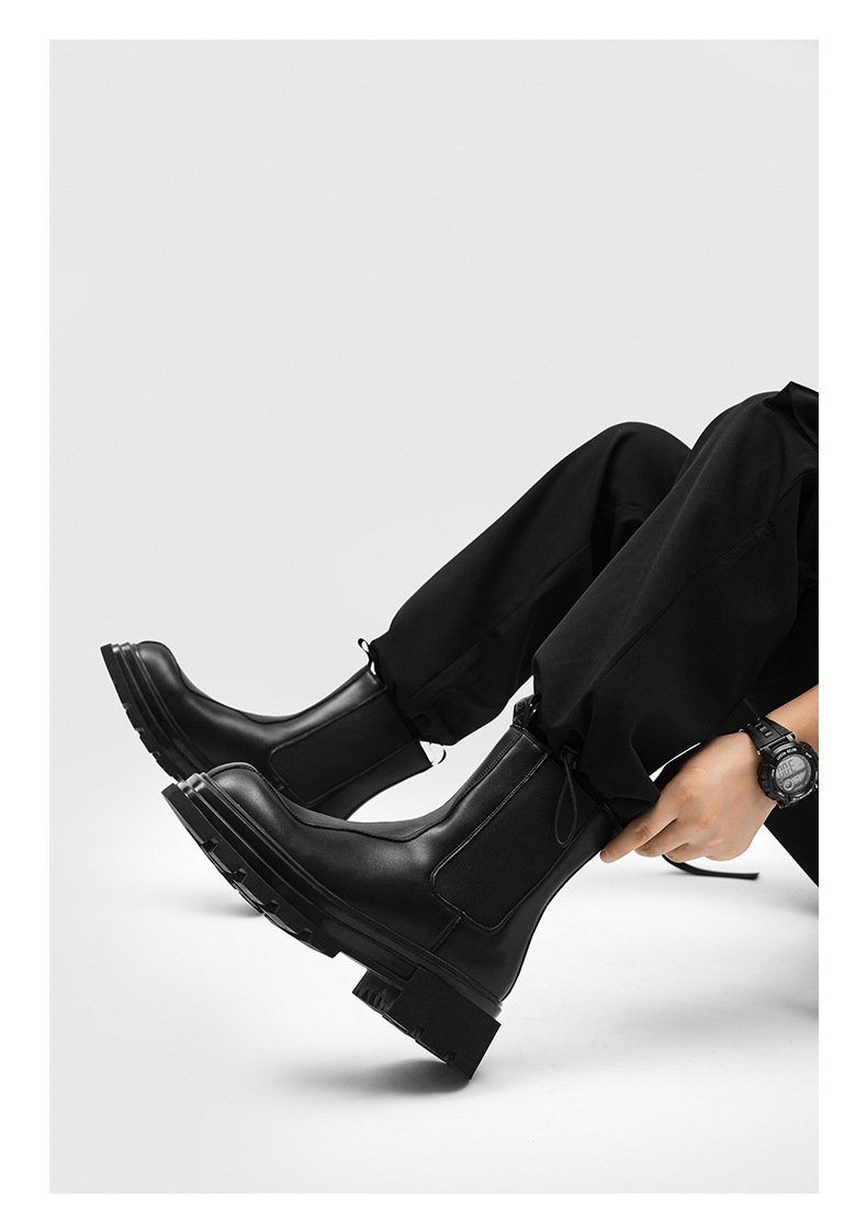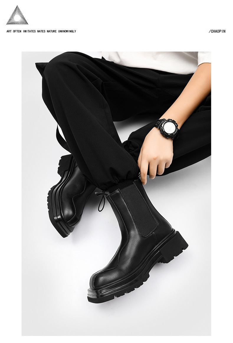 마틴 부츠 남자의 가을 하이탑 가죽 신발 빈티지 영국 스타일 스모크 부츠 두꺼운 밑창 슬립온 첼시 부츠