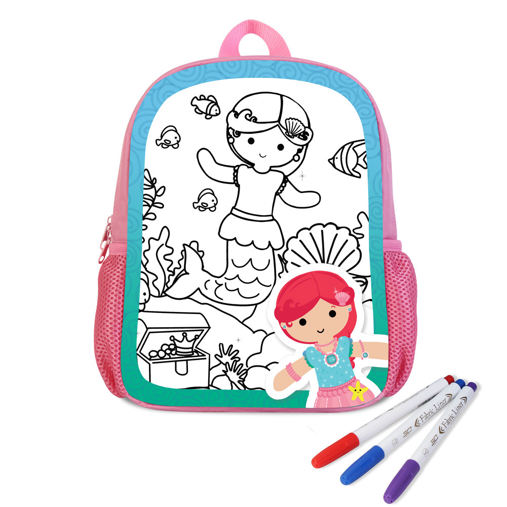 美人鱼儿童涂鸦背包 12寸卡通人鱼diy来图定 做艺校广告活动礼品