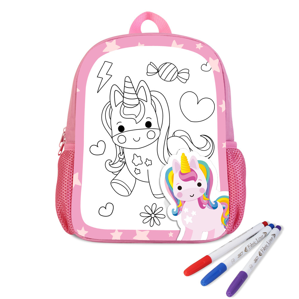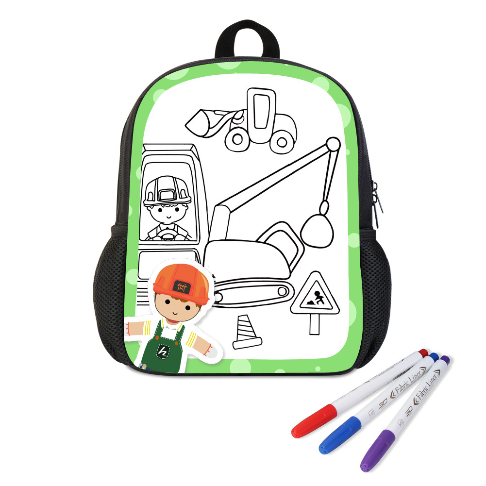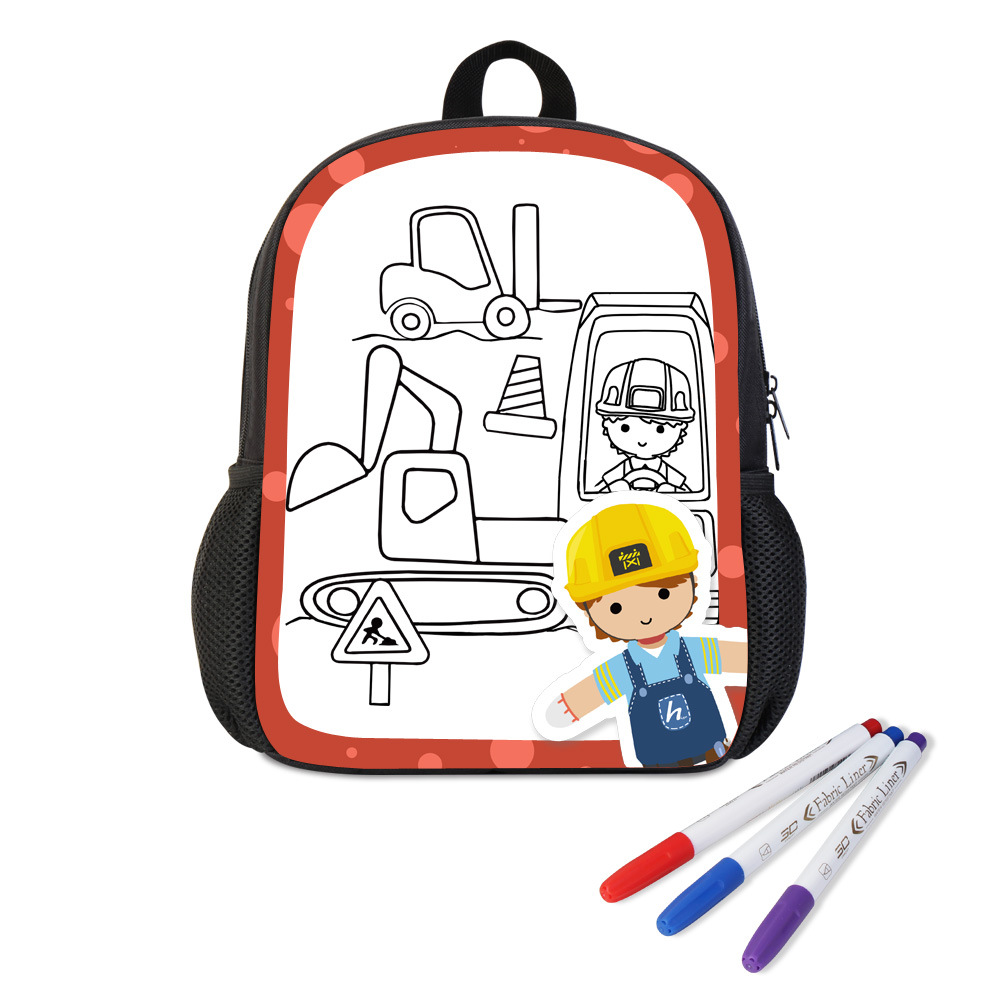 库博箱包-涂鸦背包系列:绘画创作是孩子想象力、创造力的高效手段。自己动手DIY,简单有趣的涂鸦方式,挖掘艺术潜力,锻炼孩子专注力,在背包(笔袋、餐包)上DIY涂鸦,高品质布料,涂鸦无晕染,完成的作品时尚美观。满满的成就感。高颜值、卡通、动漫、早教认知,条线分明,培养孩子对图案和颜色的认知和审美。提高孩子对绘画的兴趣,促进孩子手部发育。