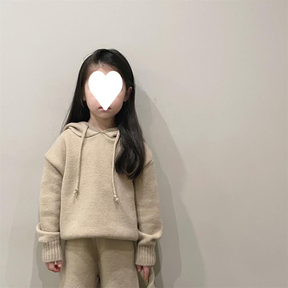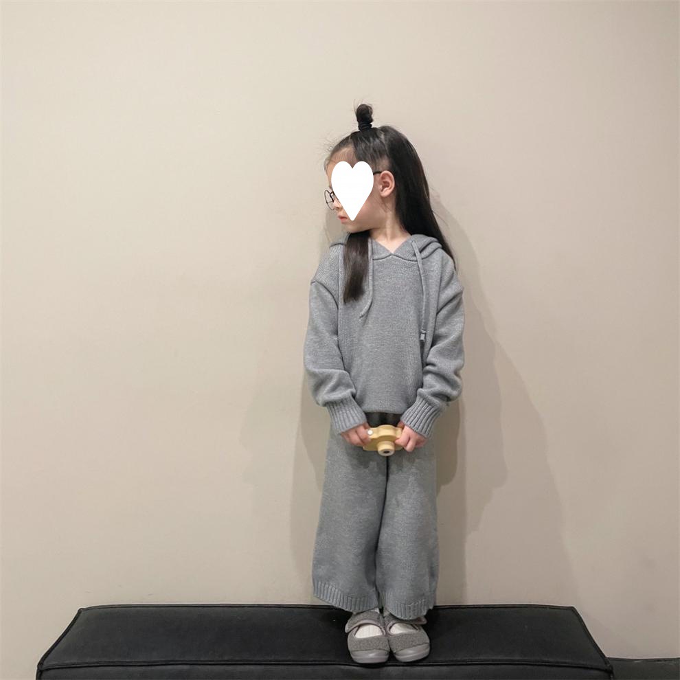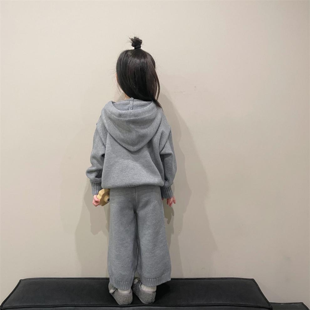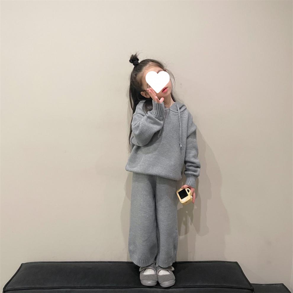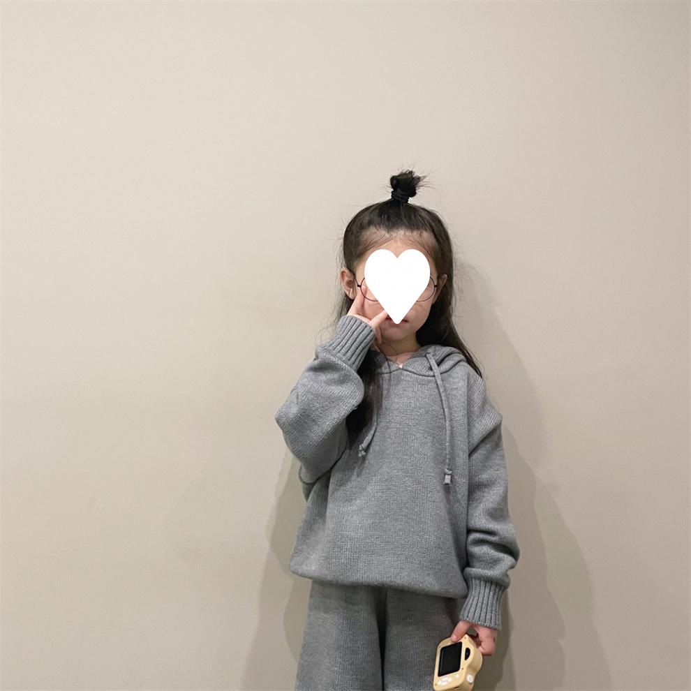 中小童韩国童装儿童毛衣套装2023冬季男女童加厚连帽针织两件套