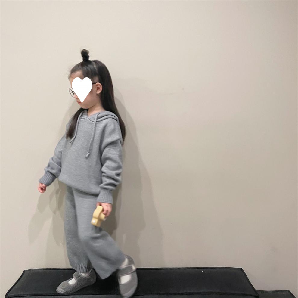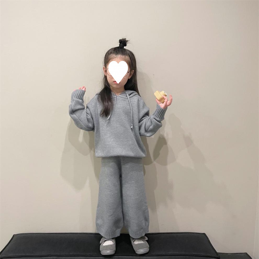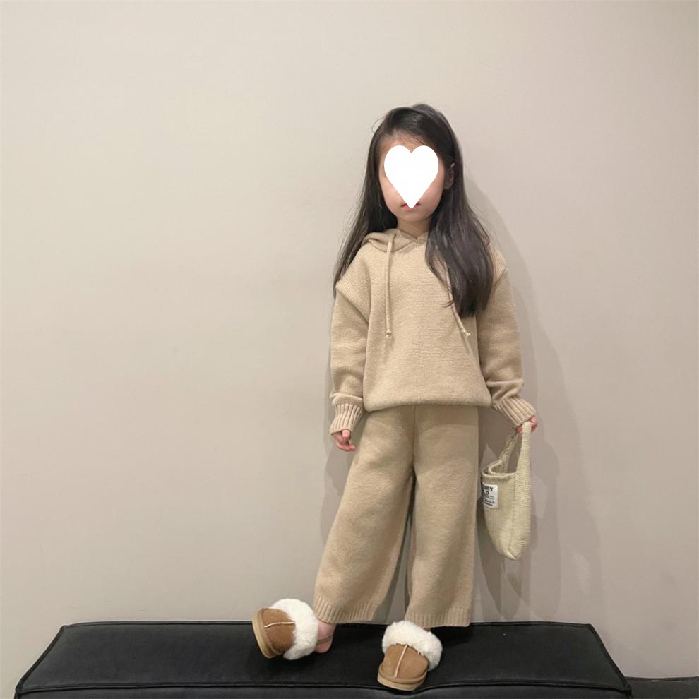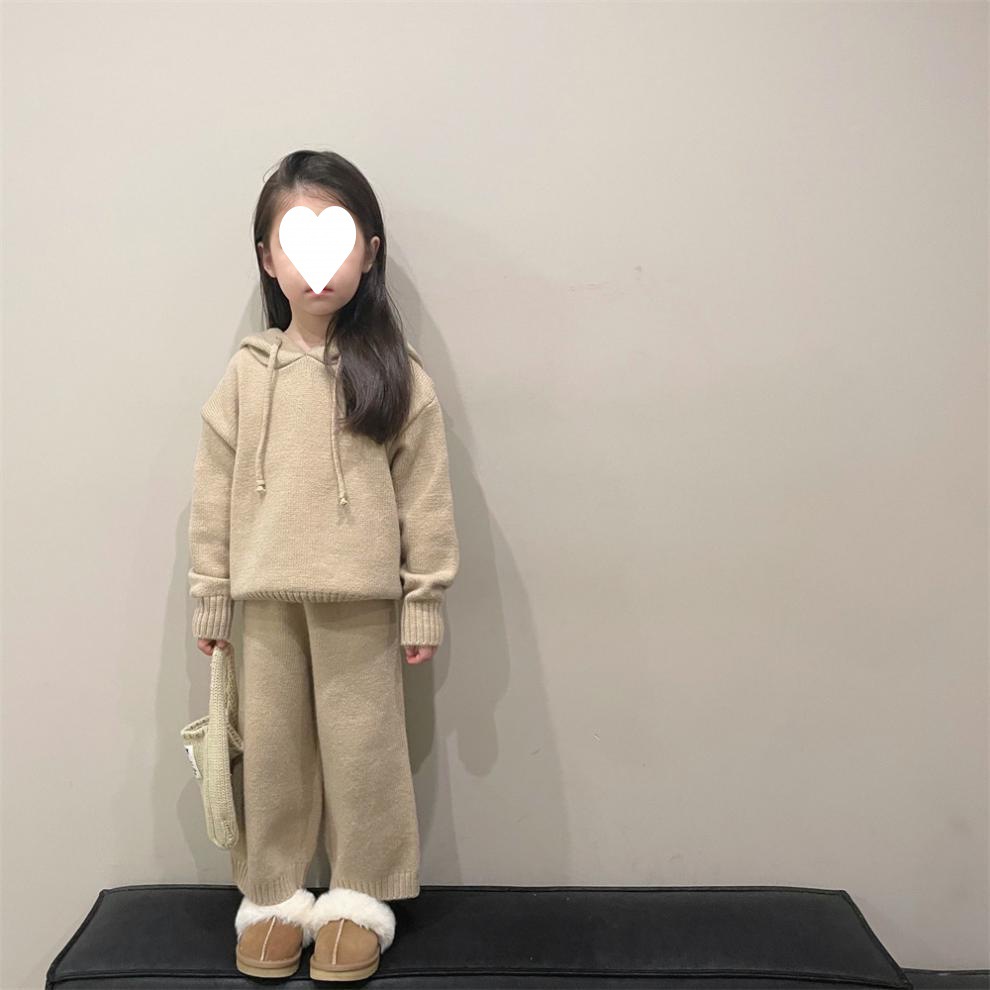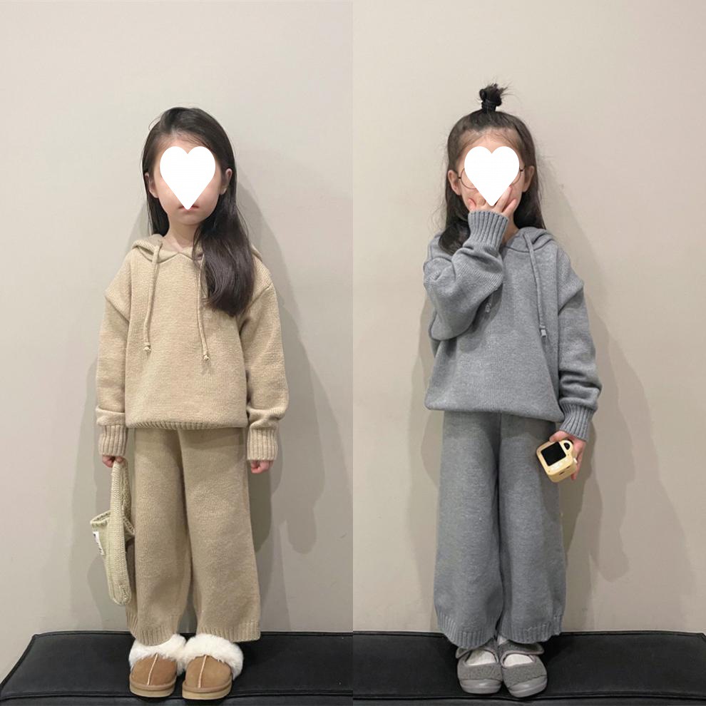 中小童韩国童装儿童毛衣套装2023冬季男女童加厚连帽针织两件套