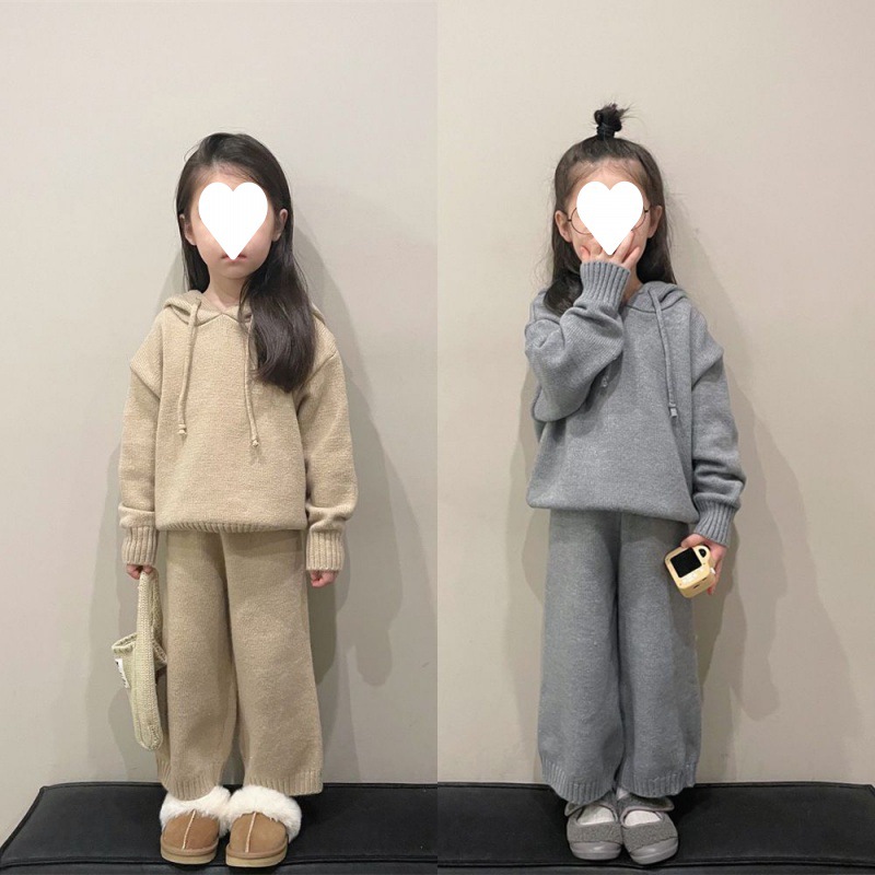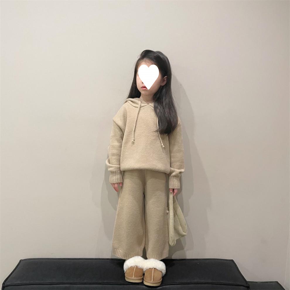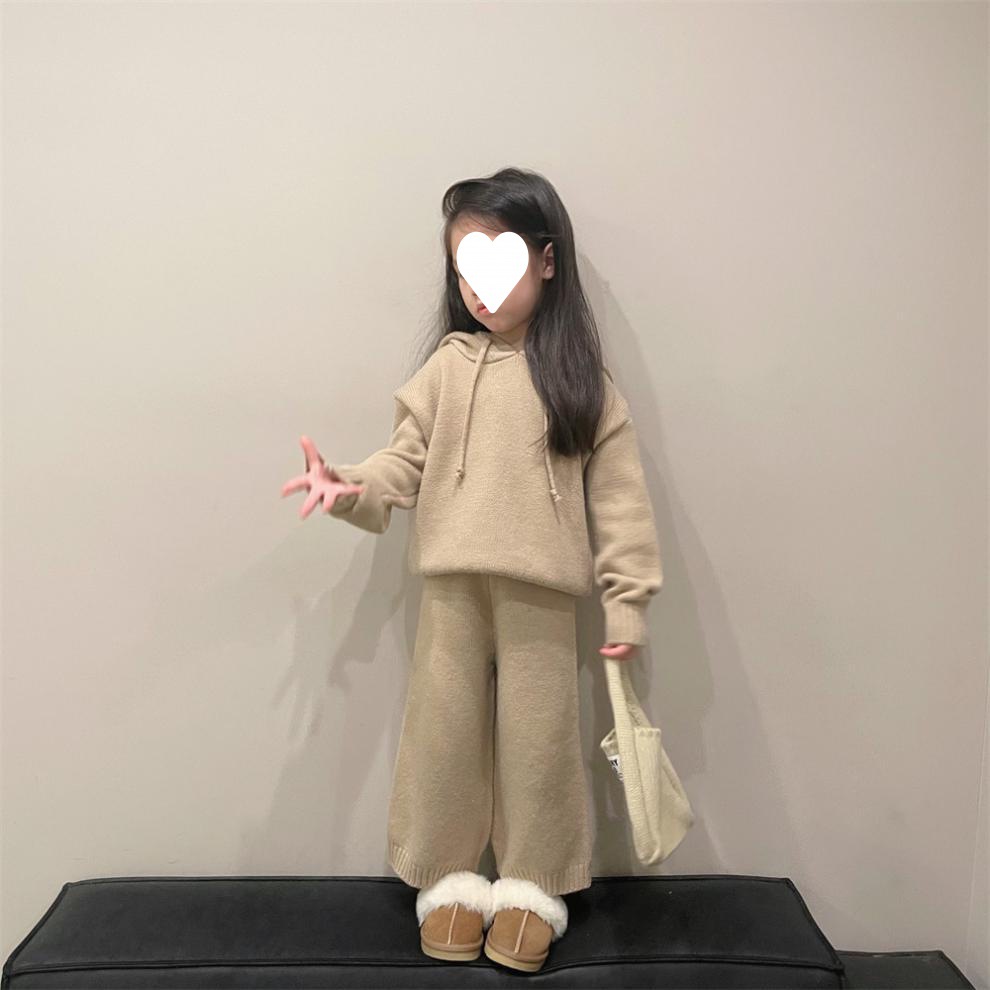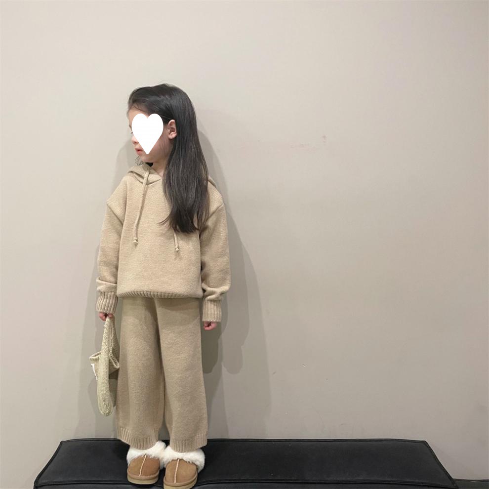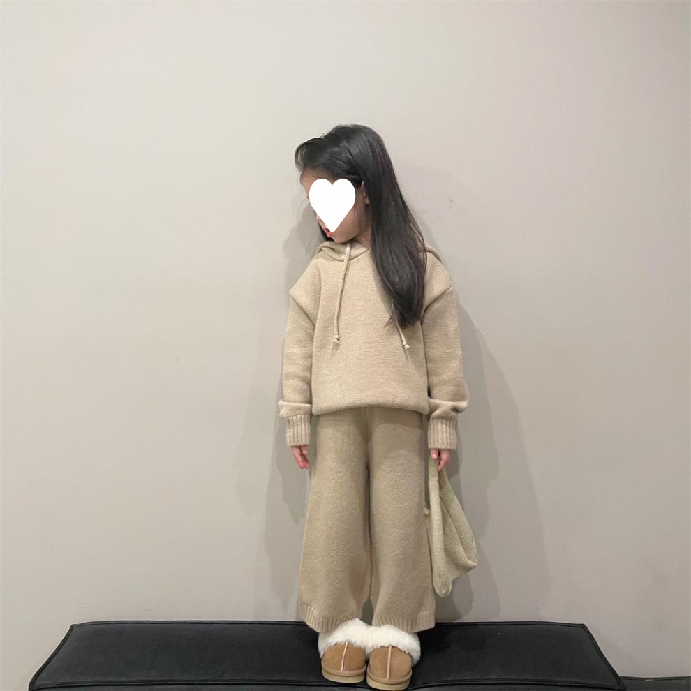 中小童韩国童装儿童毛衣套装2023冬季男女童加厚连帽针织两件套