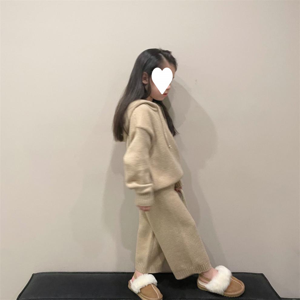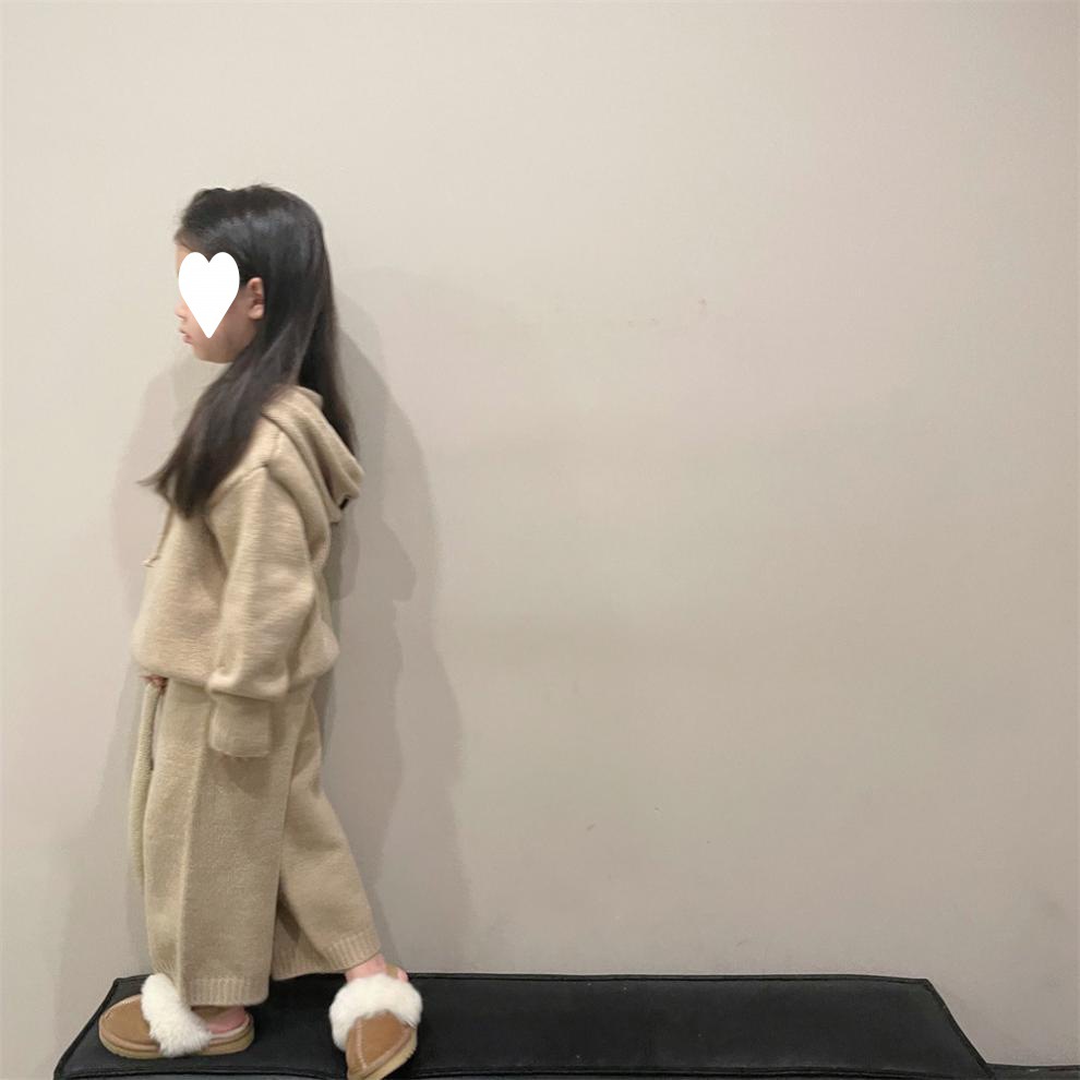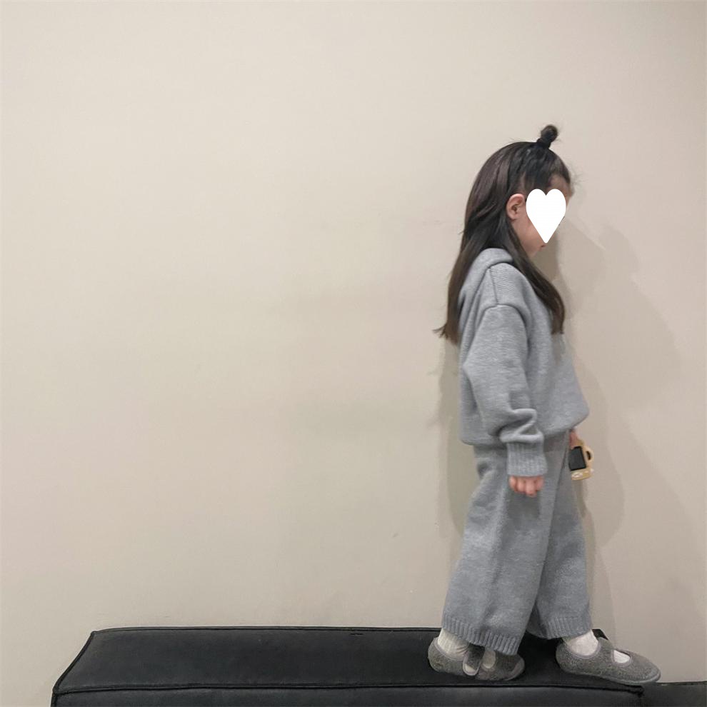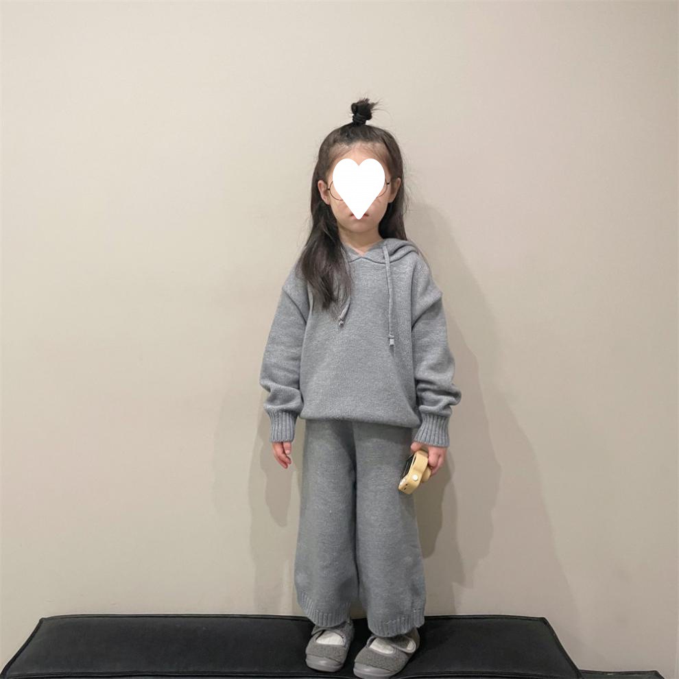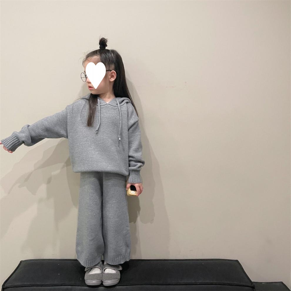 中小童韩国童装儿童毛衣套装2023冬季男女童加厚连帽针织两件套