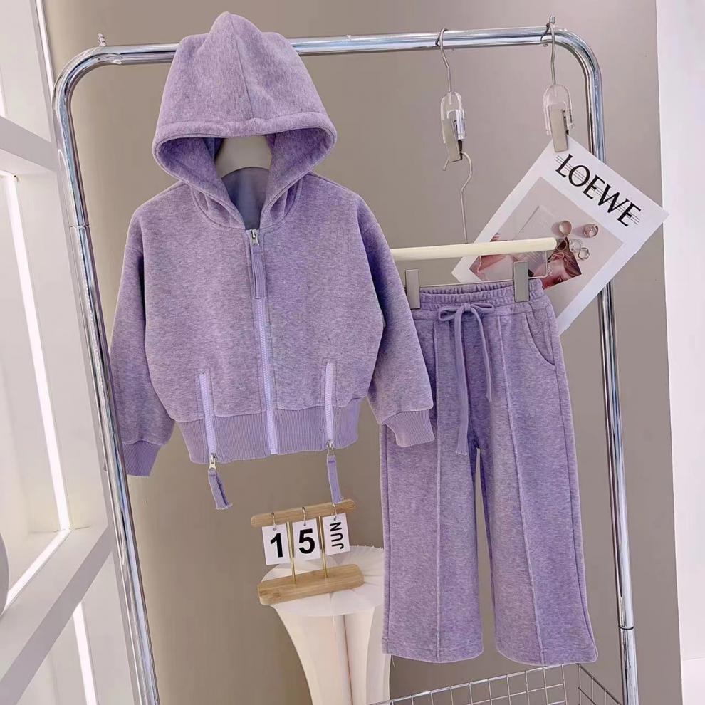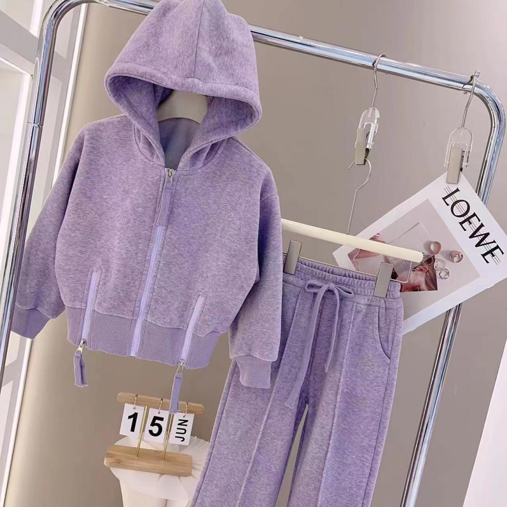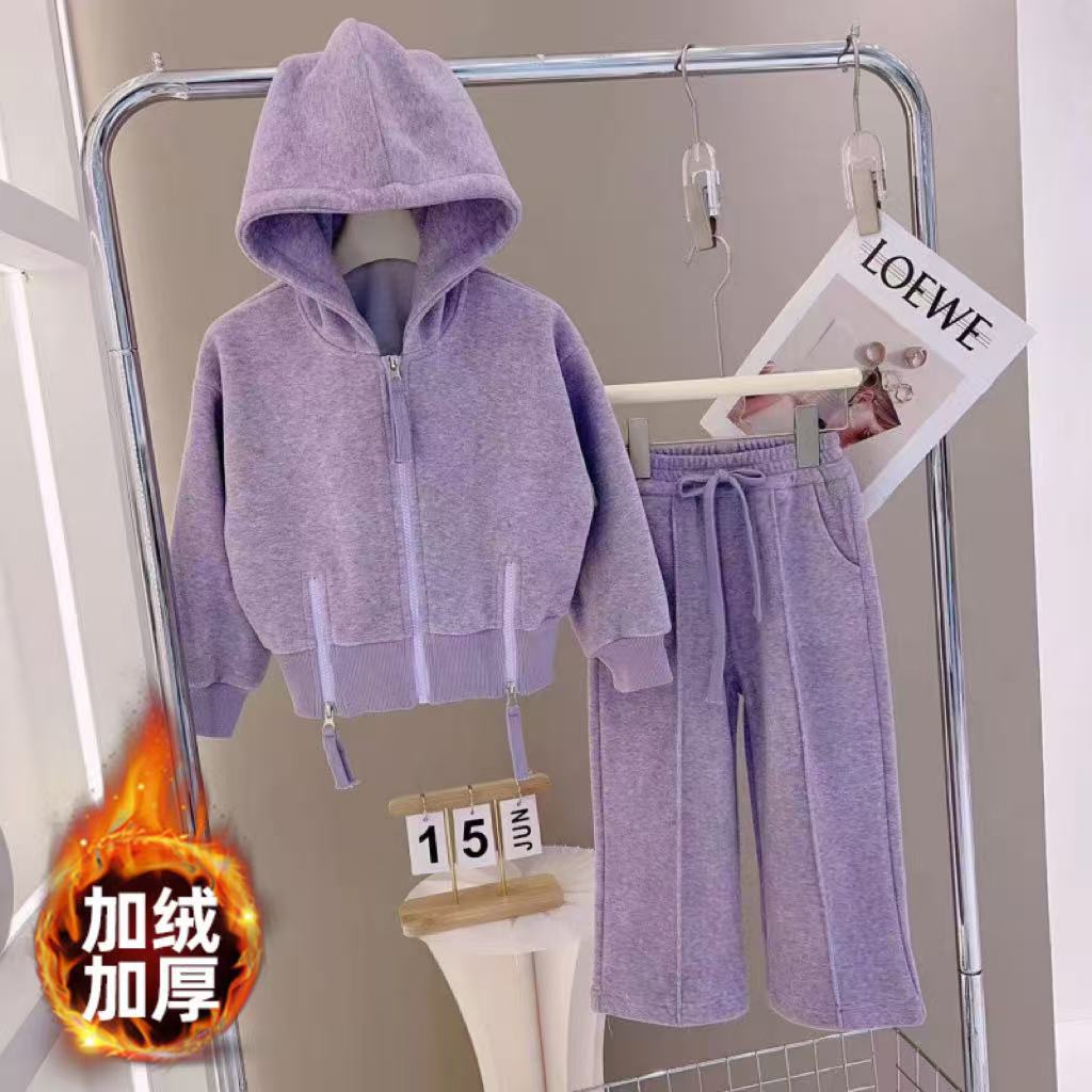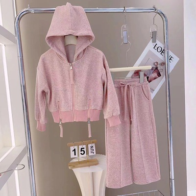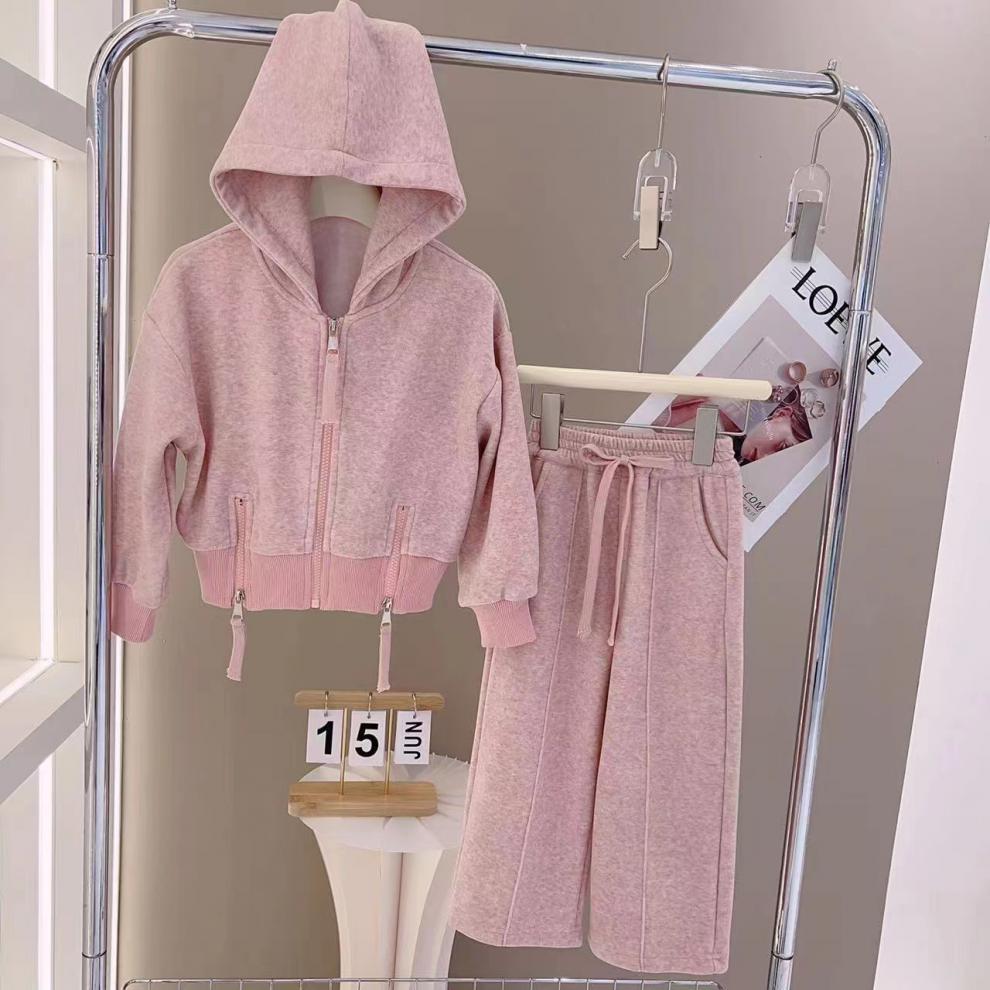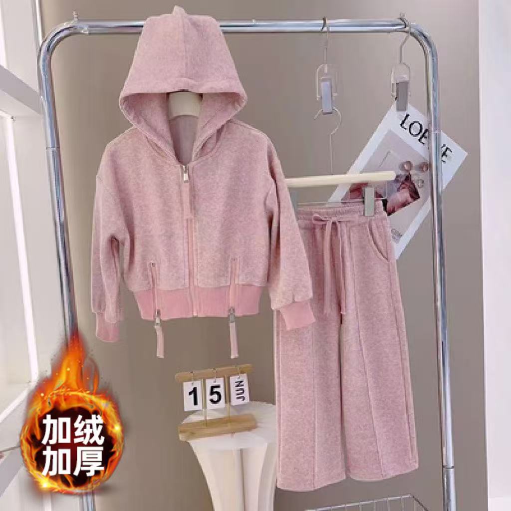 아동복 여아 세트 겨울옷 중대형 아동용 긴팔 후드 재킷 와이드 팬츠 학생용 따뜻한 운동복 투피스 세트스토어 가기