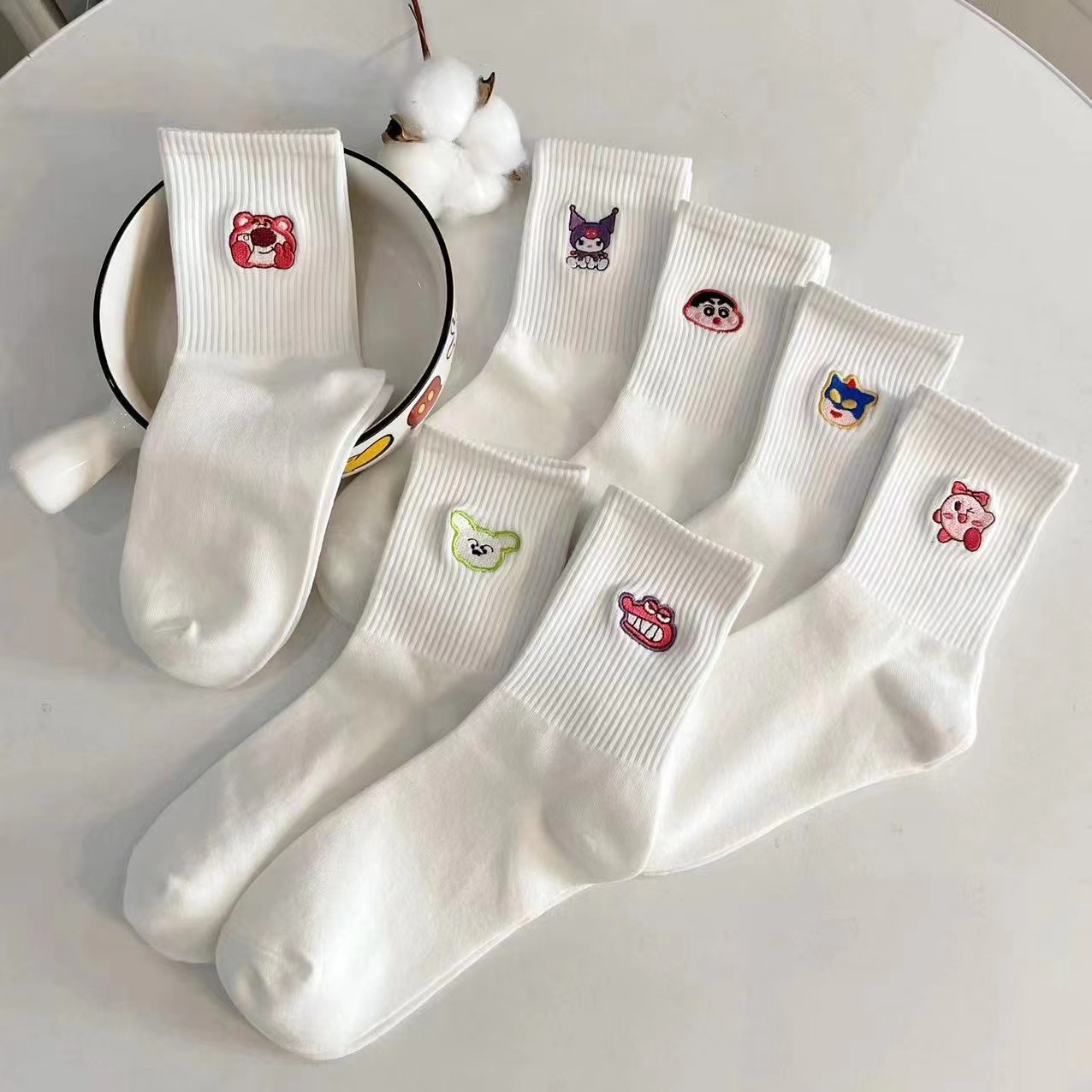 일본 면화 캐주얼 양말 여성 봄, 가을 중반 튜브 ins 학생 더미 다목적 흰색 양말 스포츠 양말스토어 가기