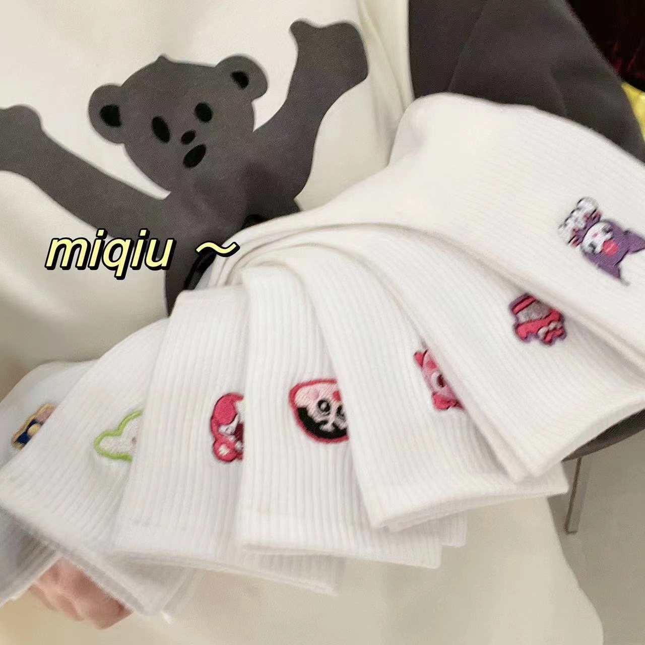 일본 면화 캐주얼 양말 여성 봄, 가을 중반 튜브 ins 학생 더미 다목적 흰색 양말 스포츠 양말
