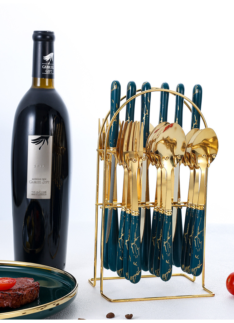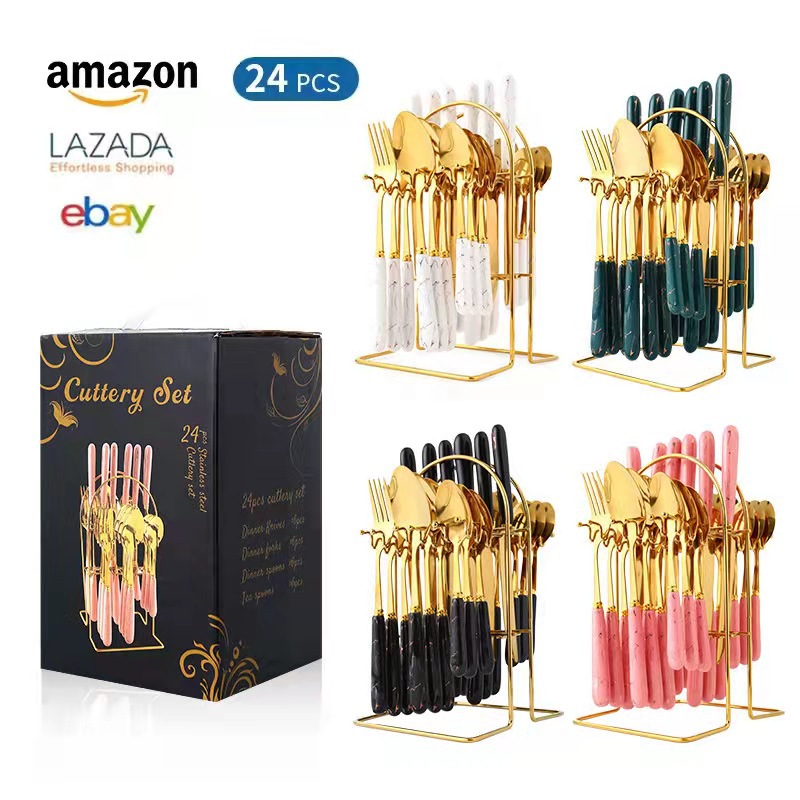 아마존 스테인레스 스틸 식기 24 피스 선물 상자 플라스틱 모조 세라믹 핸들 나이프와 포크 스푼 웨스턴 스테이크 나이프와 포크 스푼스토어 가기