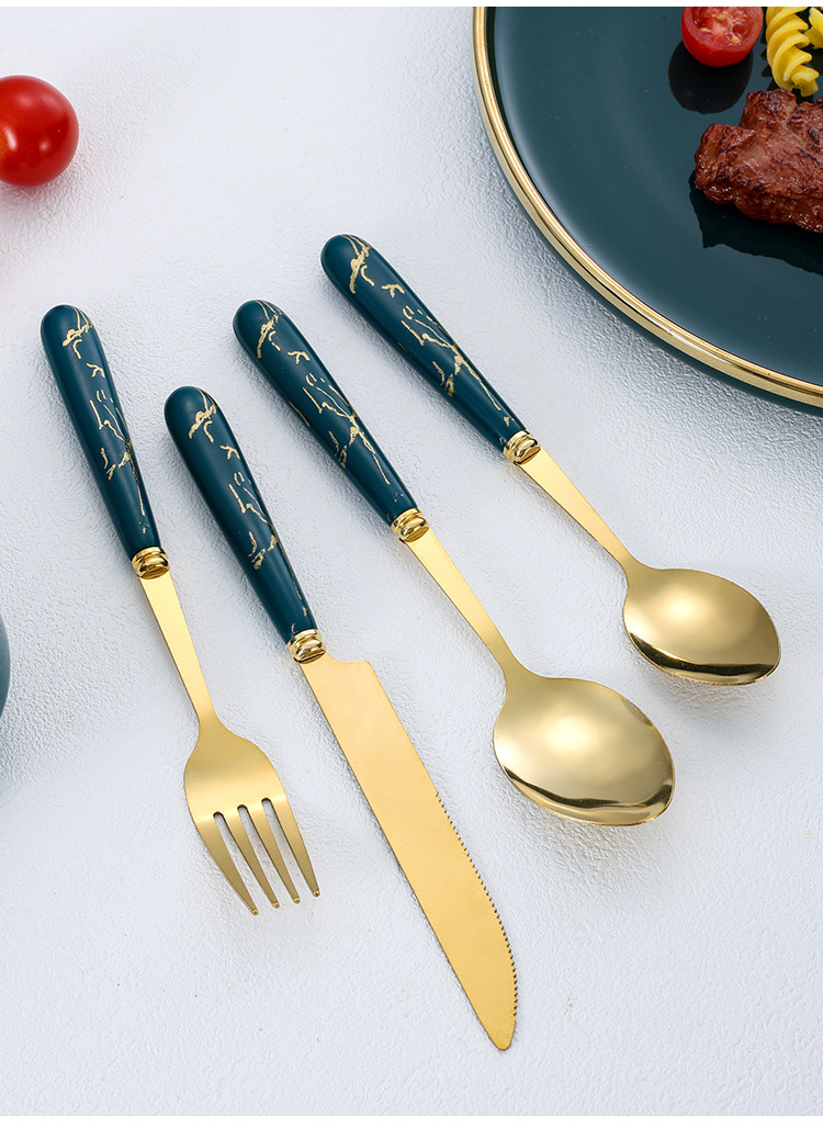 • 다크 그린 골드 24 개 세트 [플라스틱 손잡이]]