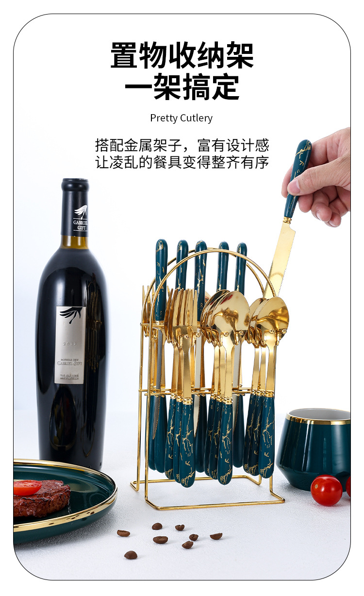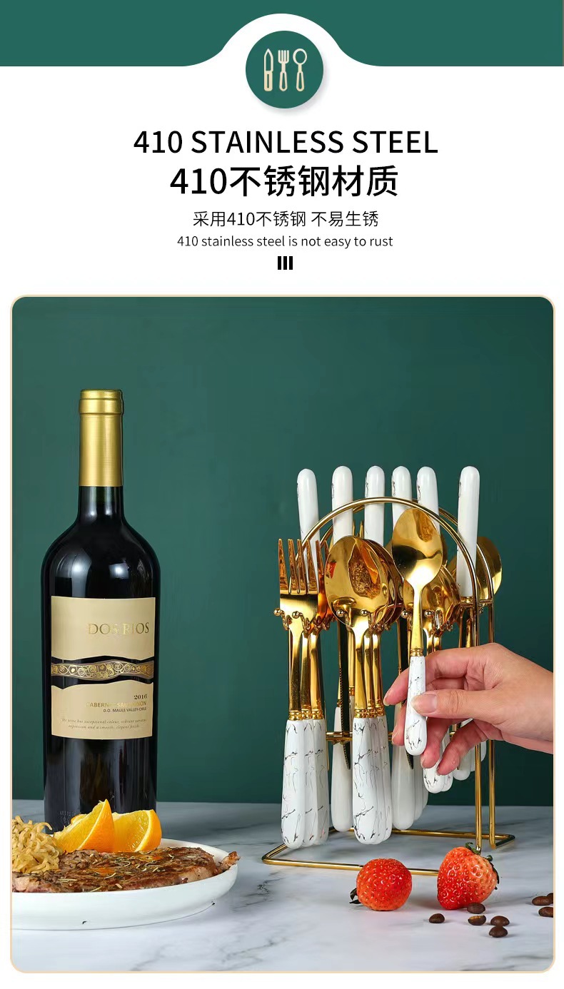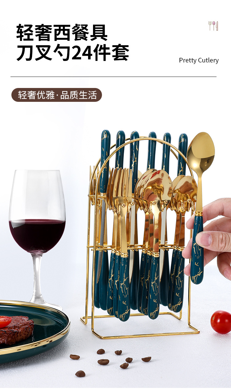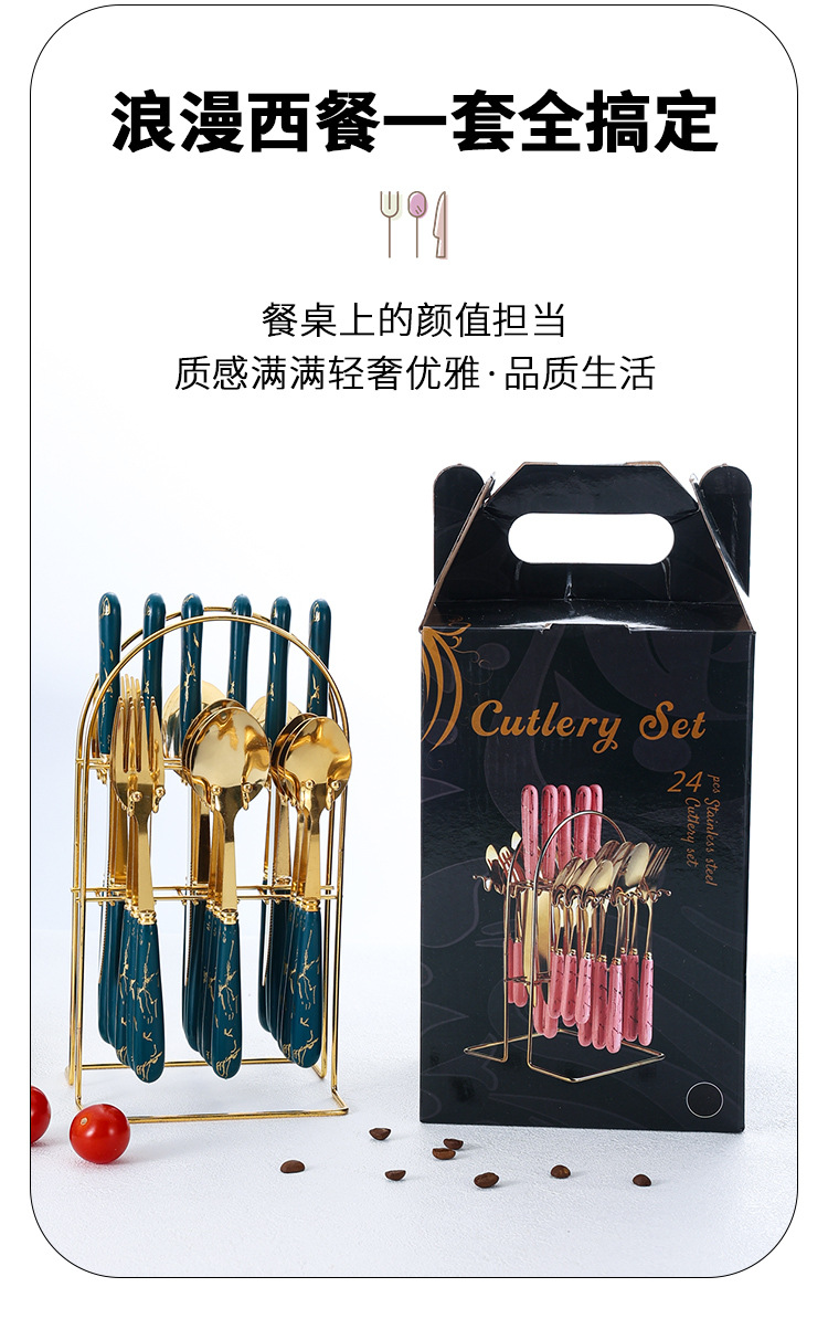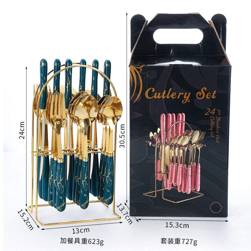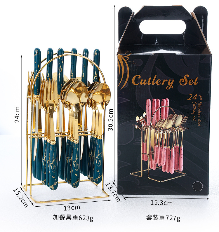 아마존 스테인레스 스틸 식기 24 피스 선물 상자 플라스틱 모조 세라믹 핸들 나이프와 포크 스푼 웨스턴 스테이크 나이프와 포크 스푼