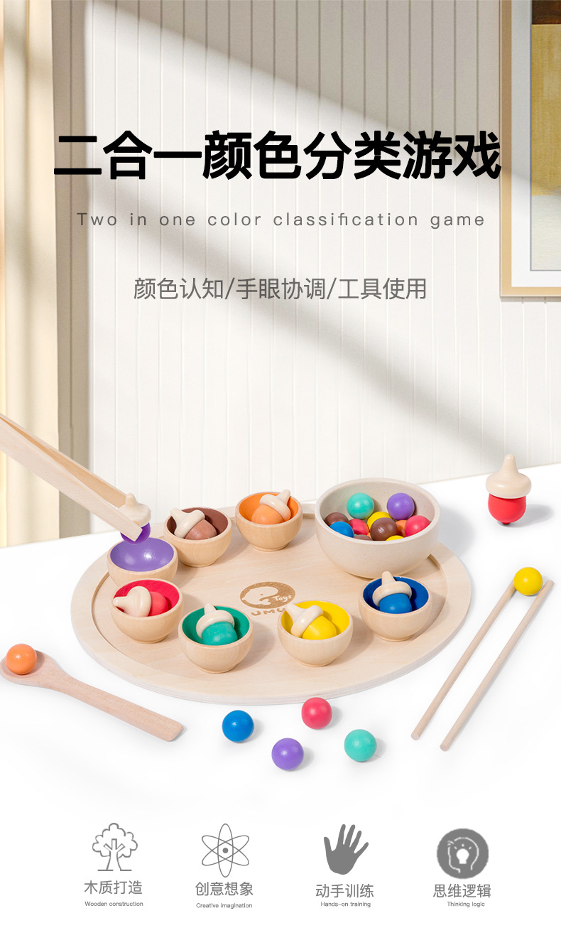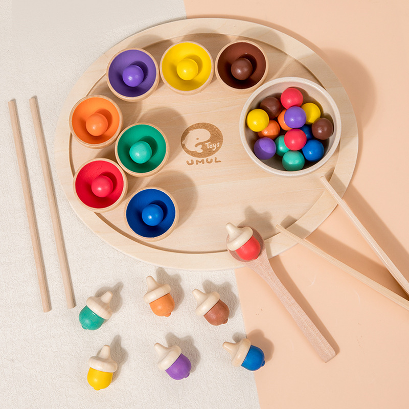 목제 아동 색 분류 컵 손 눈 협응 먹기 연습 클립 비즈 훈련 도콘 색 분류 장난감스토어 가기