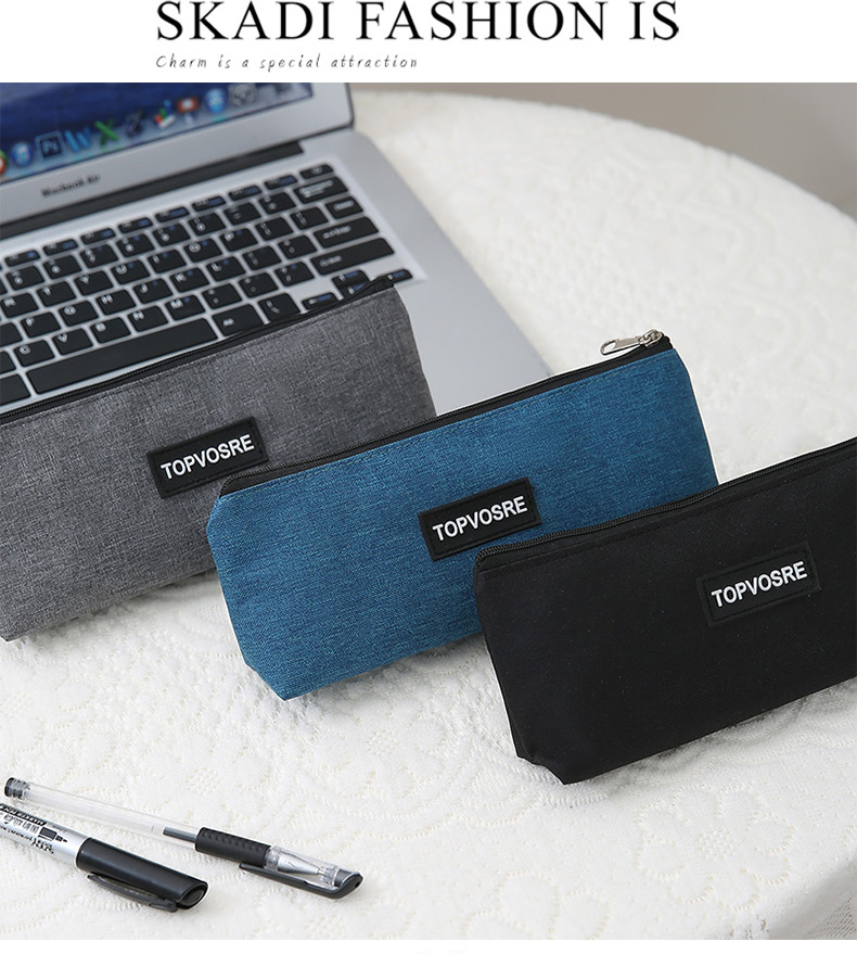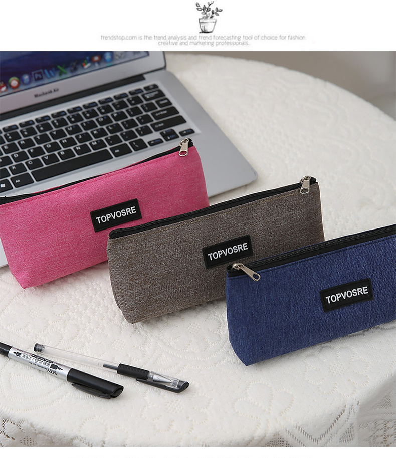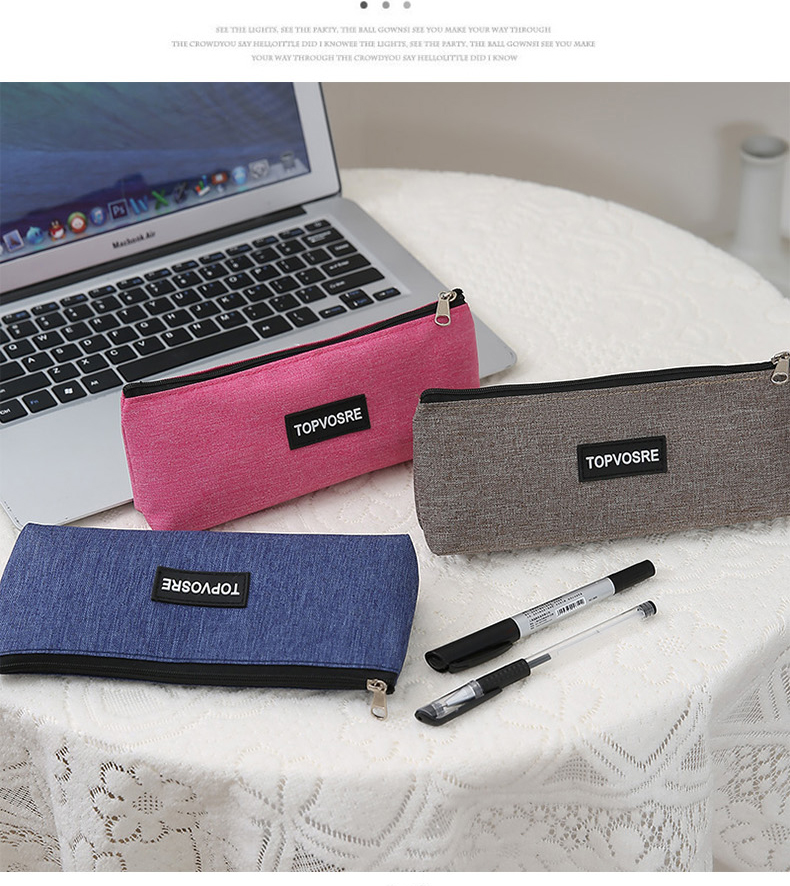 간단한 연필 케이스 간단한 인기있는 단색 중학교 소년 어린이 초등학생 연필 가방 나일론 천 문구 상자 연필 케이스