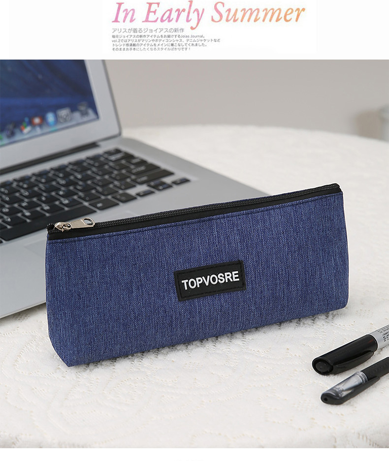간단한 연필 케이스 간단한 인기있는 단색 중학교 소년 어린이 초등학생 연필 가방 나일론 천 문구 상자 연필 케이스스토어 가기