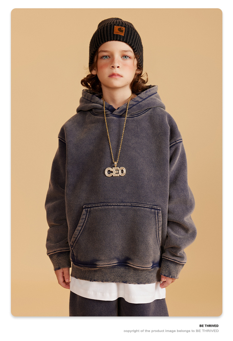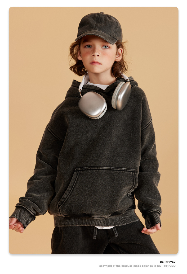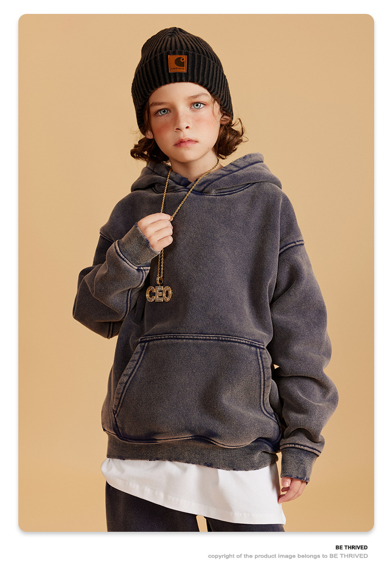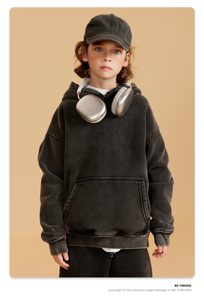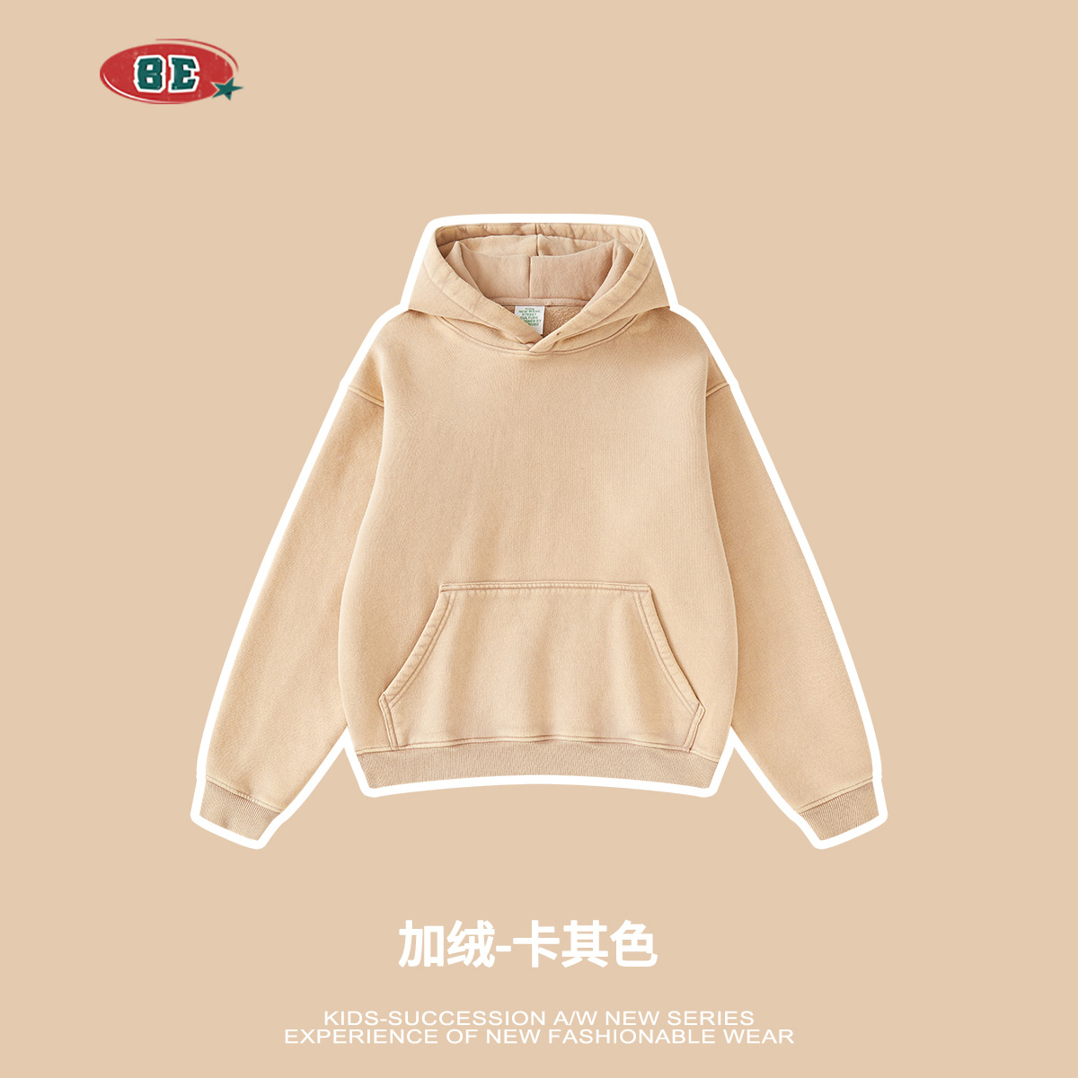 BE 아동복 2025 가을 겨울 유럽 및 미국 스타일의 플리스 안감 아동용 후드티 세탁 가능한 캐주얼 플리스 안감 중대형 아동용 후드티스토어 가기
