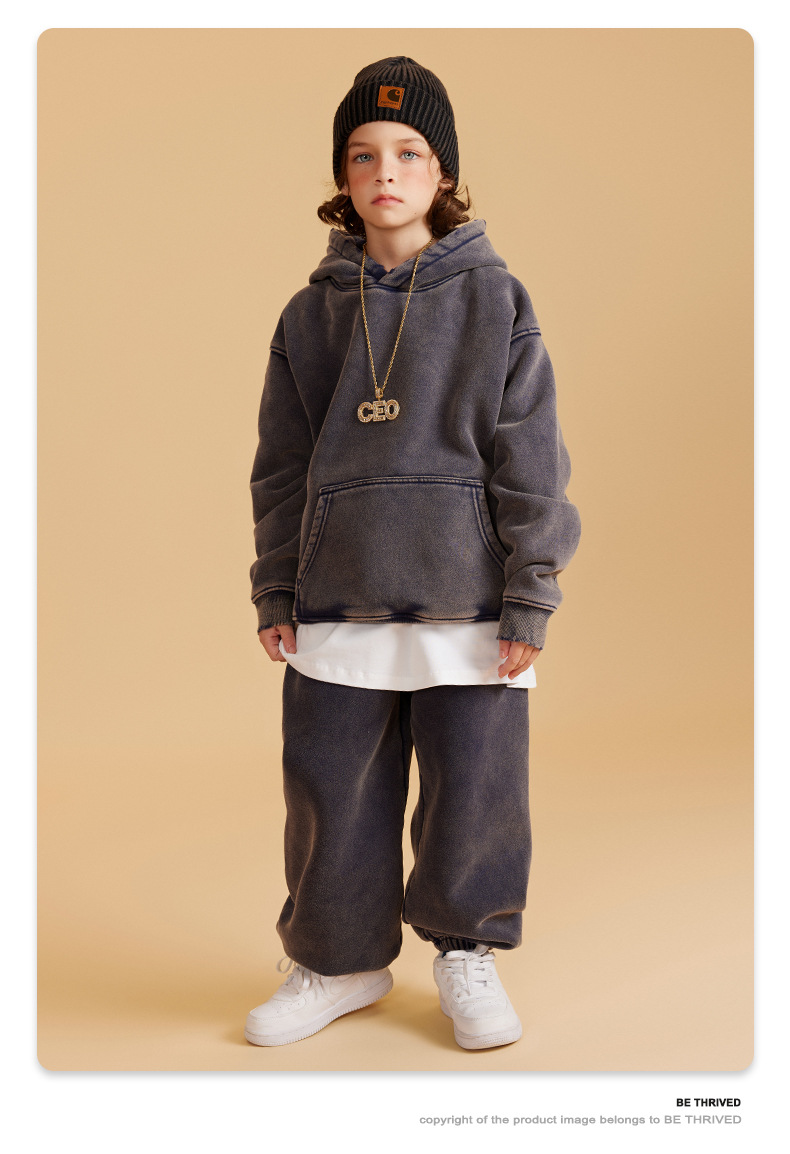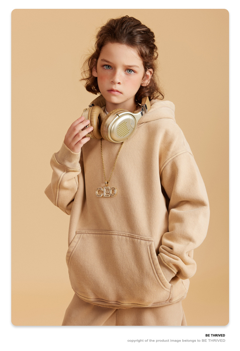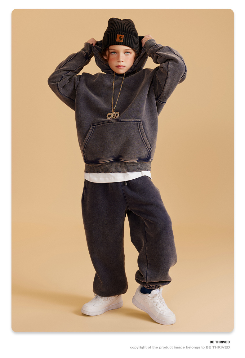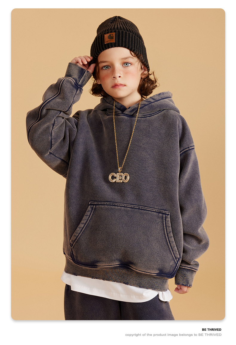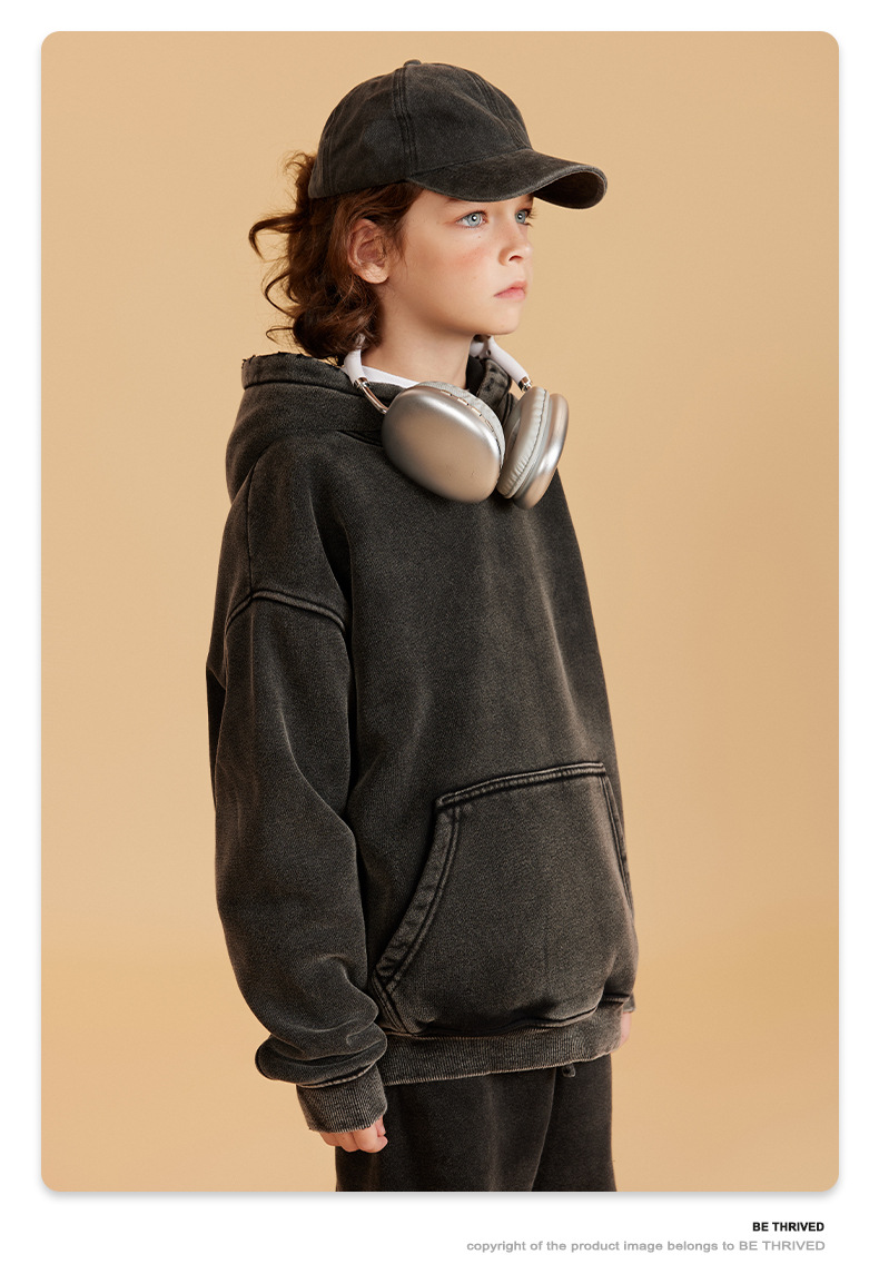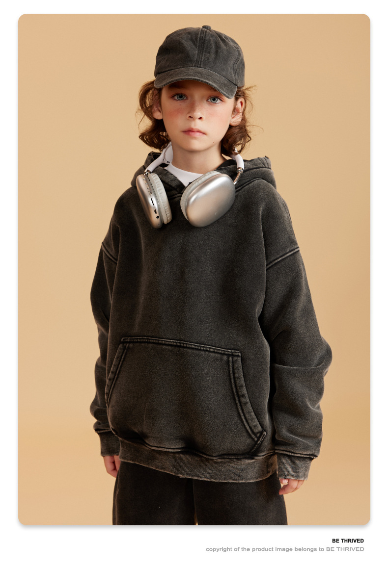 BE 아동복 2025 가을 겨울 유럽 및 미국 스타일의 플리스 안감 아동용 후드티 세탁 가능한 캐주얼 플리스 안감 중대형 아동용 후드티스토어 가기