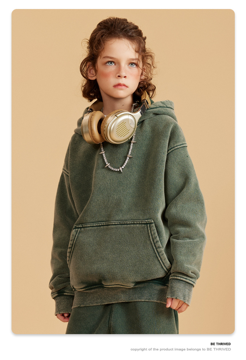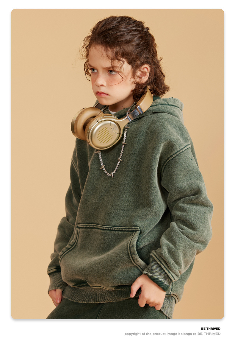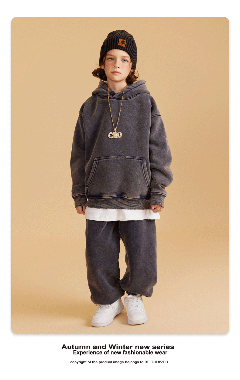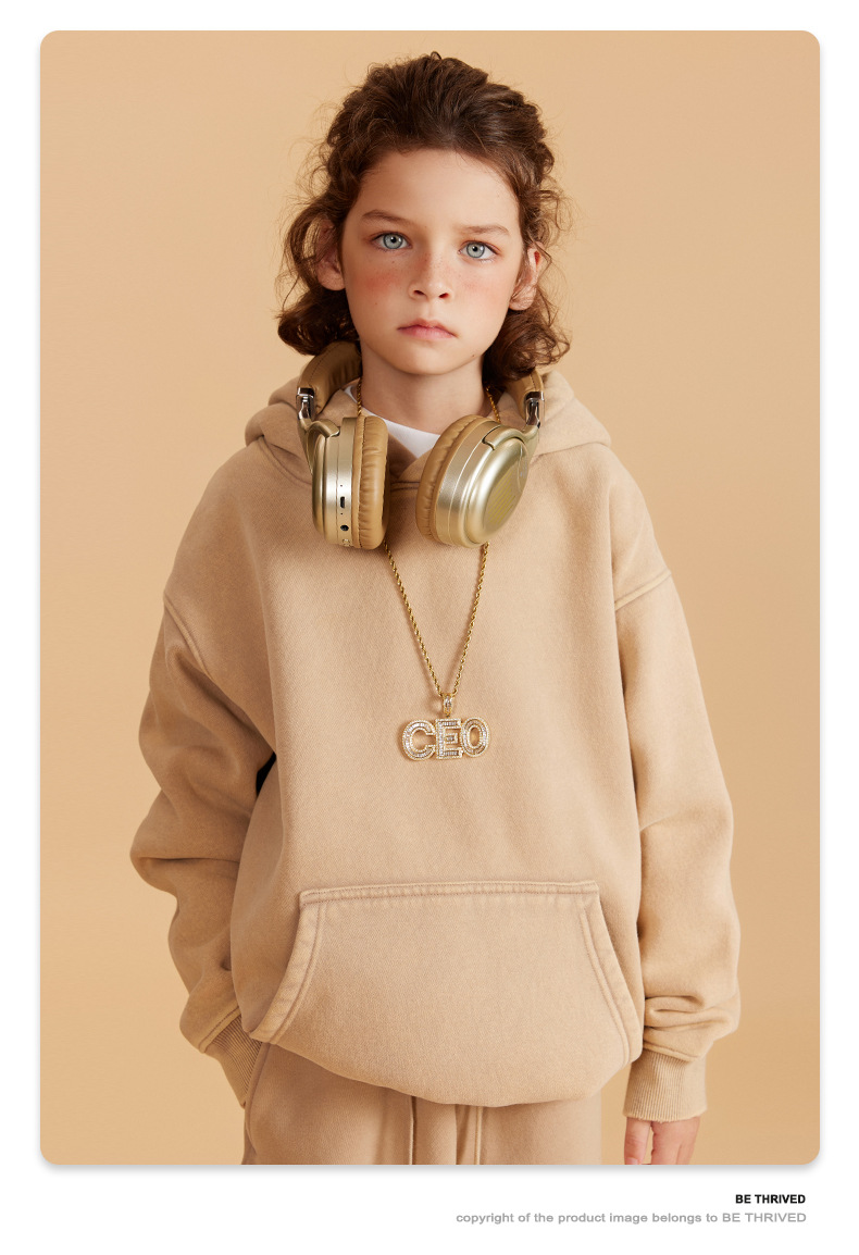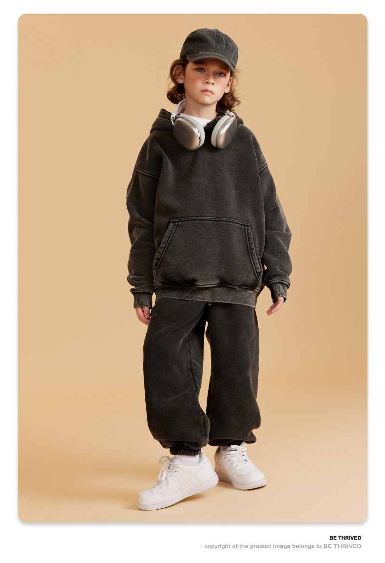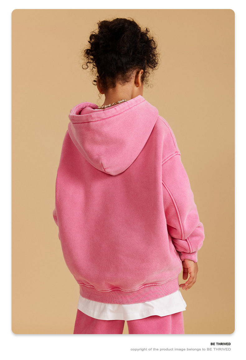 BE 아동복 2025 가을 겨울 유럽 및 미국 스타일의 플리스 안감 아동용 후드티 세탁 가능한 캐주얼 플리스 안감 중대형 아동용 후드티스토어 가기