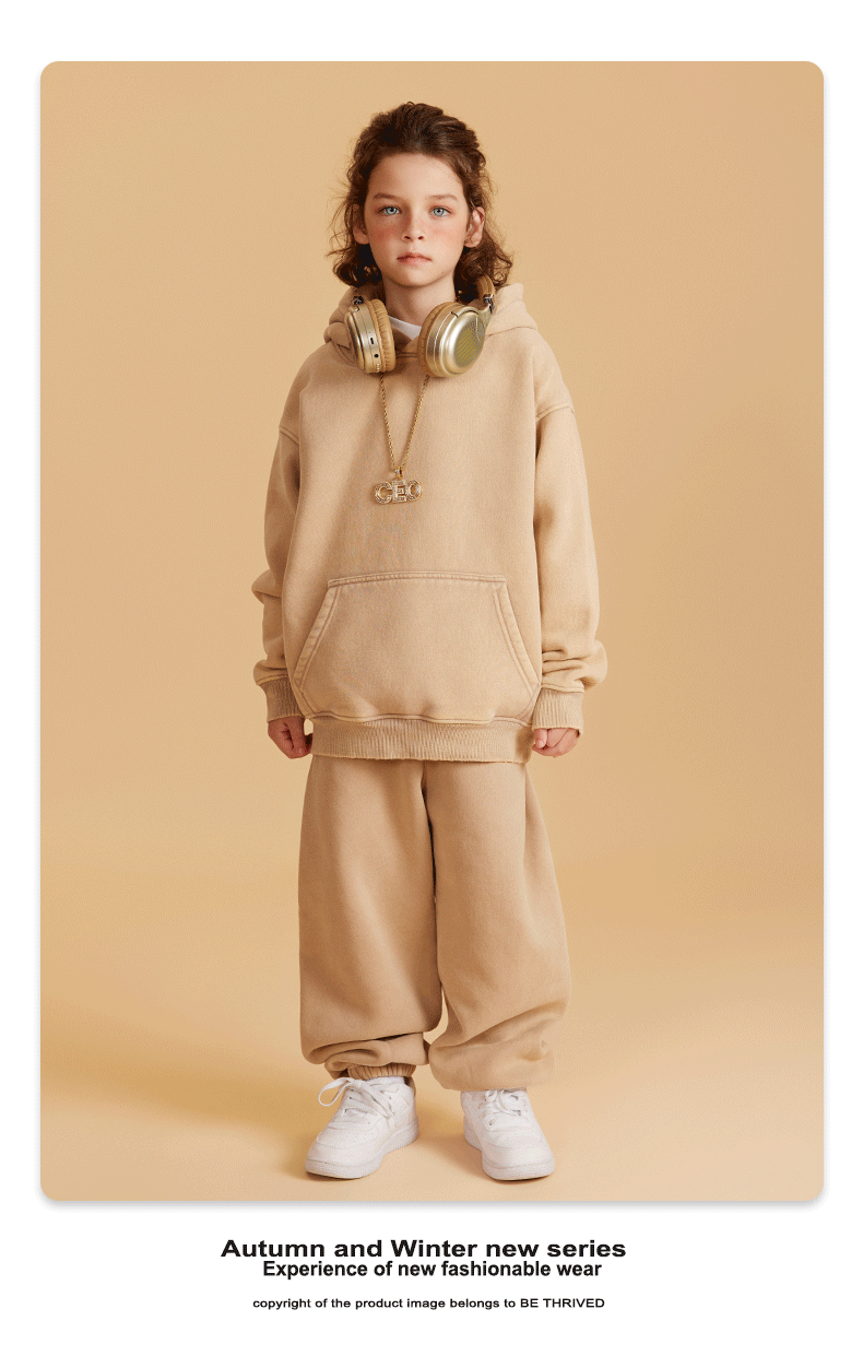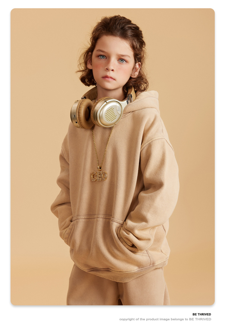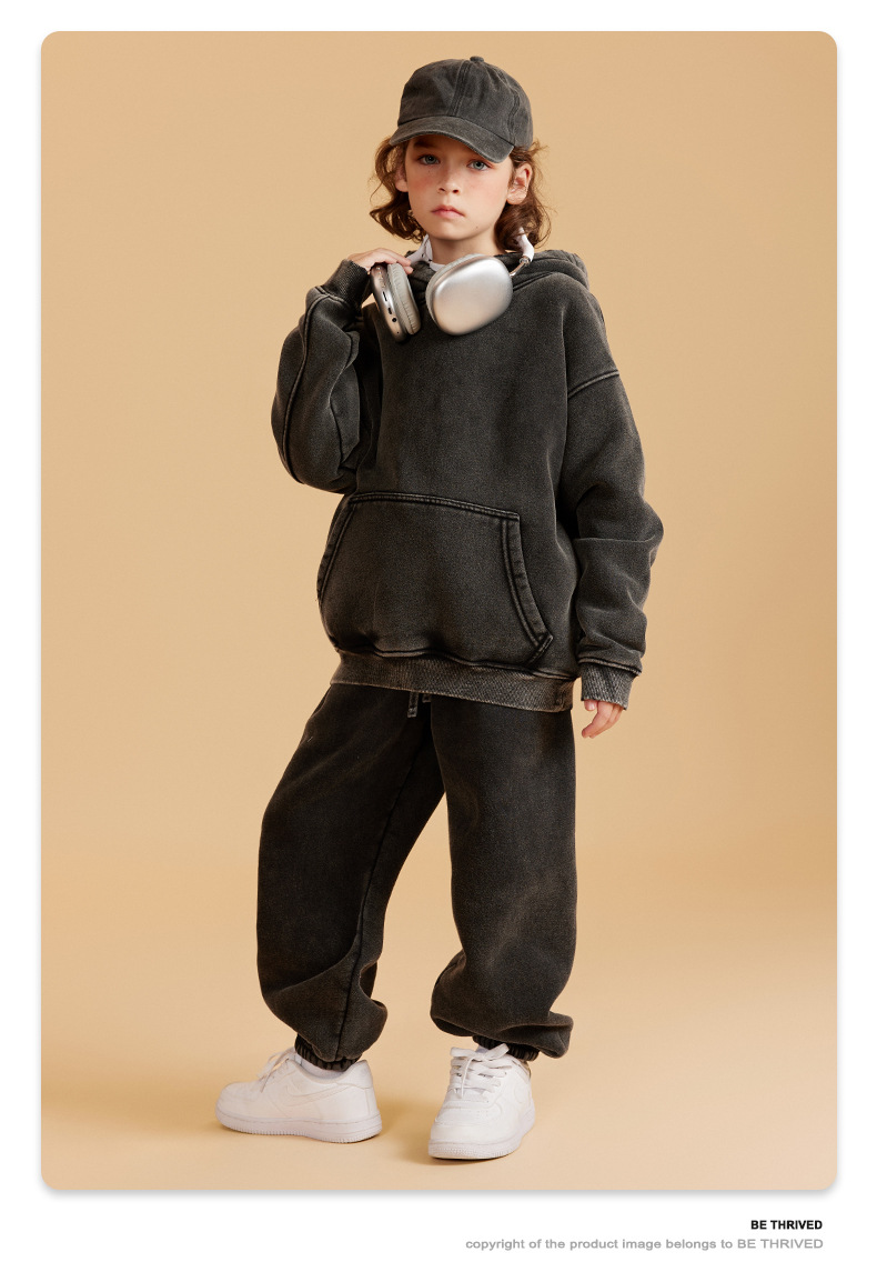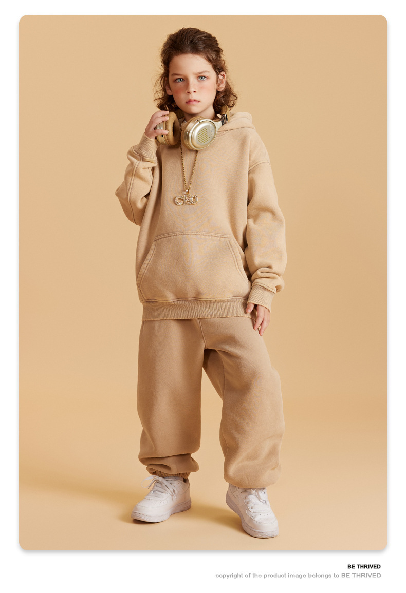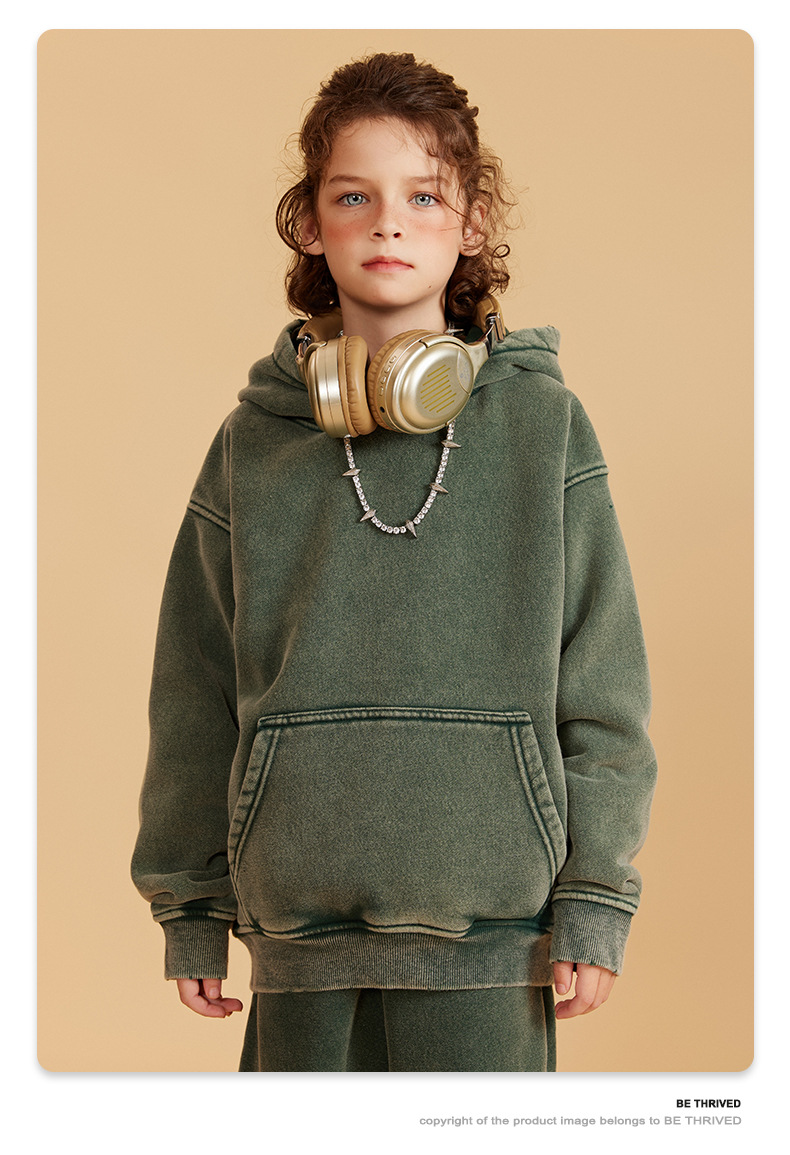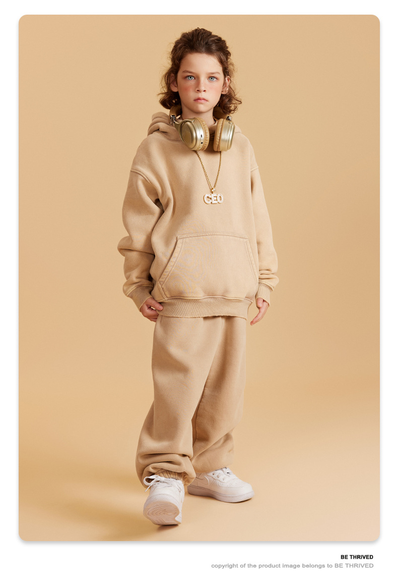 BE 아동복 2025 가을 겨울 유럽 및 미국 스타일의 플리스 안감 아동용 후드티 세탁 가능한 캐주얼 플리스 안감 중대형 아동용 후드티스토어 가기