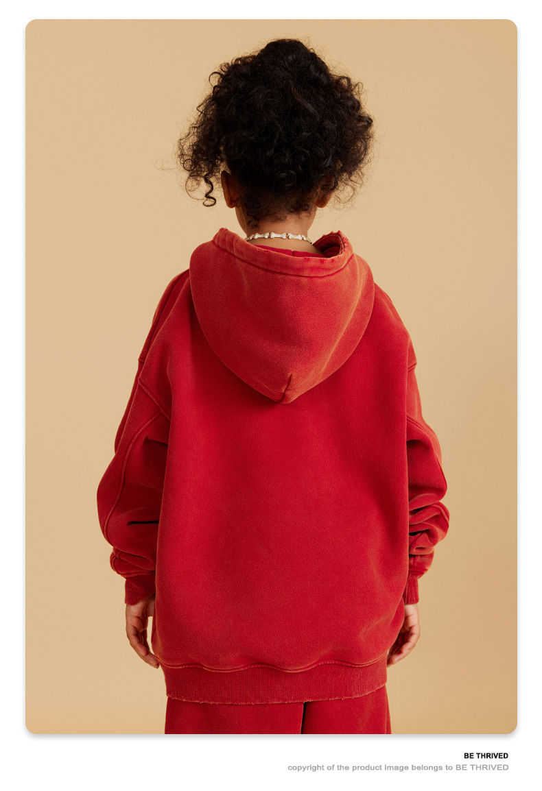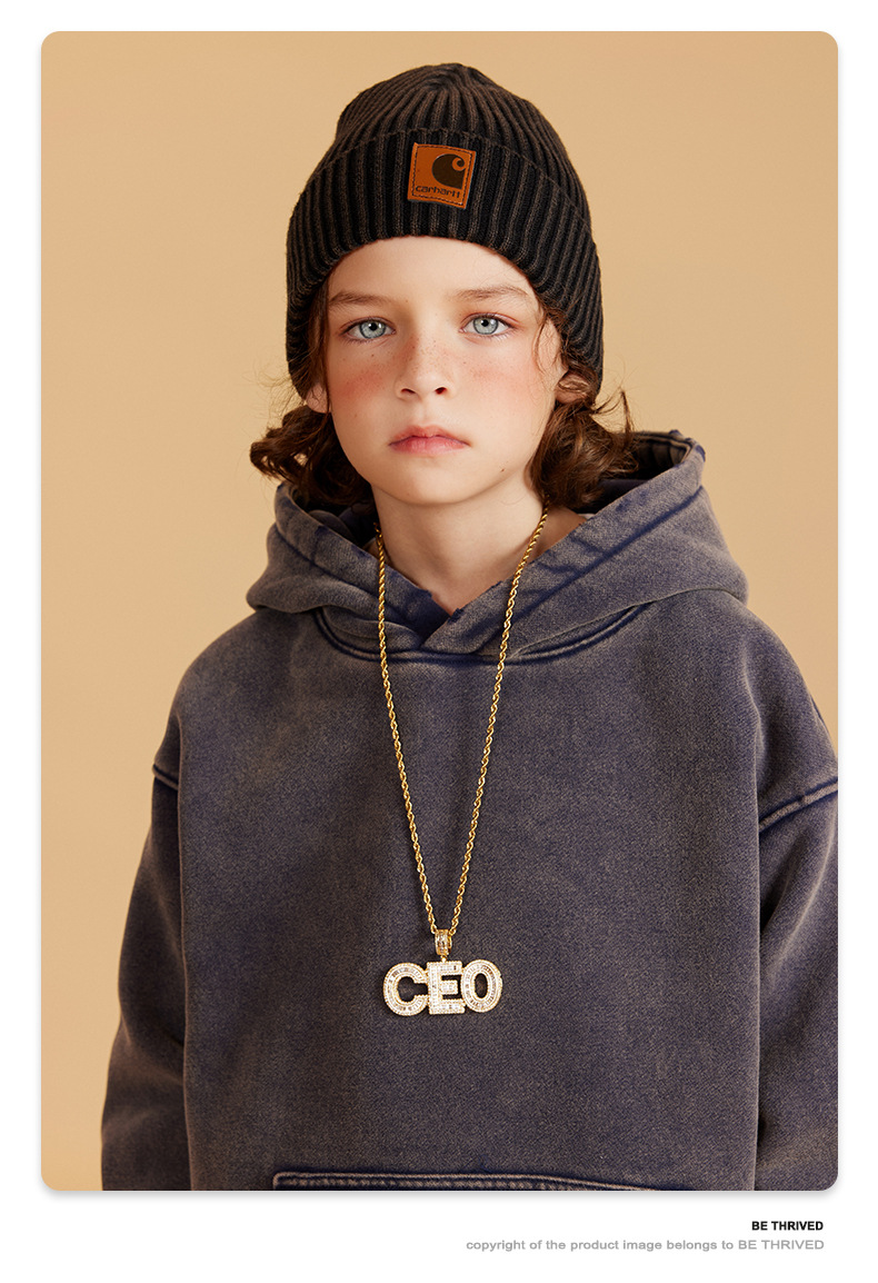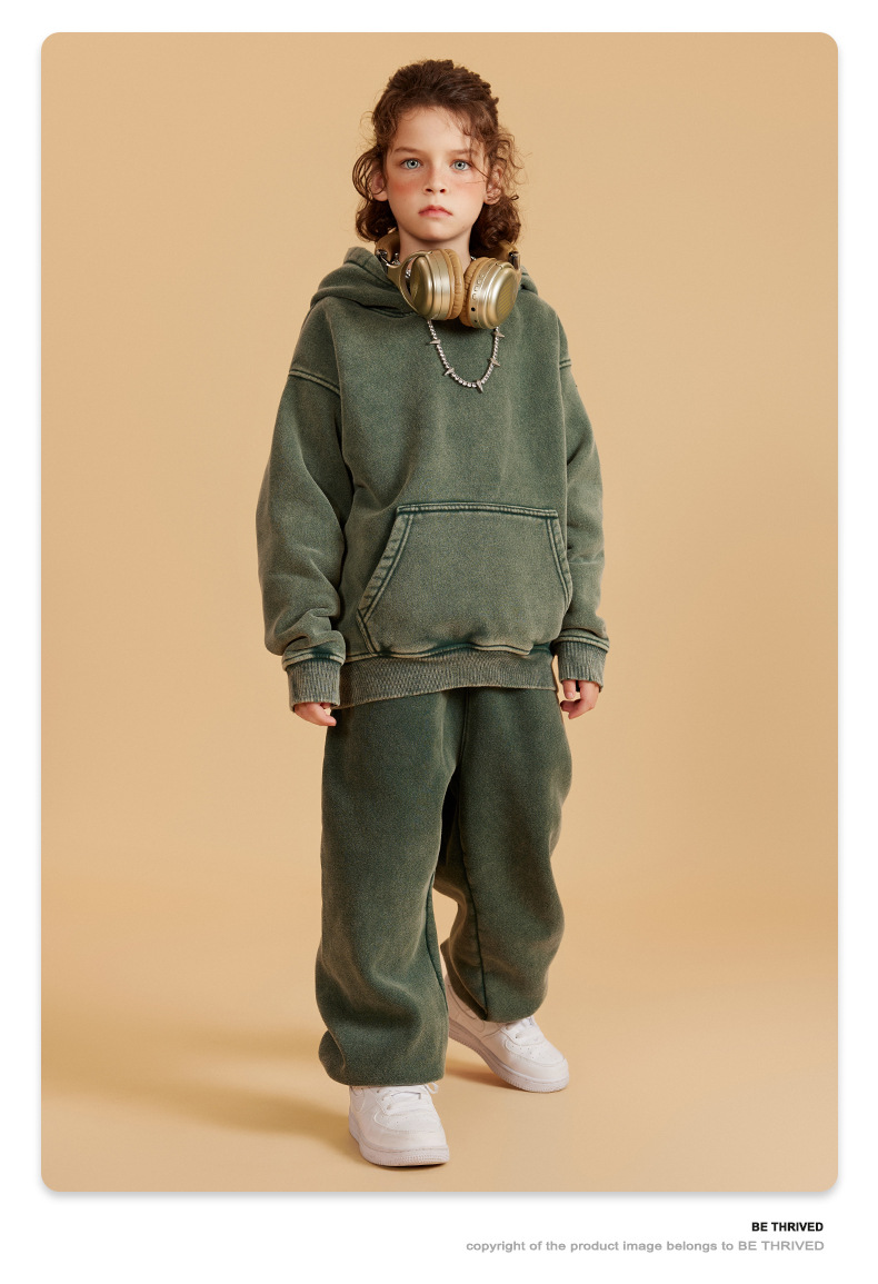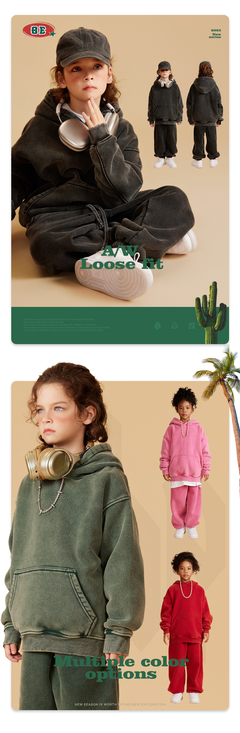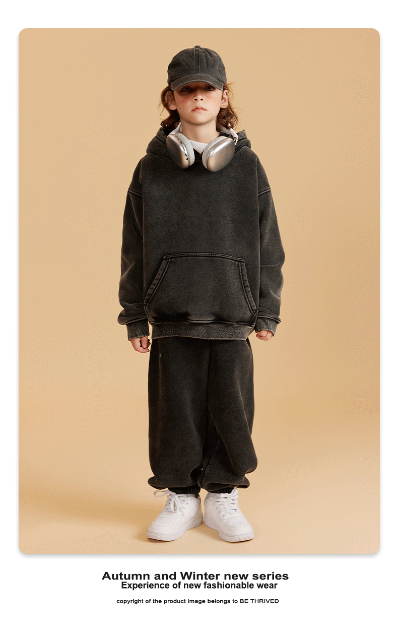 BE 아동복 2025 가을 겨울 유럽 및 미국 스타일의 플리스 안감 아동용 후드티 세탁 가능한 캐주얼 플리스 안감 중대형 아동용 후드티스토어 가기