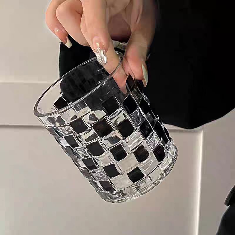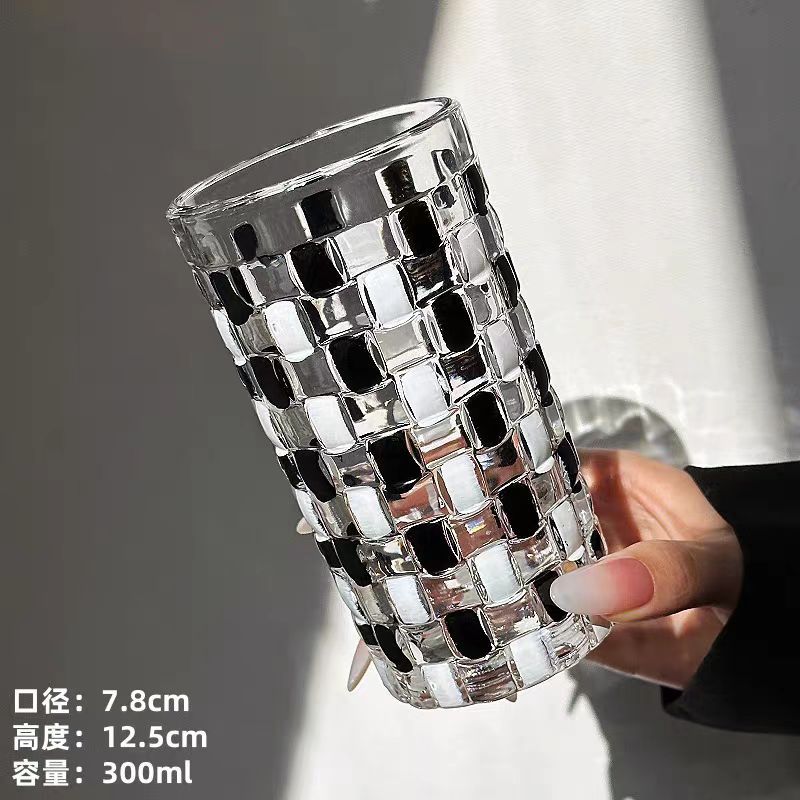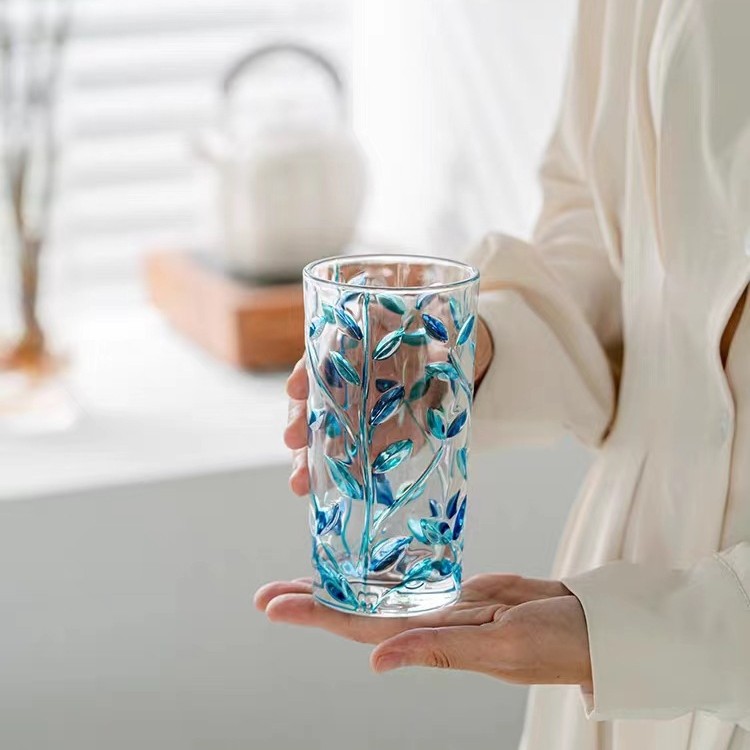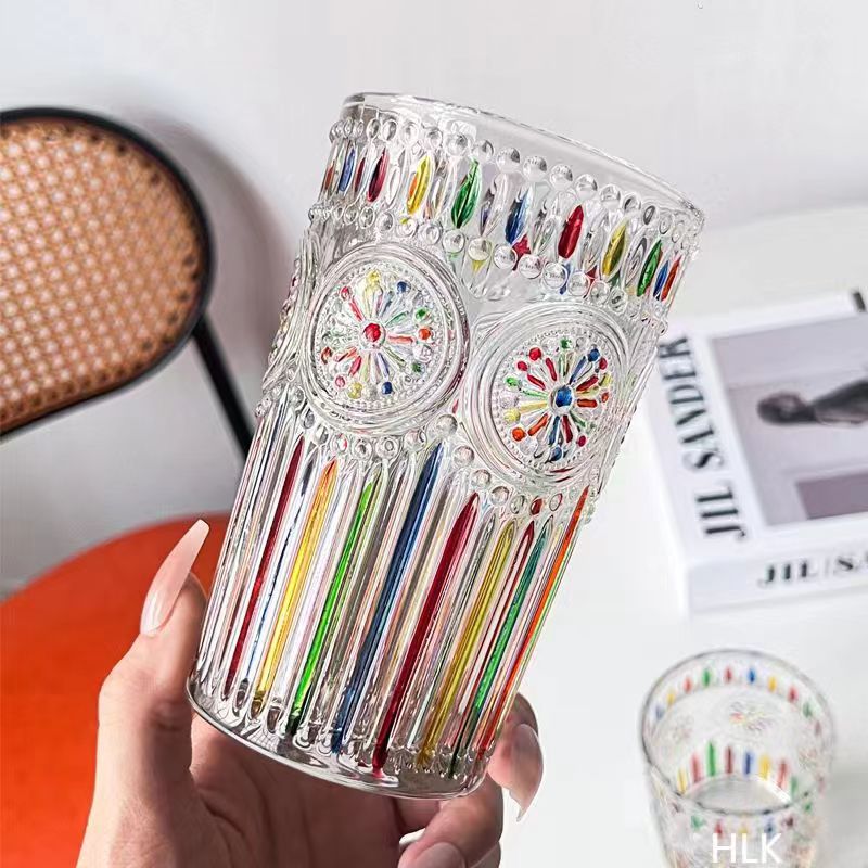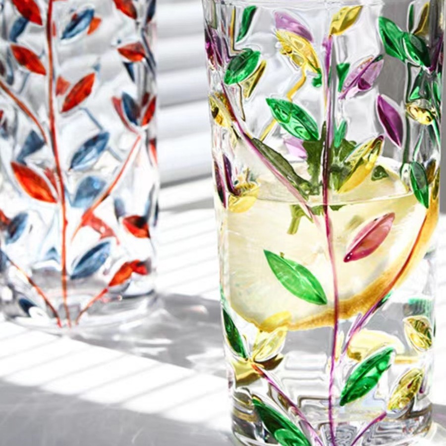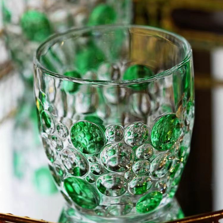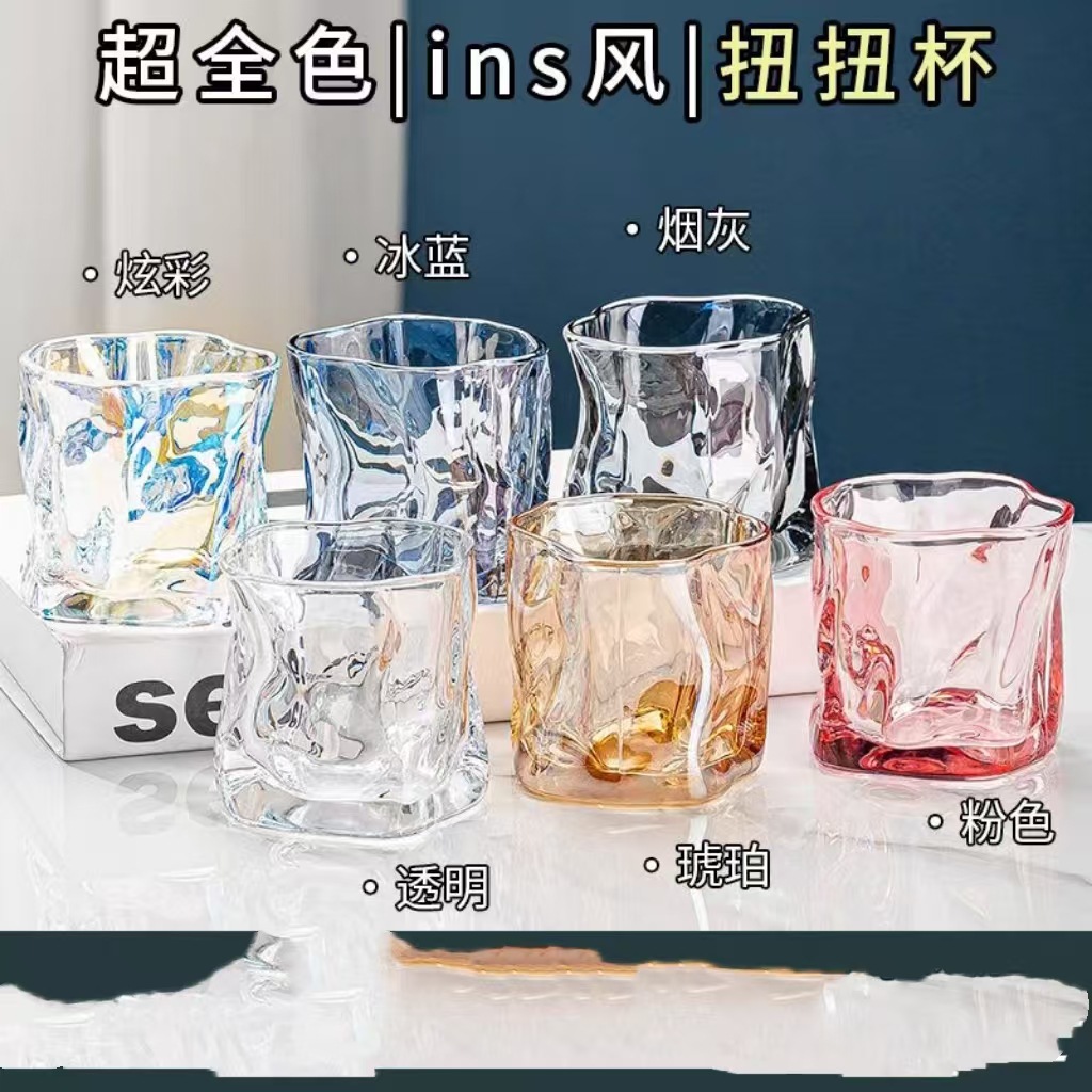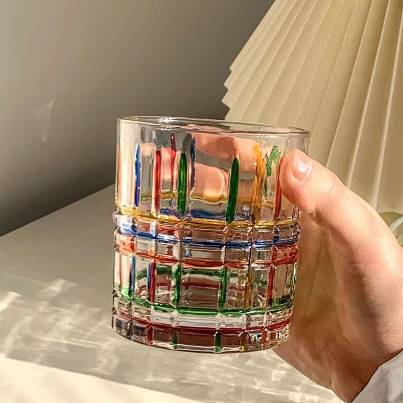 그린 유리 컵 컬러 블록 불규칙한 물 컵 차가운 음료 주스 컵 여름 가정용 무지개 마시는 컵스토어 가기