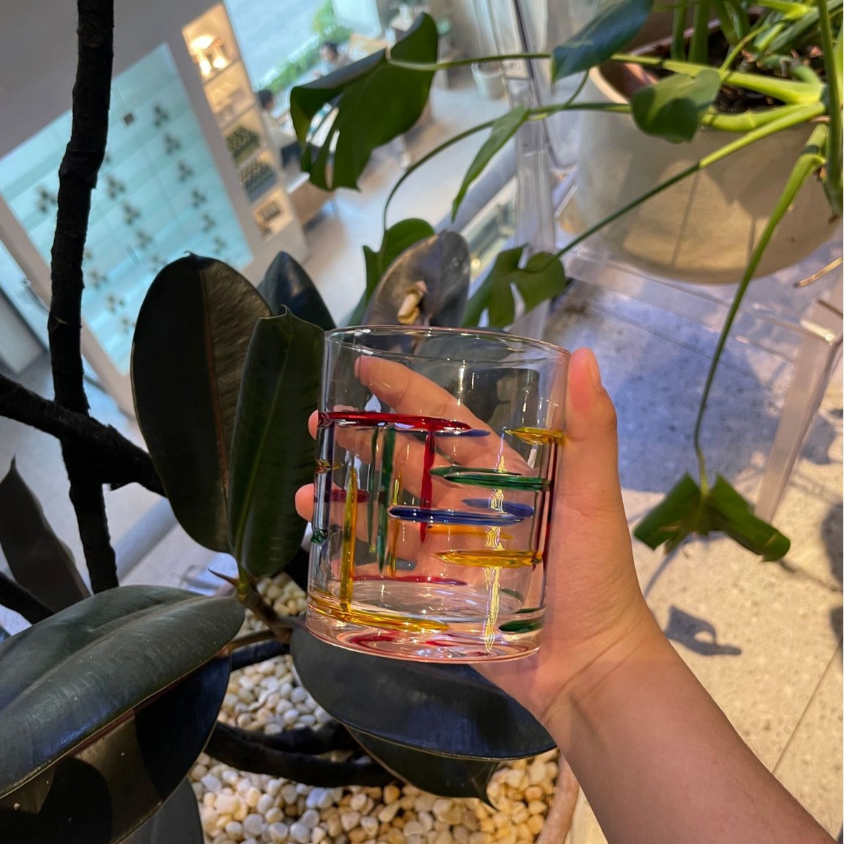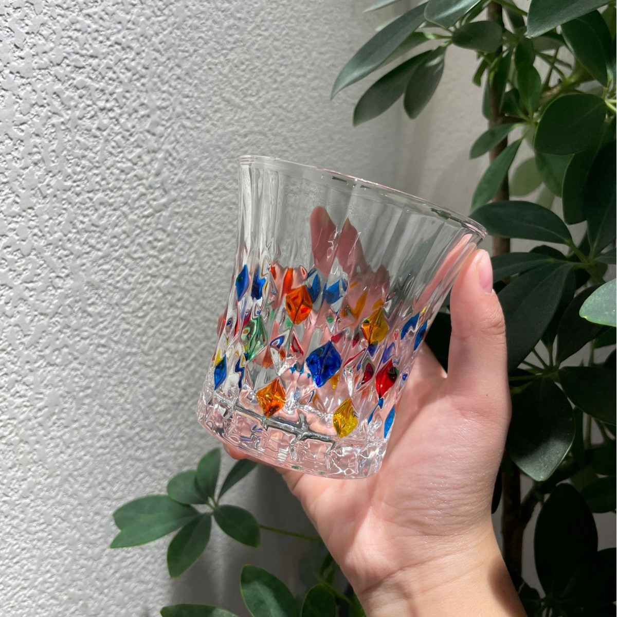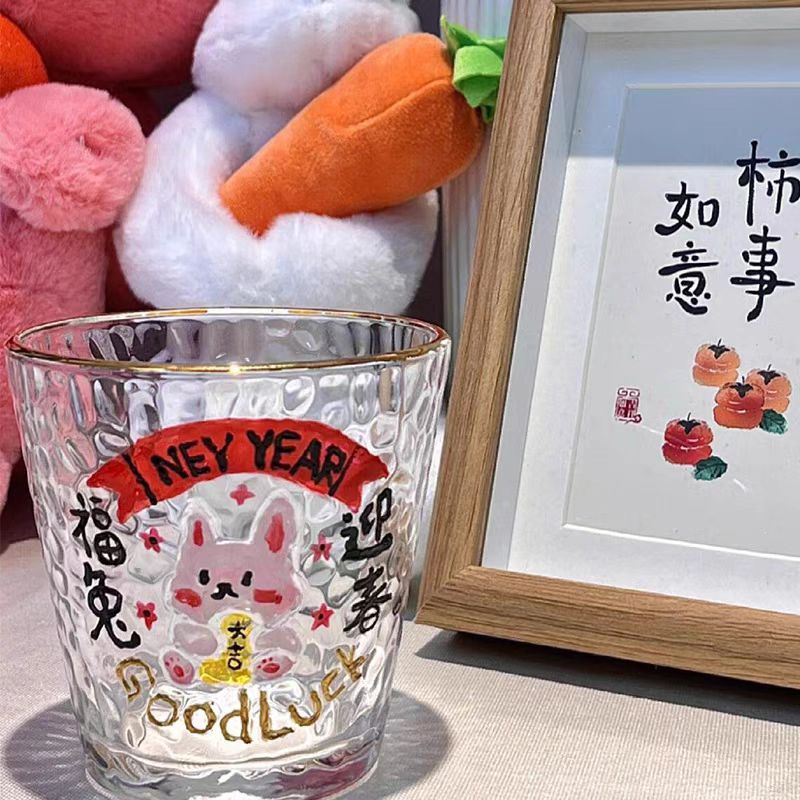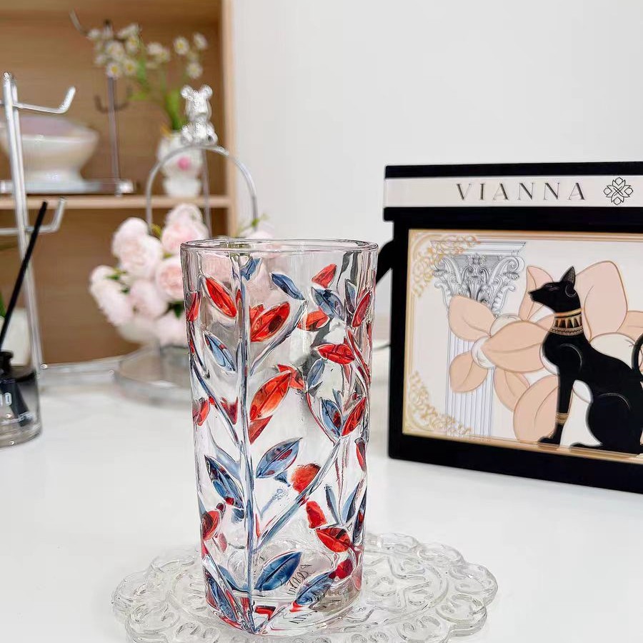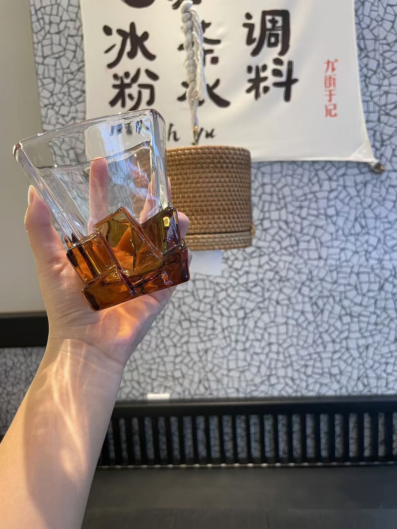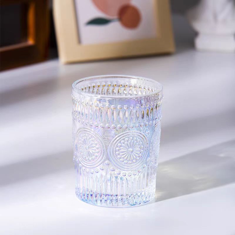 그린 유리 컵 컬러 블록 불규칙한 물 컵 차가운 음료 주스 컵 여름 가정용 무지개 마시는 컵스토어 가기