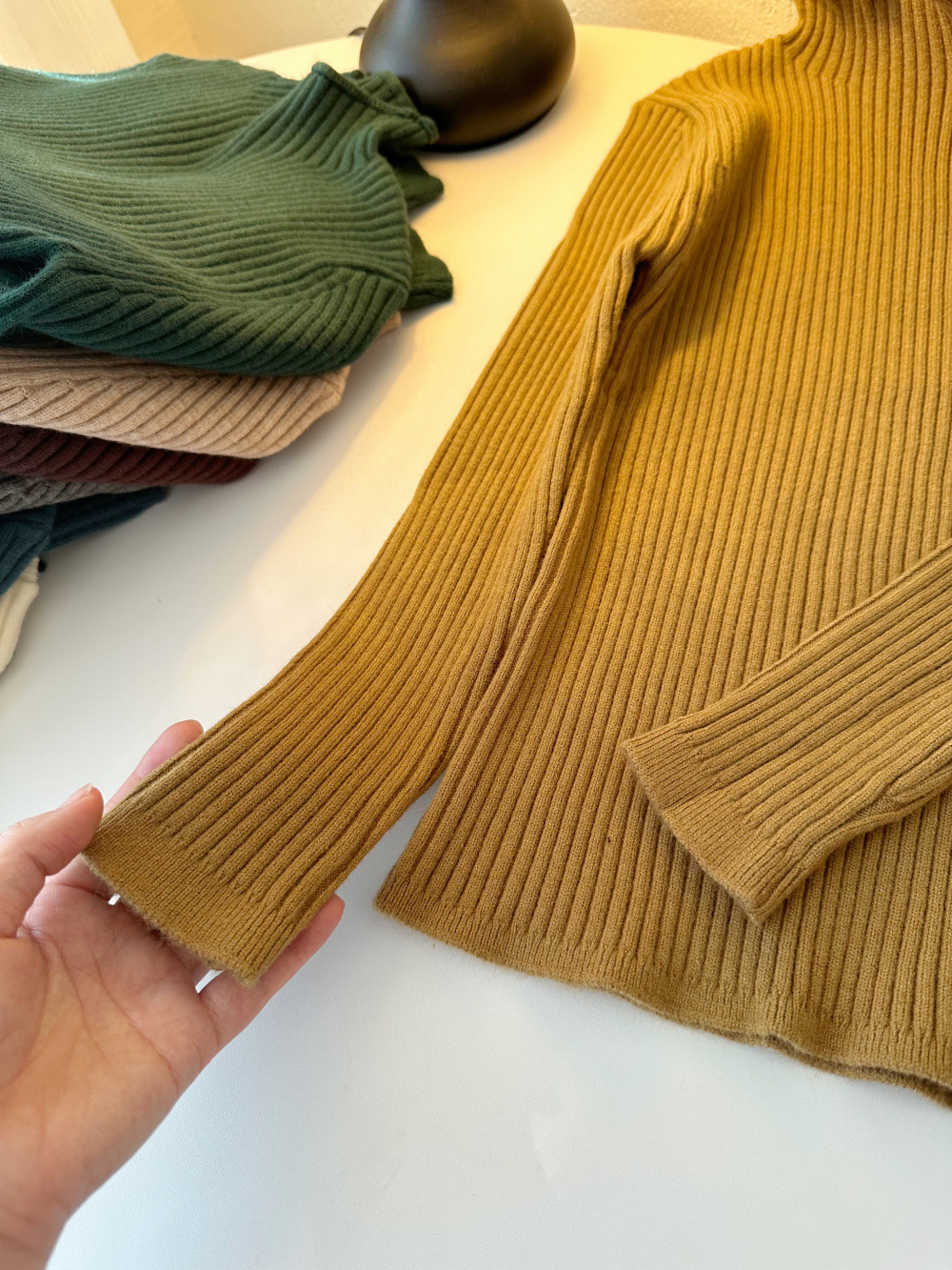 • 터틀넥 베이스 스웨터 머스타드 옐로우(목이 타이트하지 않음)