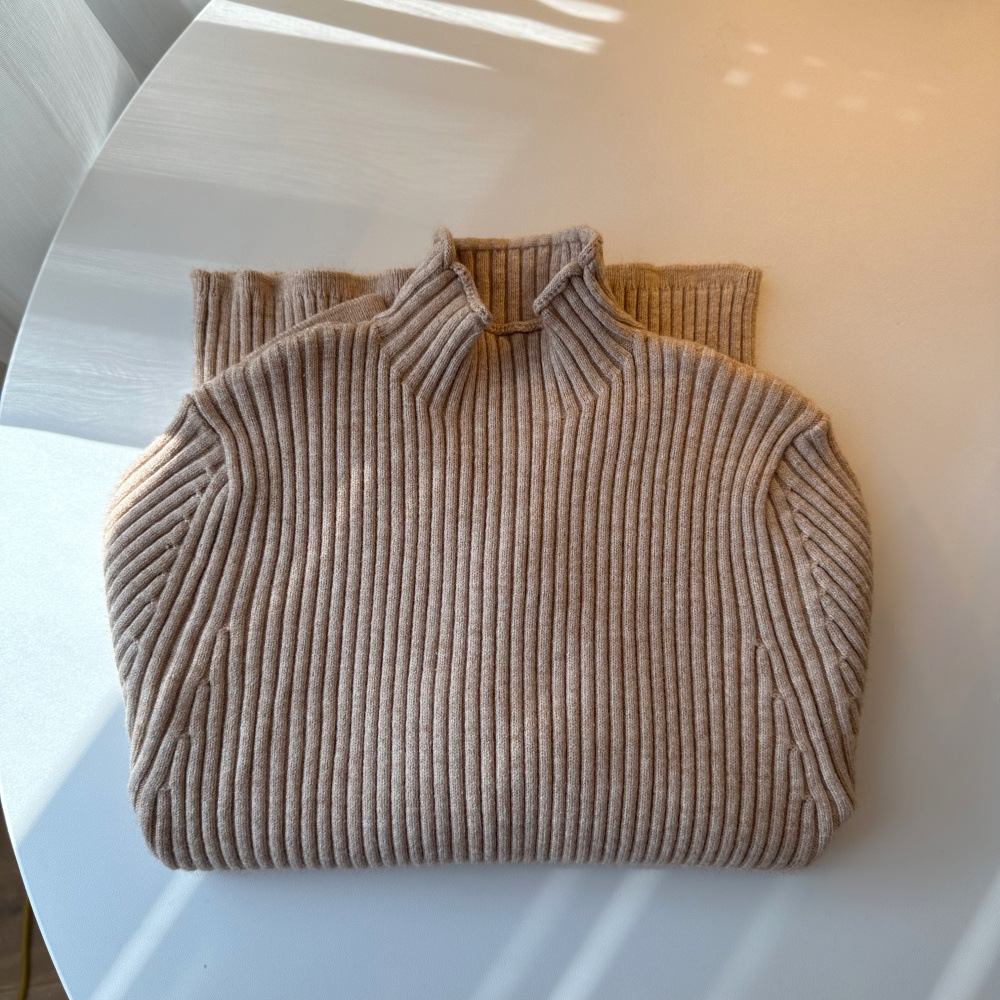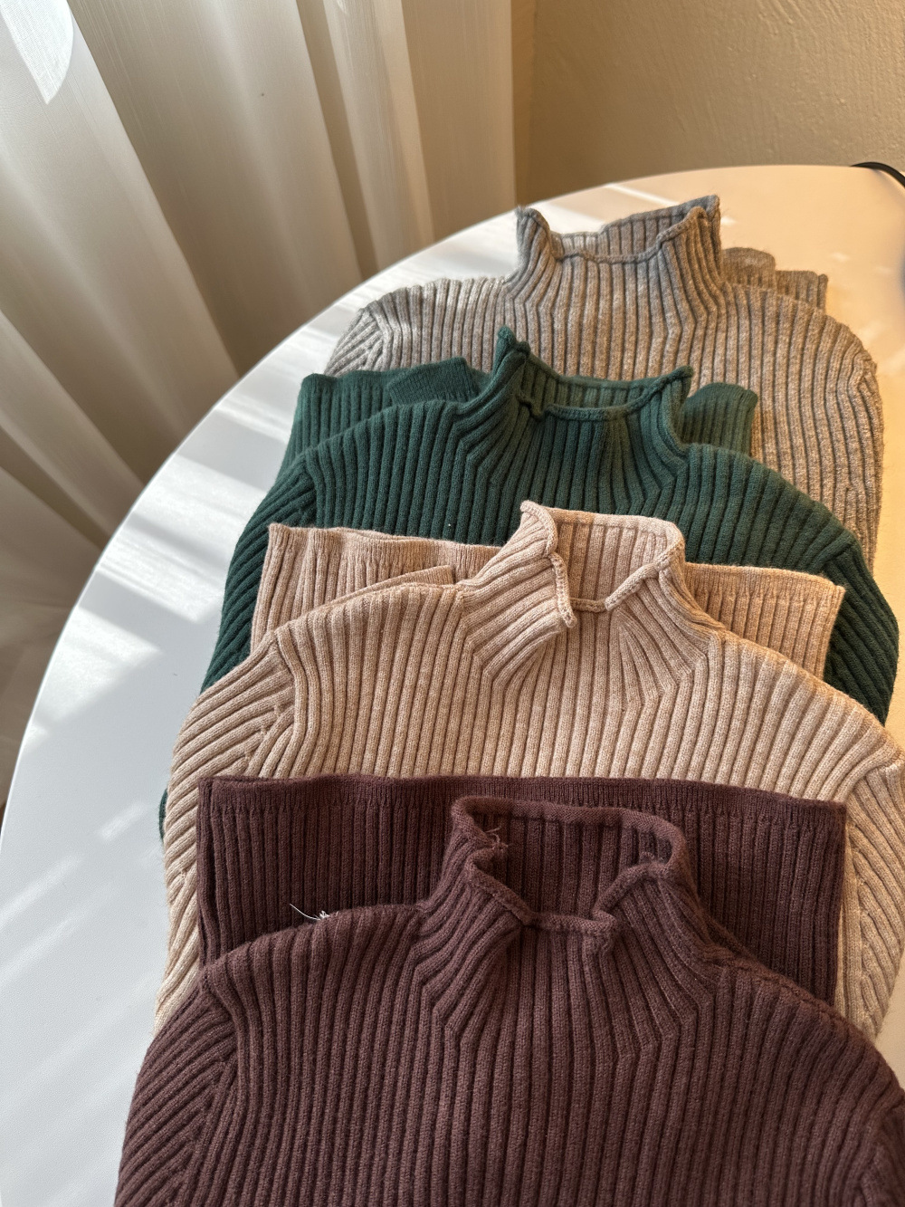 • 목이 높은 베이직 스웨터 브라운 (목이 타이트하지 않음)