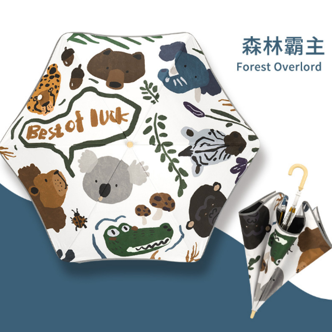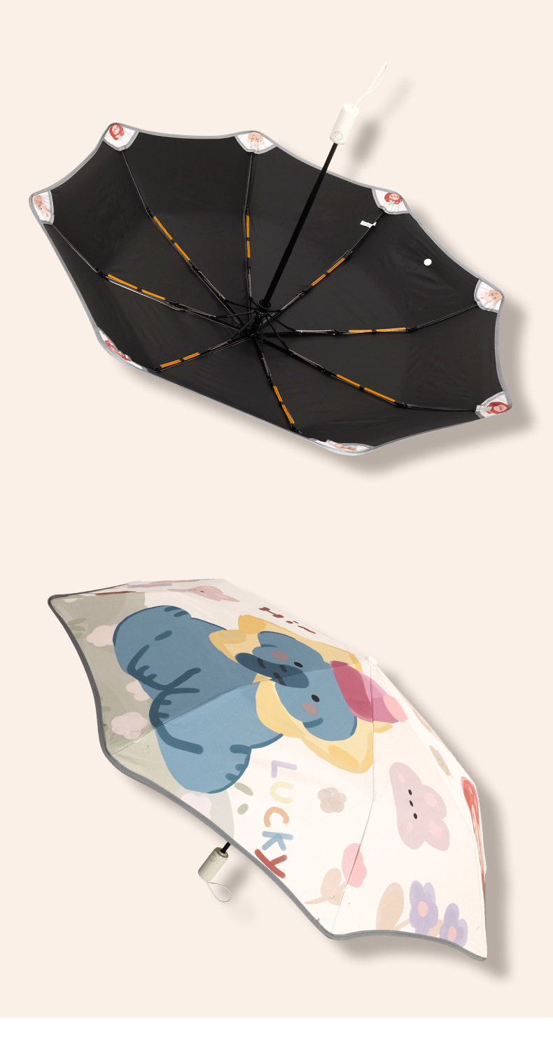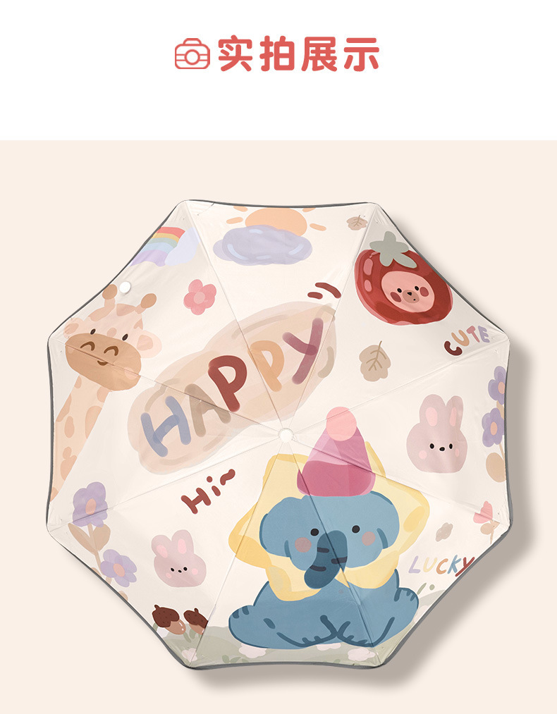 • 귀여운 짐승이 흰색 우산 손잡이를 휩쓸고 있습니다. 둥근 모서리가 자동으로 8k로 접힙니다. [안전 반사 스트립 포함]