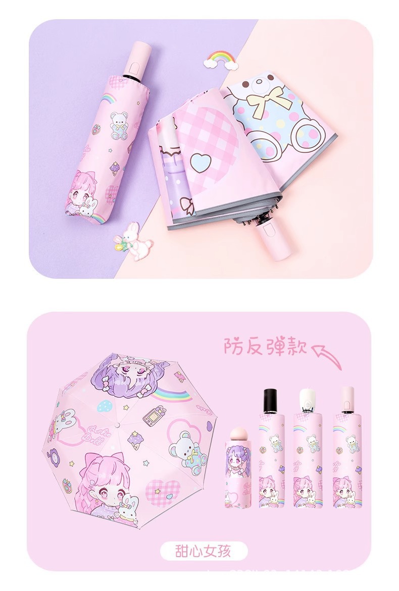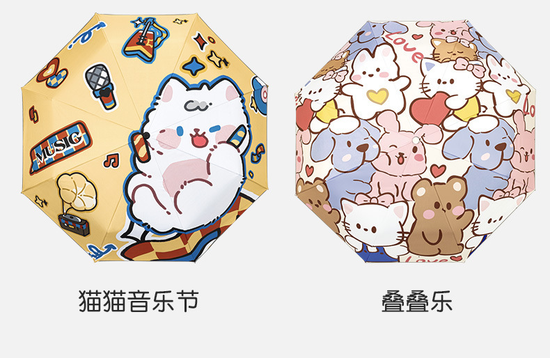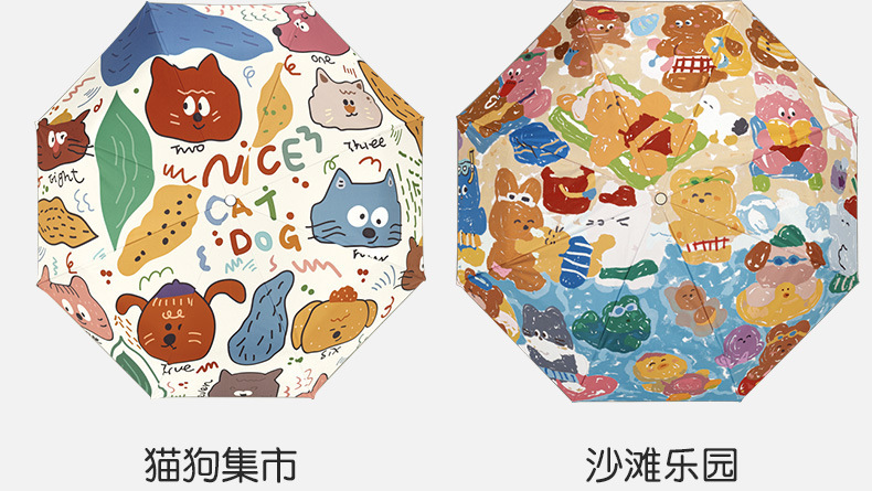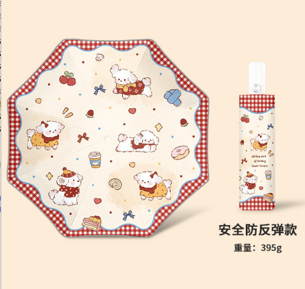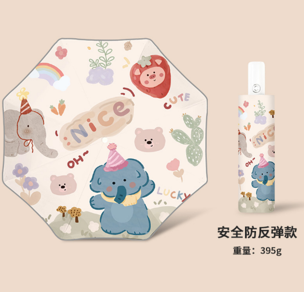 • 귀여운 짐승이 흰색 우산 손잡이를 휩쓸고 있습니다. 둥근 모서리가 자동으로 8k로 접힙니다. [안전 반사 스트립 포함]