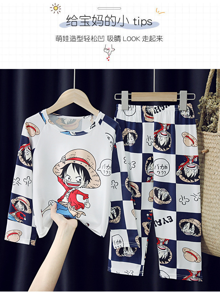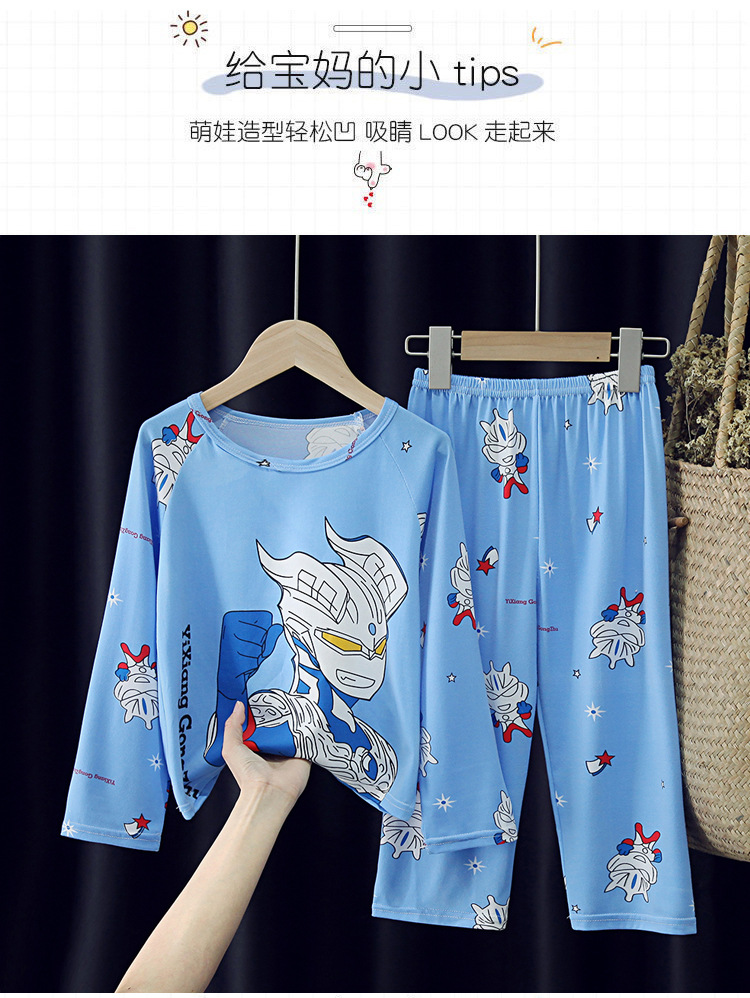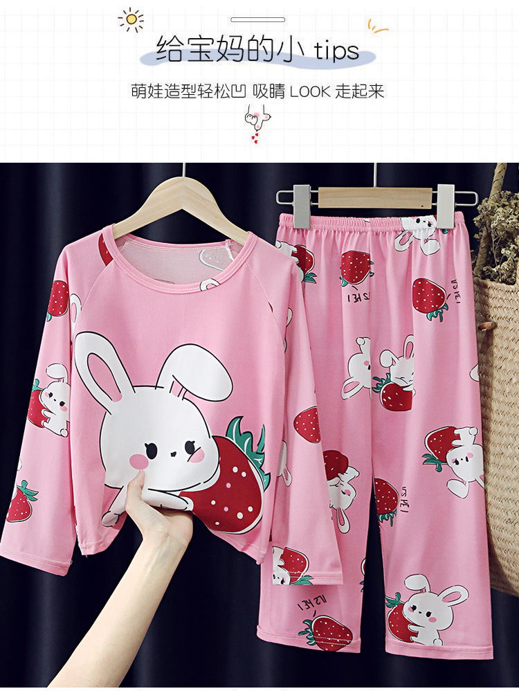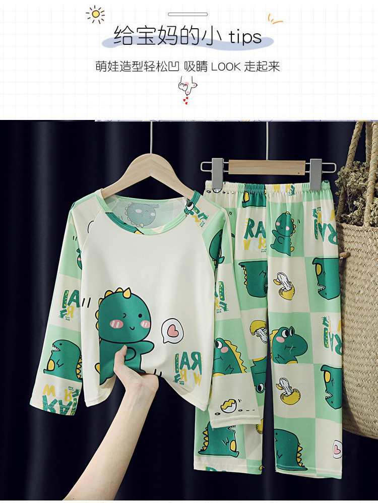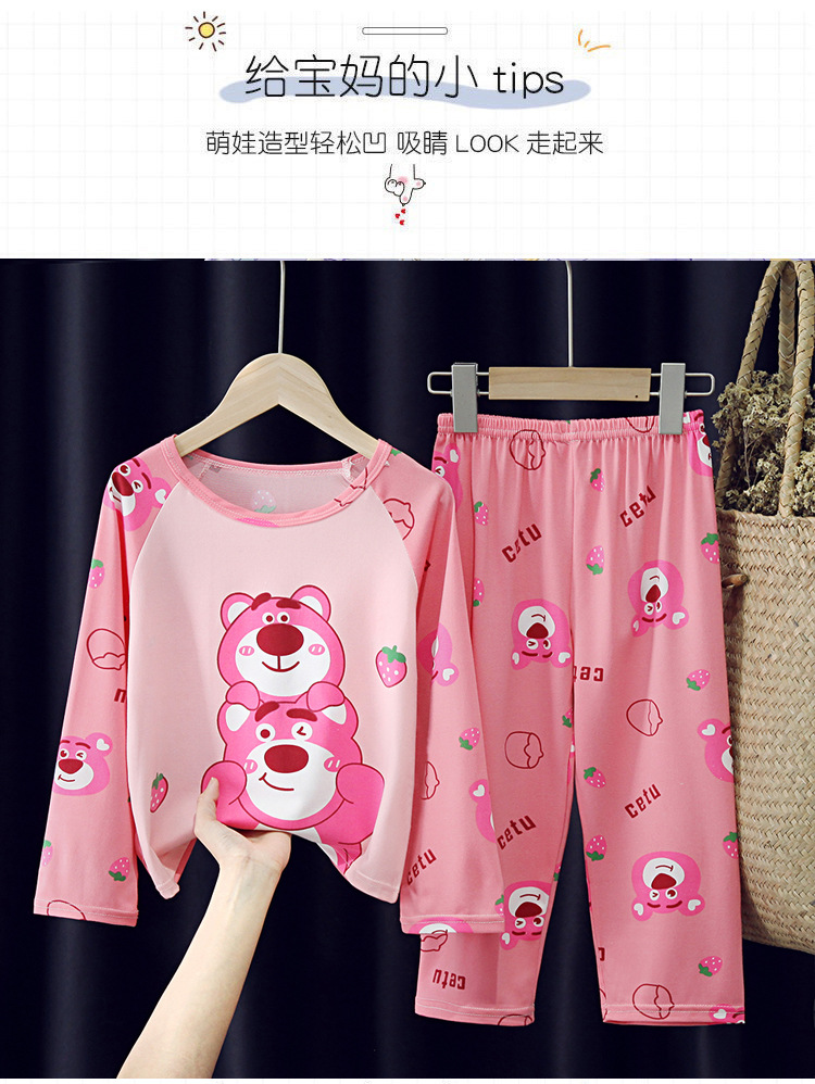 동남아시아 새로운 어린이 잠옷 소년과 소녀 긴팔 가정 옷 세트 어린 소녀 아기 만화 에어컨 옷