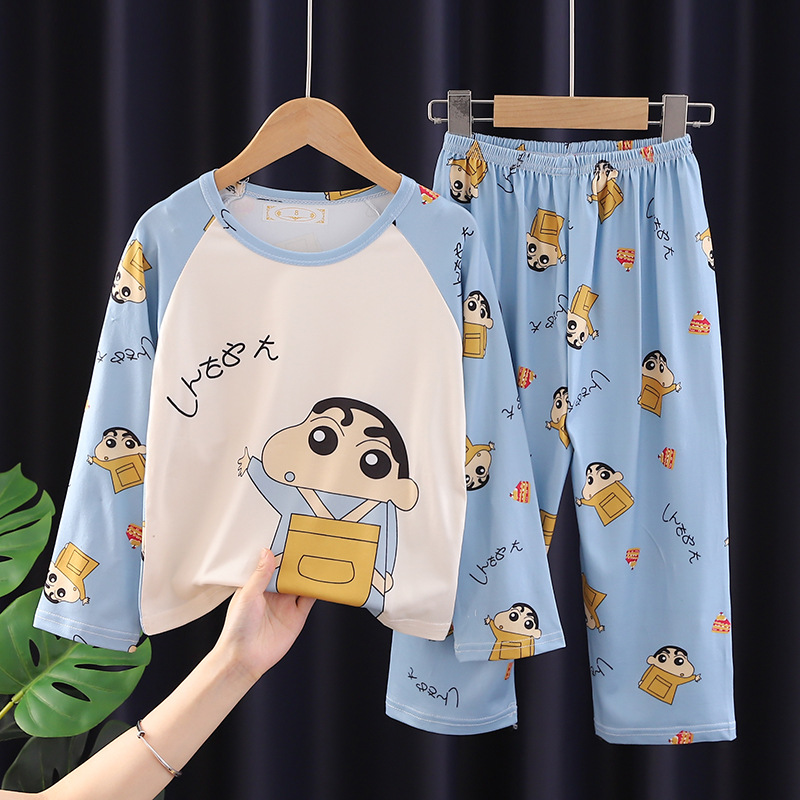 동남아시아 새로운 어린이 잠옷 소년과 소녀 긴팔 가정 옷 세트 어린 소녀 아기 만화 에어컨 옷스토어 가기
